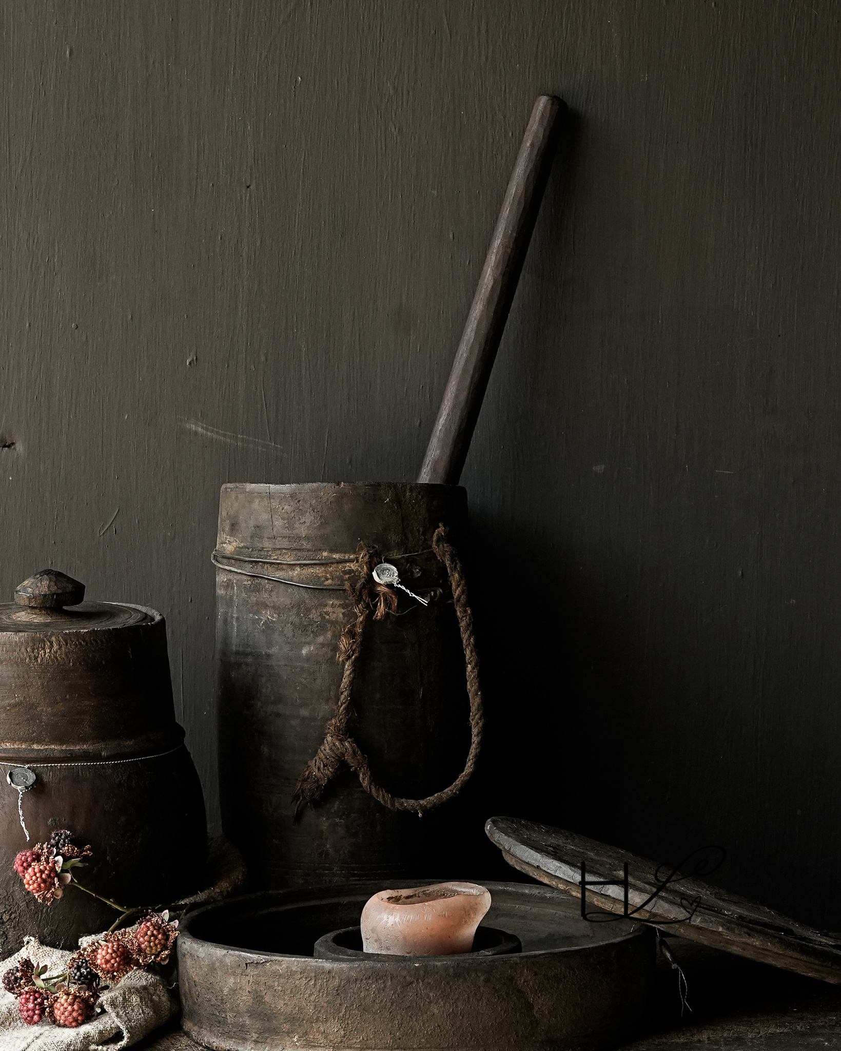 Unique Authentic Nepalese Old Wooden Hoffz Pot