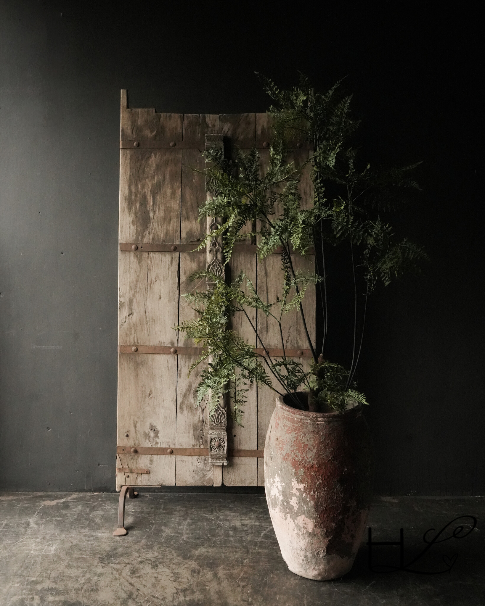 An old antique Nepalese wooden door on an iron stand is a beautiful example of Nepal’s rich cultural and artistic heritage, but also has a rustic charm that is hard to match with modern materials. The addition of an iron stand provides stability and allows the door to be integrated into an interior as a decorative element, making it a conversation piece and adding a touch of exotic history to any space. Such a piece can serve as a tribute to the craftsmanship of the artisans of the past and provide a window into Nepal’s rich traditions.