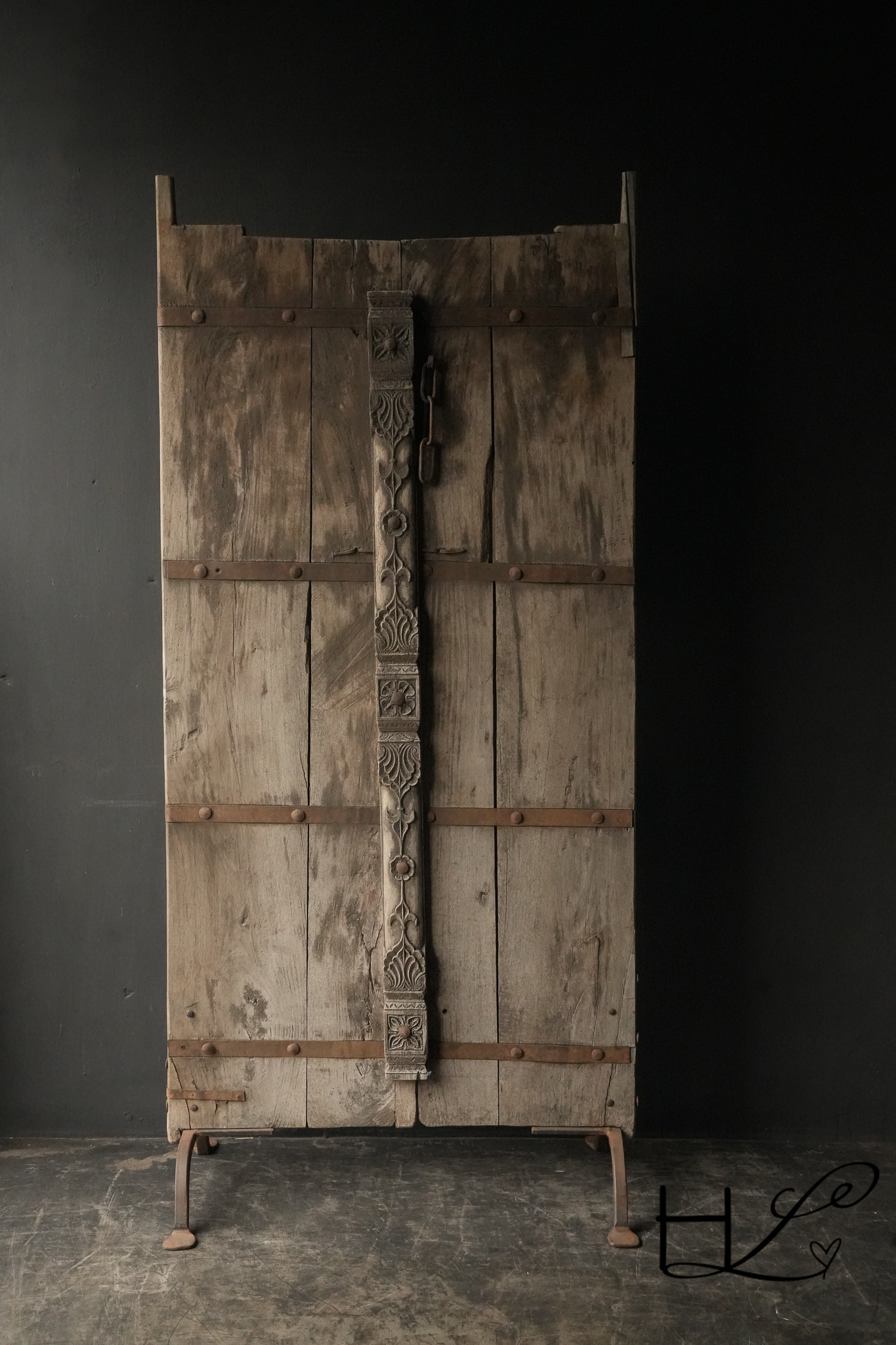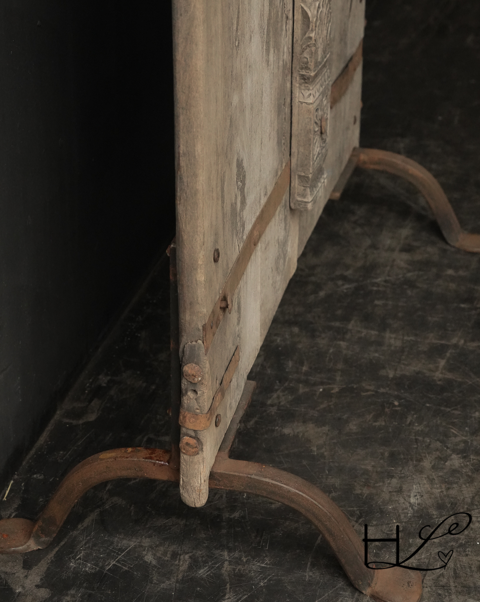 Beautiful !! Old Antique Nepalese wooden Door / room divider on iron base
