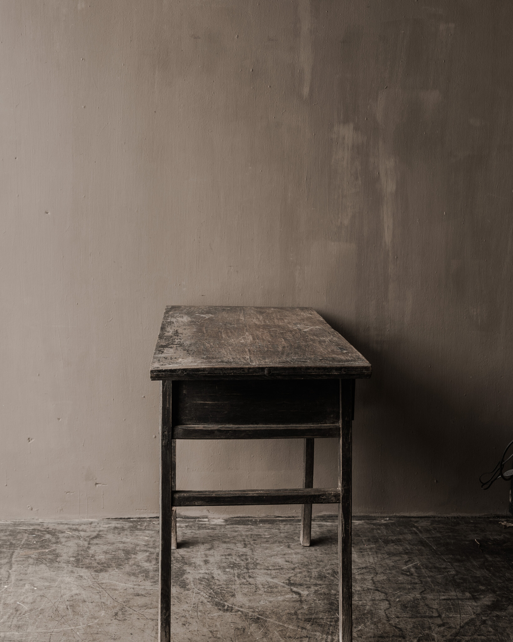 This table has a beautiful, dark, weathered brown/black-brown patina , unique due to years of use and natural wear. The color is exceptionally subtle: deep, warm tones with grayish nuances that are rarely found. The top still shows the original grain of the old wood, which immediately gives this piece of furniture a soul.
