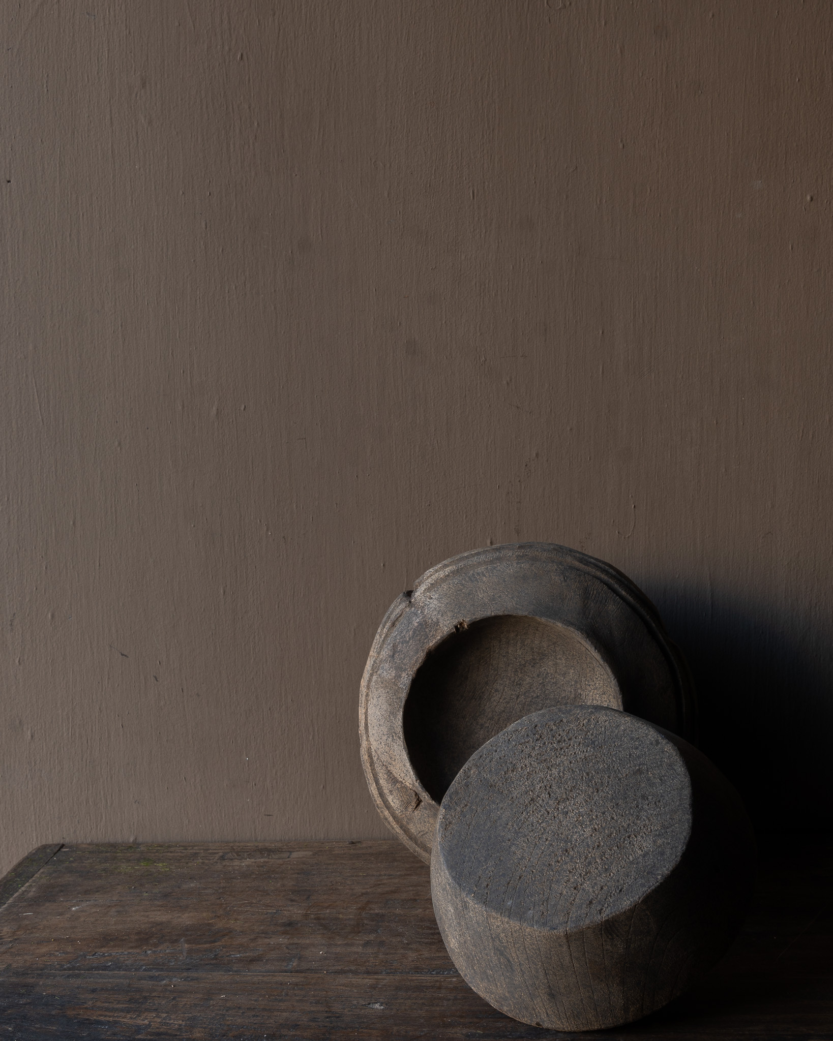 The heavy, compact character and the matte, grayed surface make this item perfect for a sober, rural and wabi-sabi interior.