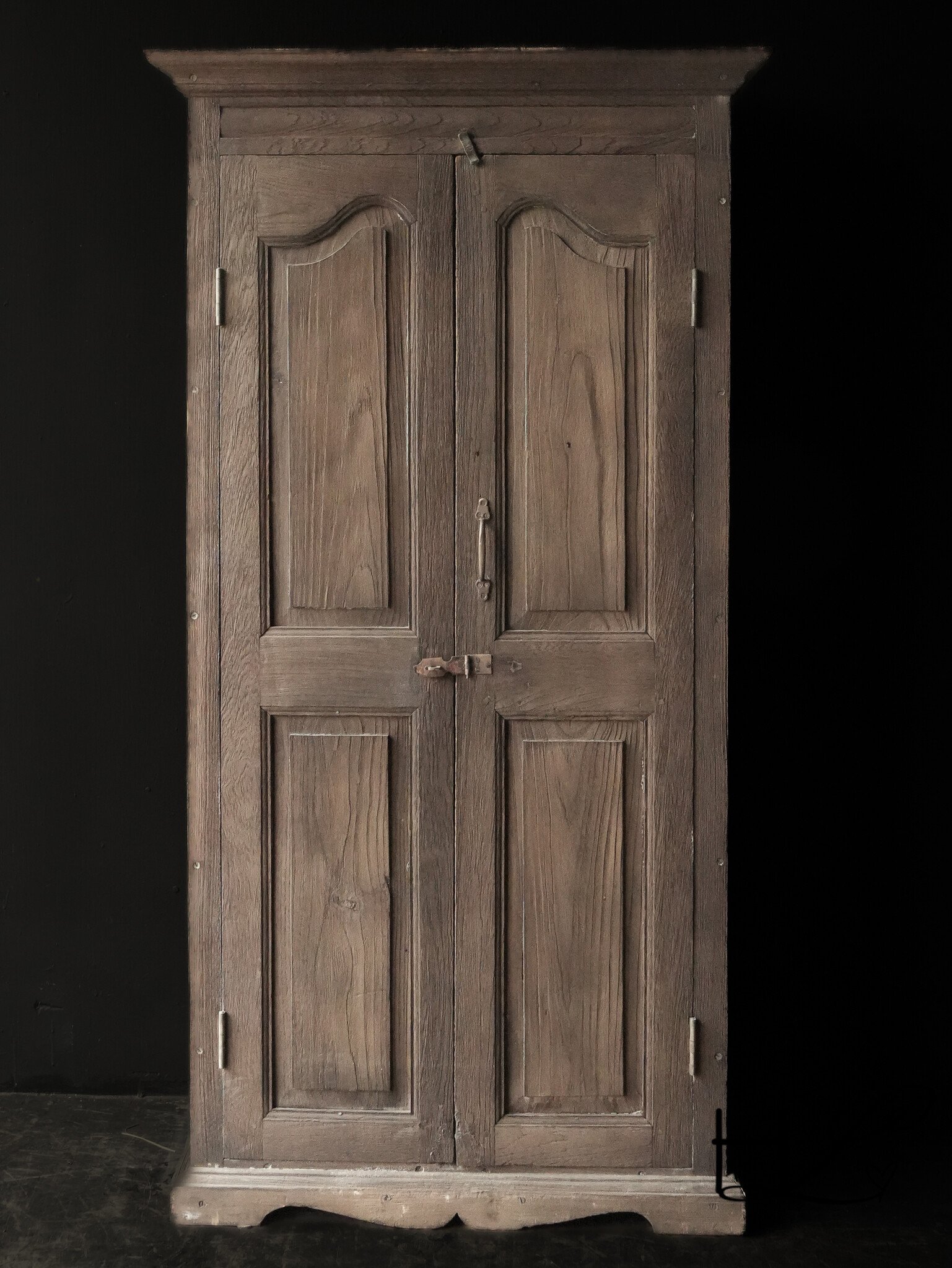 The sandblasting process beautifully highlights the pure grain of the wood, giving the cabinet its signature wabi-sabi look. The classic panel doors and understated shapes make this piece a stylish and authentic statement in any rustic, understated, or natural interior.