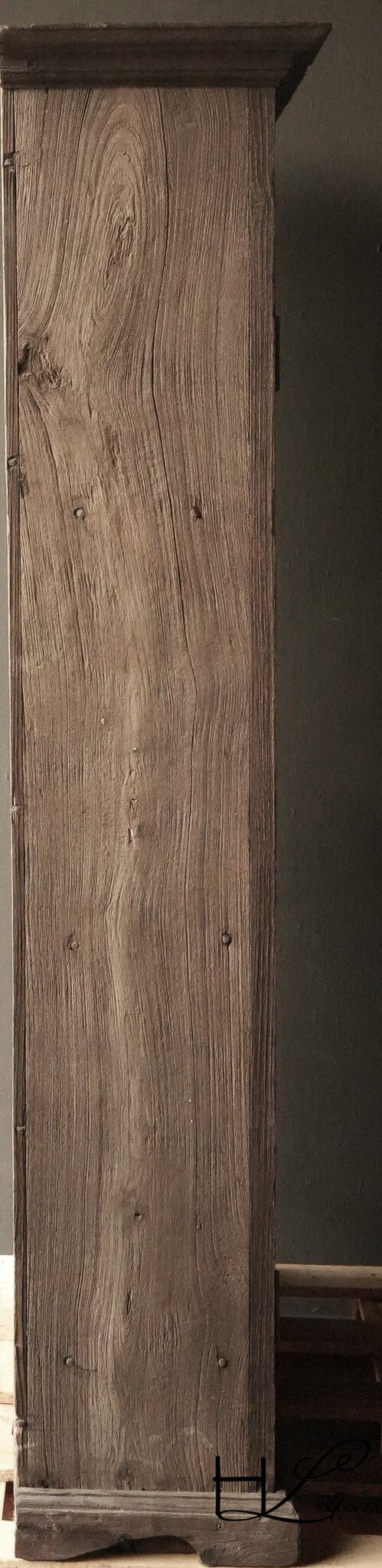 This antique, unique sandblasted wooden cabinet exudes tranquility, simplicity, and character. The weathered wood, visible grain, and soft, matte finish give this cabinet a timeless, understated look.