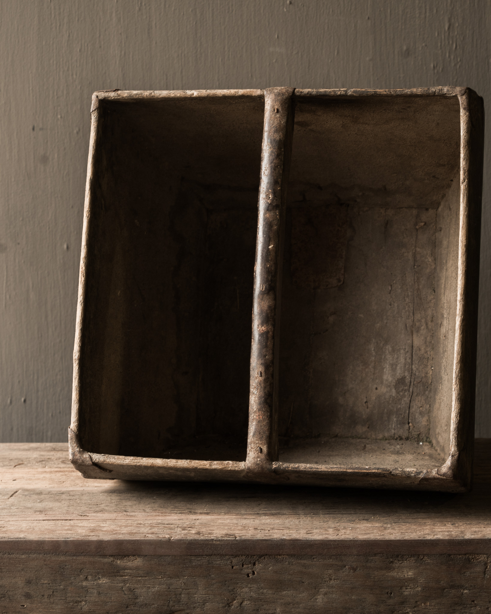 Beautiful as a robust home decoration in a simple or rustic interior—for example, filled with linen, candles, pine cones, or dried flowers. A unique piece with character and history.