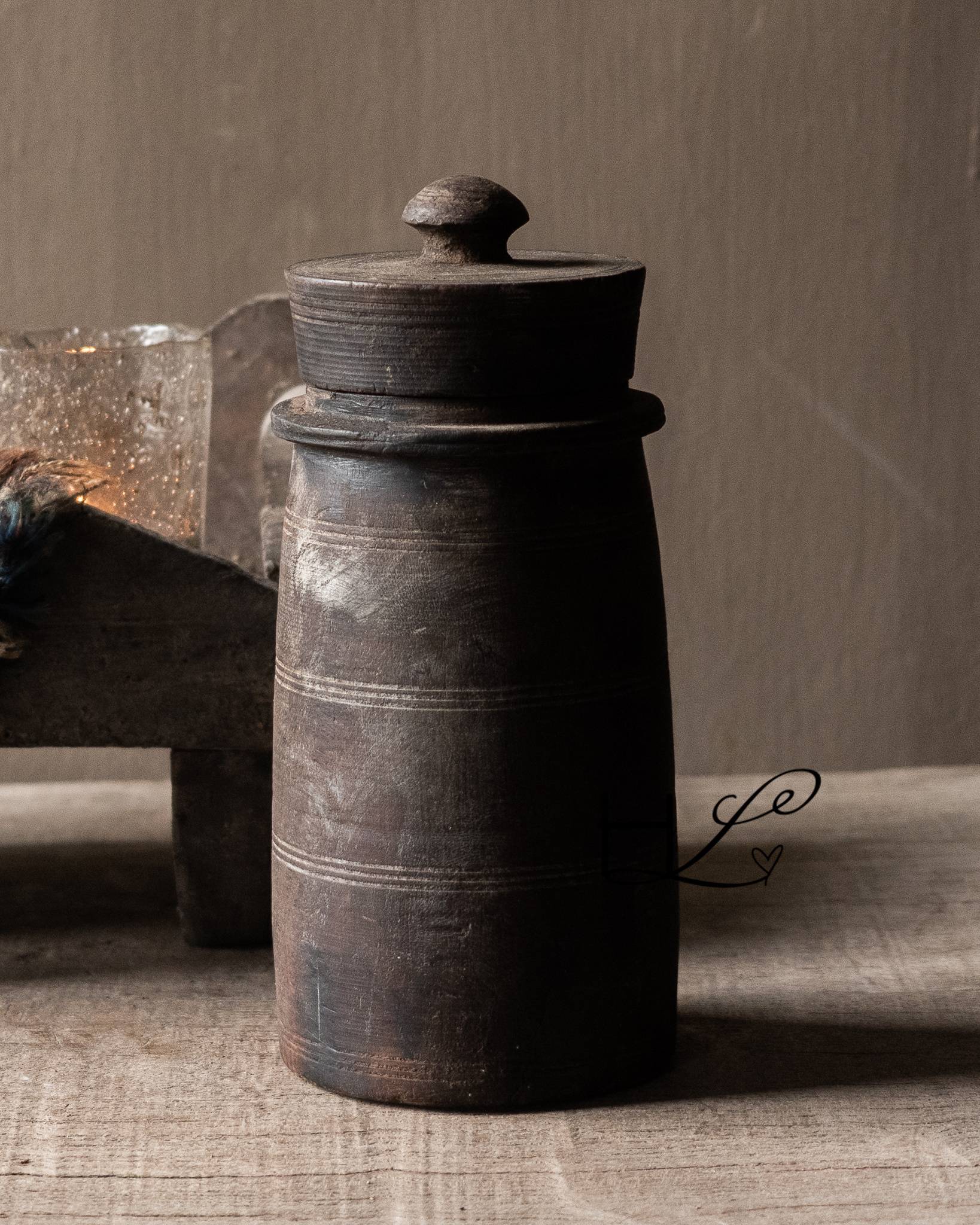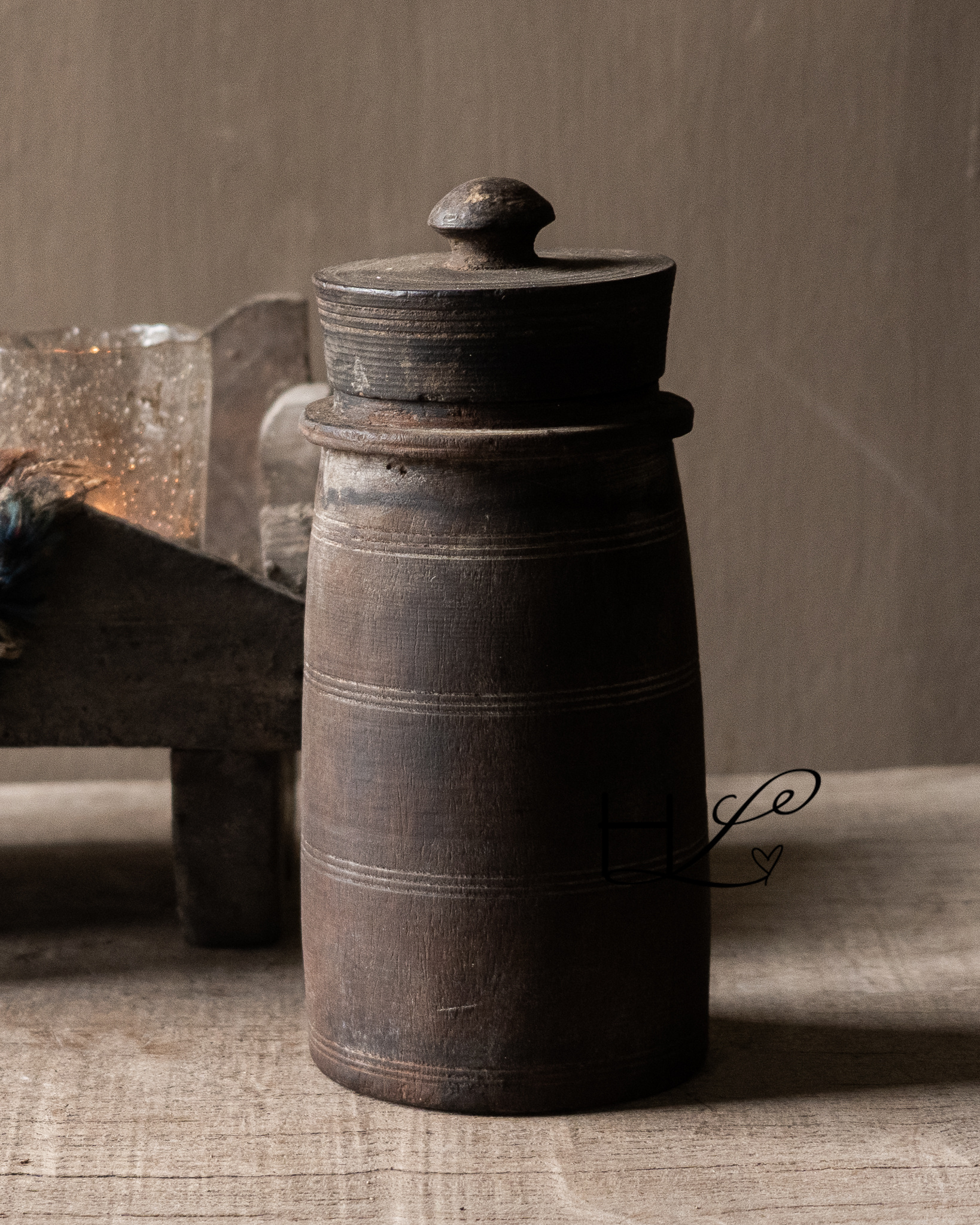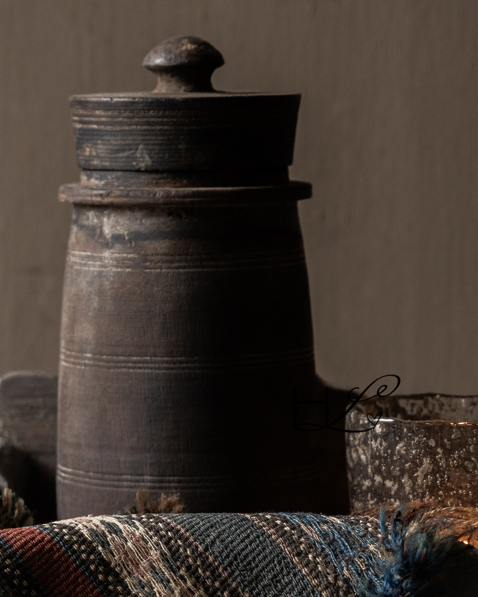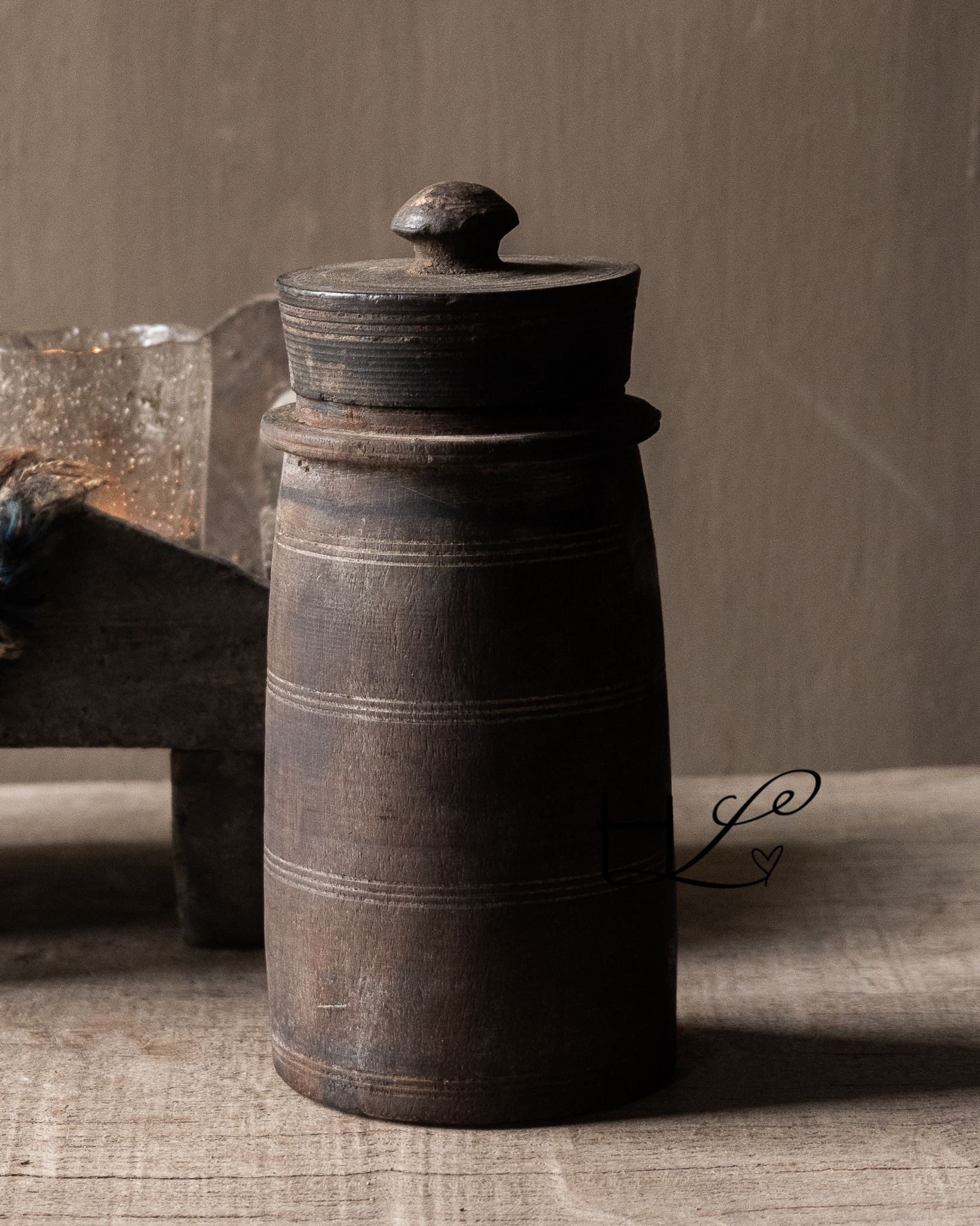 Signature Collectie Original old wooden Nepalese jug / pot with lid