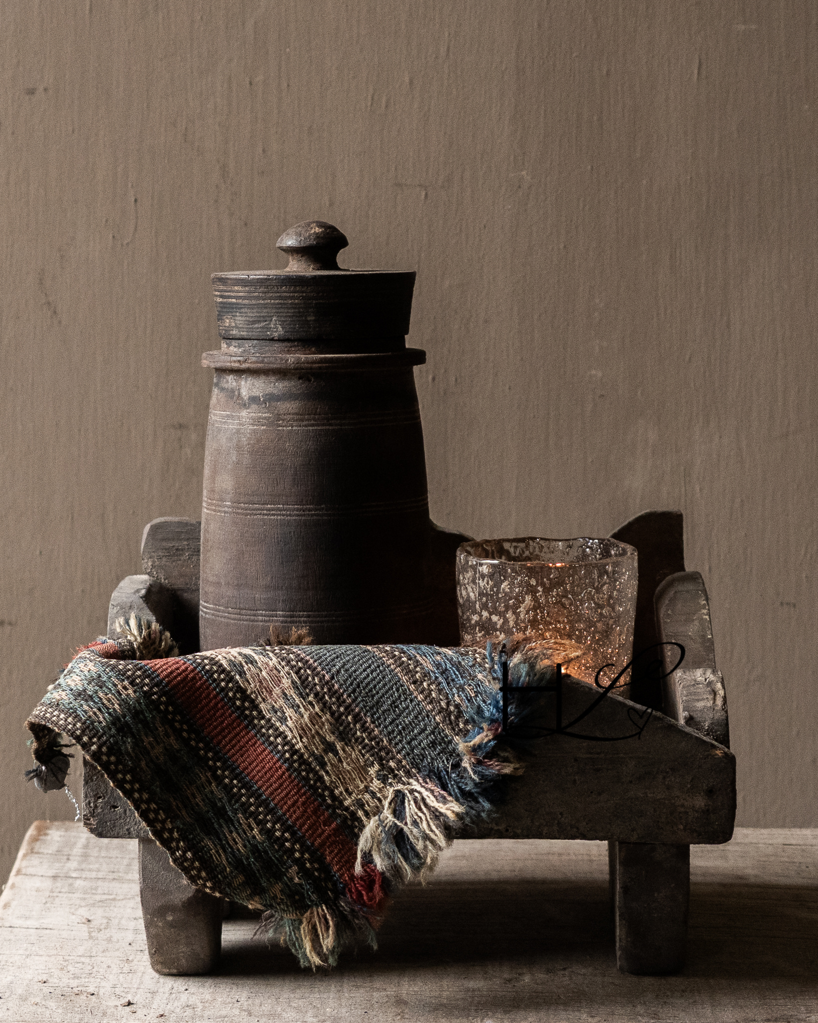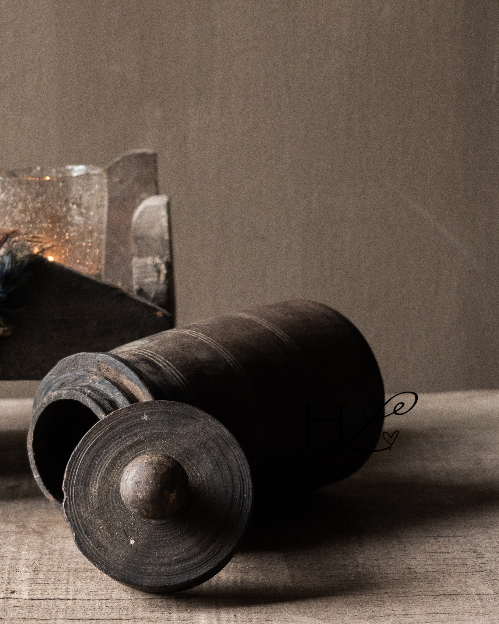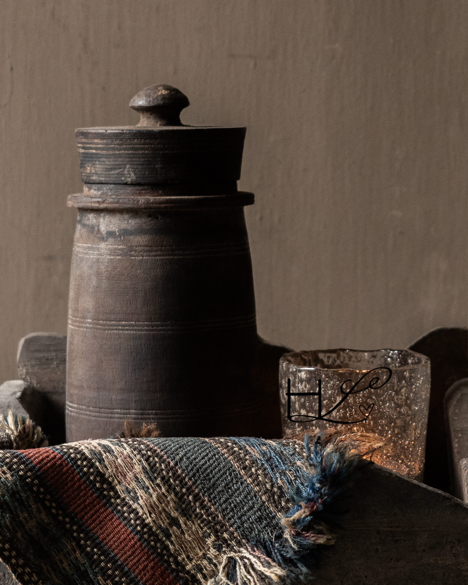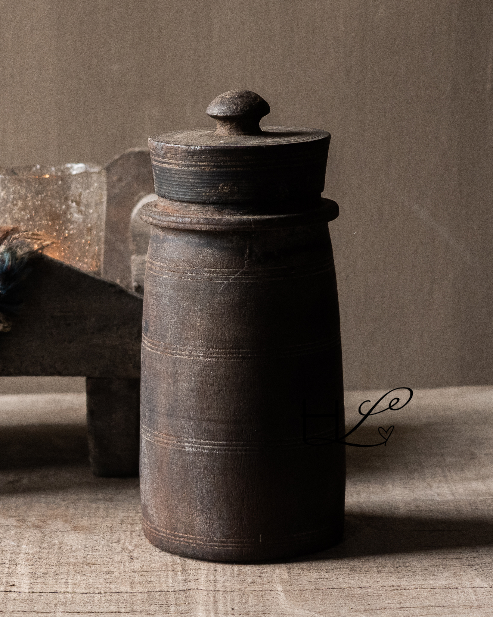 Signature Collectie Original old wooden Nepalese jug / pot with lid