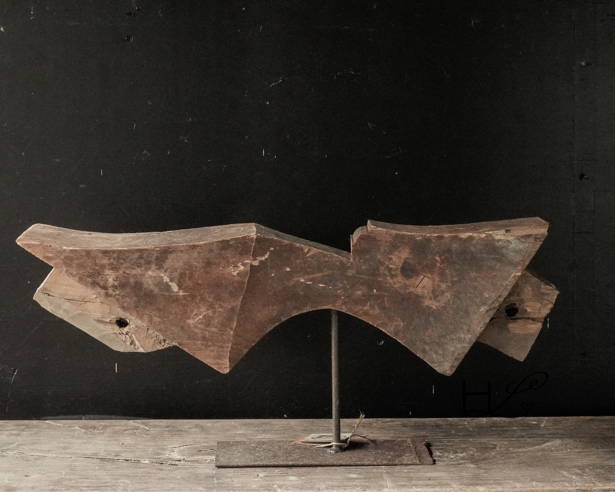 A pure and powerful object with a visible history. This unique wooden frame is derived from an old construction element and bears the marks of time, use, and craftsmanship. The irregular lines, natural grain, and weathered texture make each piece completely unique.