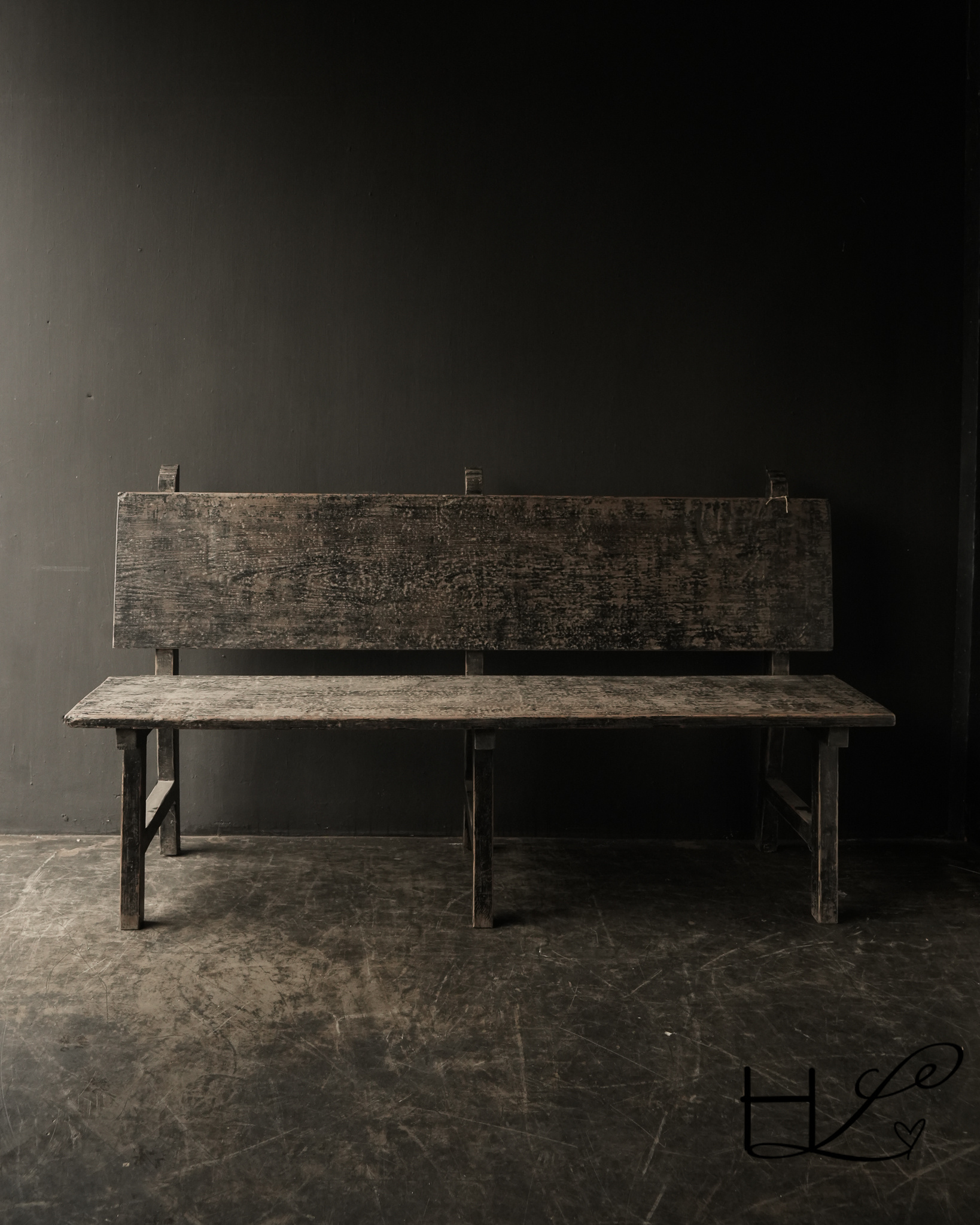 Unique black/brown Authentic old wooden bench