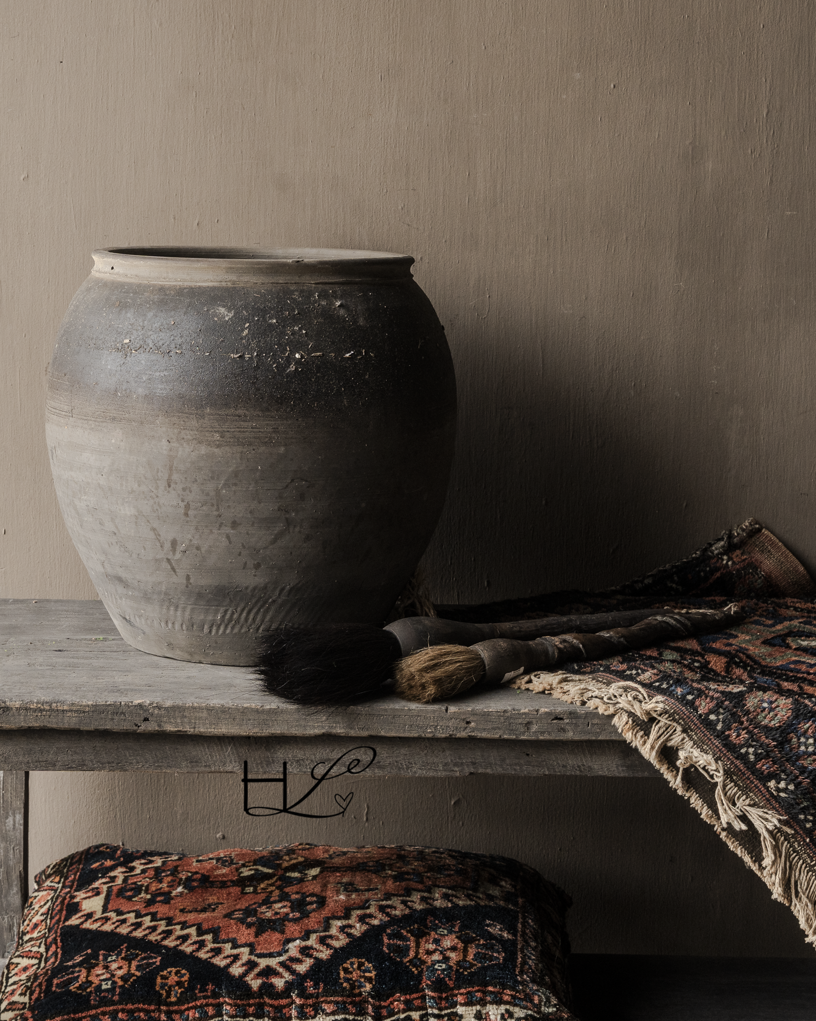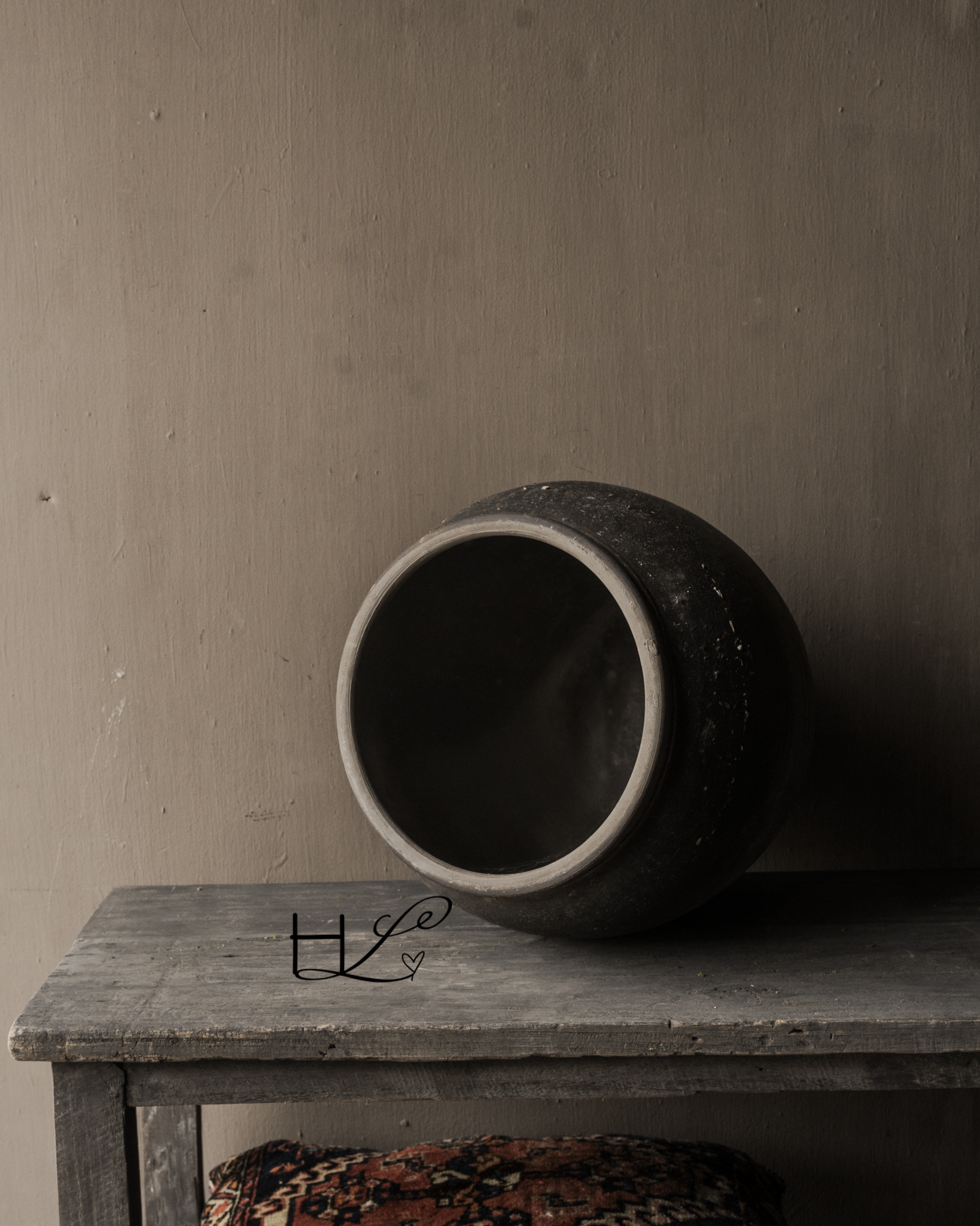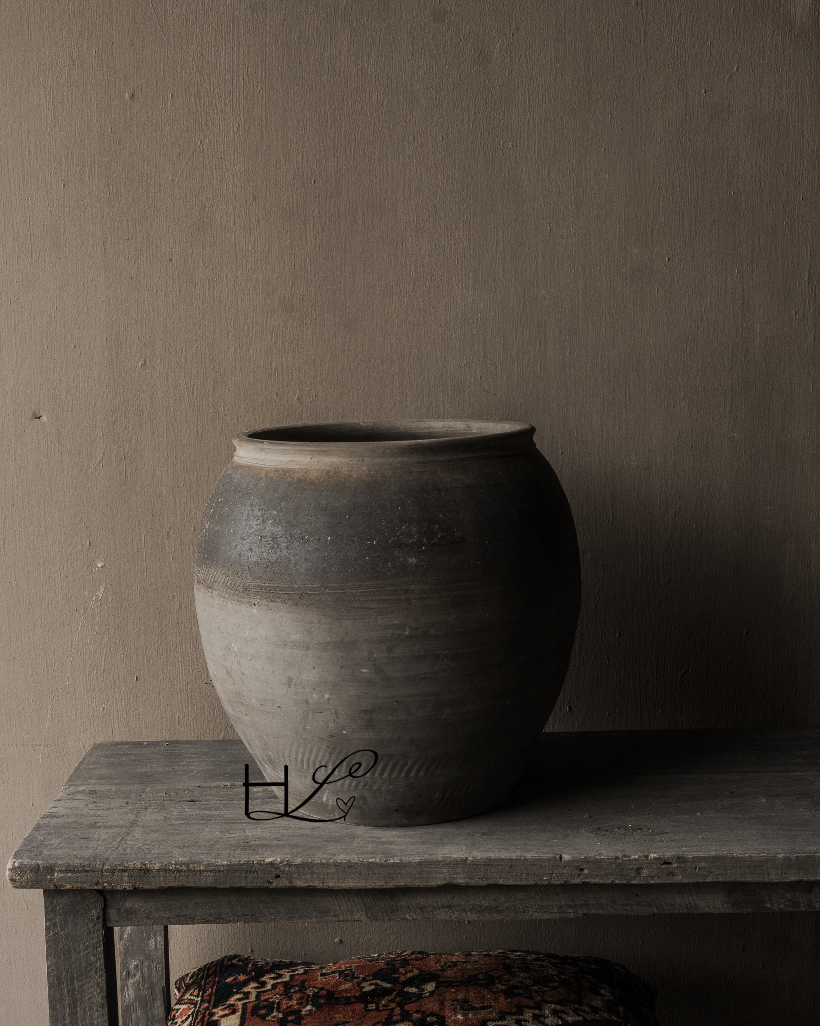 The jug is handmade and shows clear signs of wear and age. It is precisely these imperfections—small color variations, imperfections, and wear—that make each piece unique.