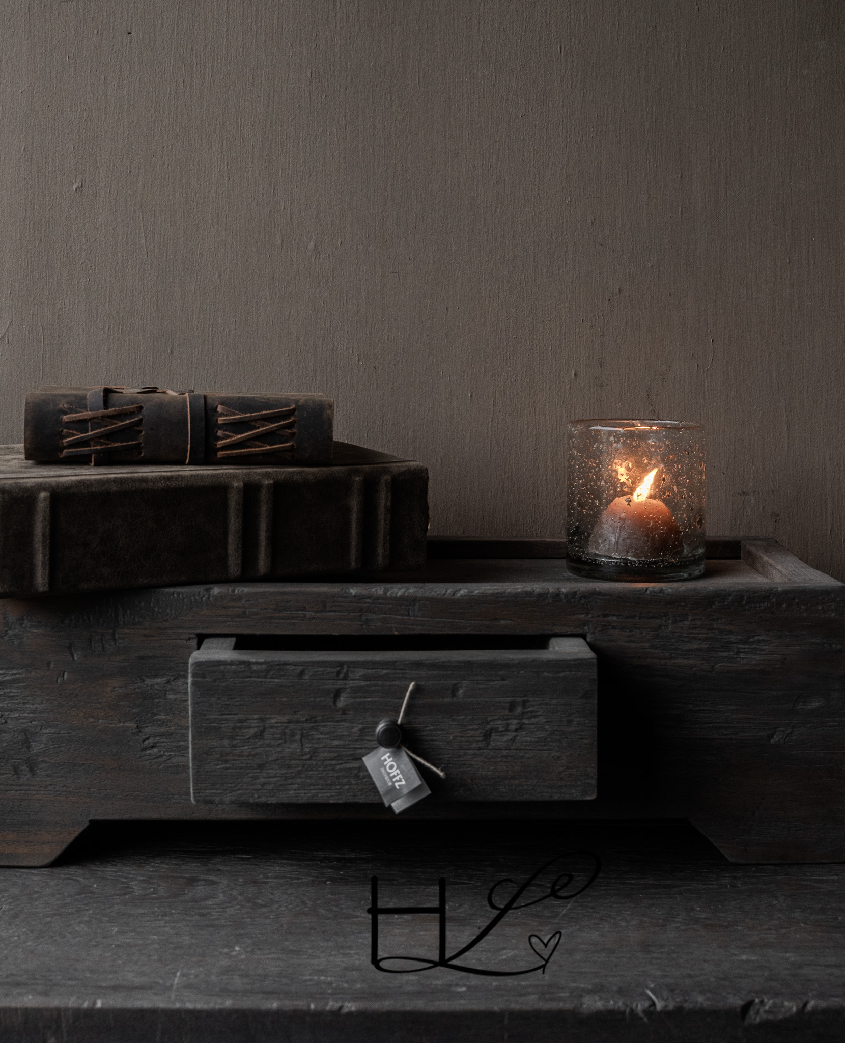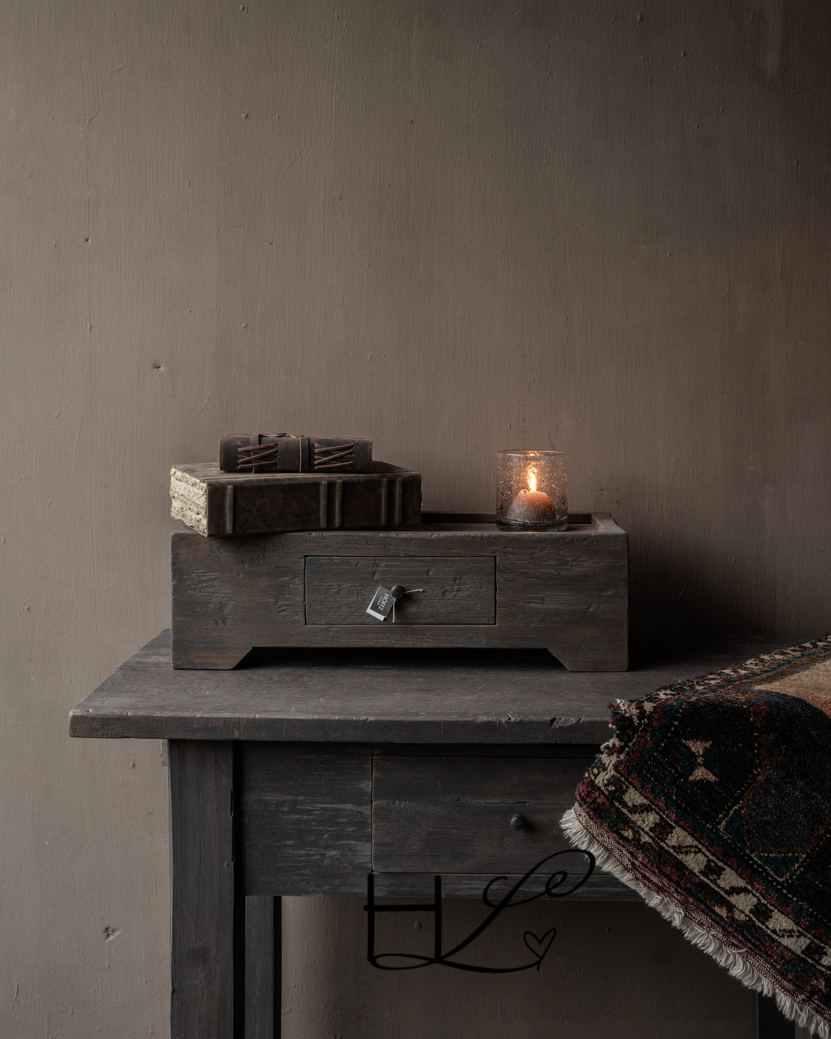 This beautiful windowsill chest with drawer is a charming, multifunctional home accessory that instantly adds warmth and character to any interior. The weathered wood, subdued color, and robust design give the chest that characteristic , rugged, understated, and pure look we love so much.