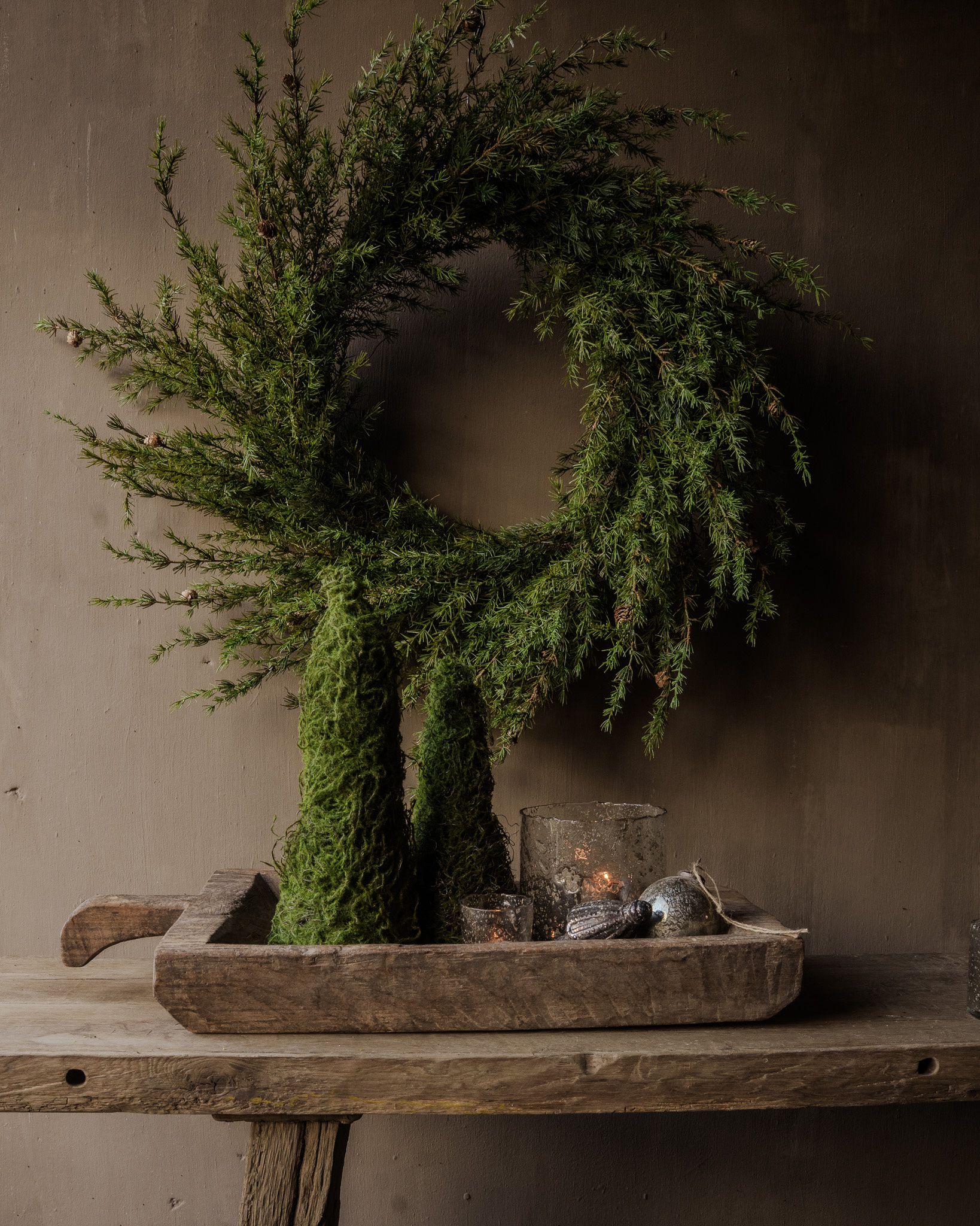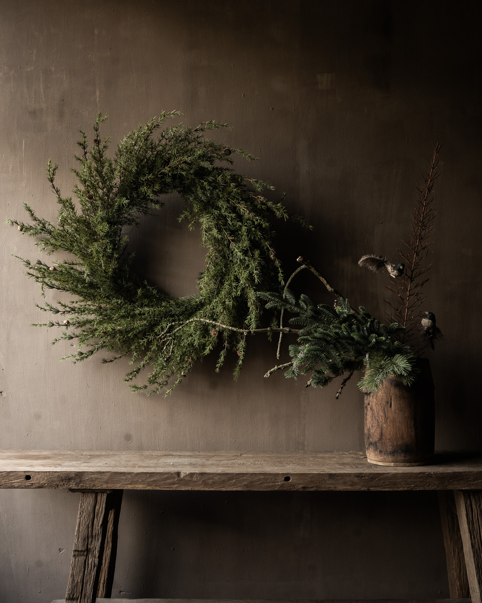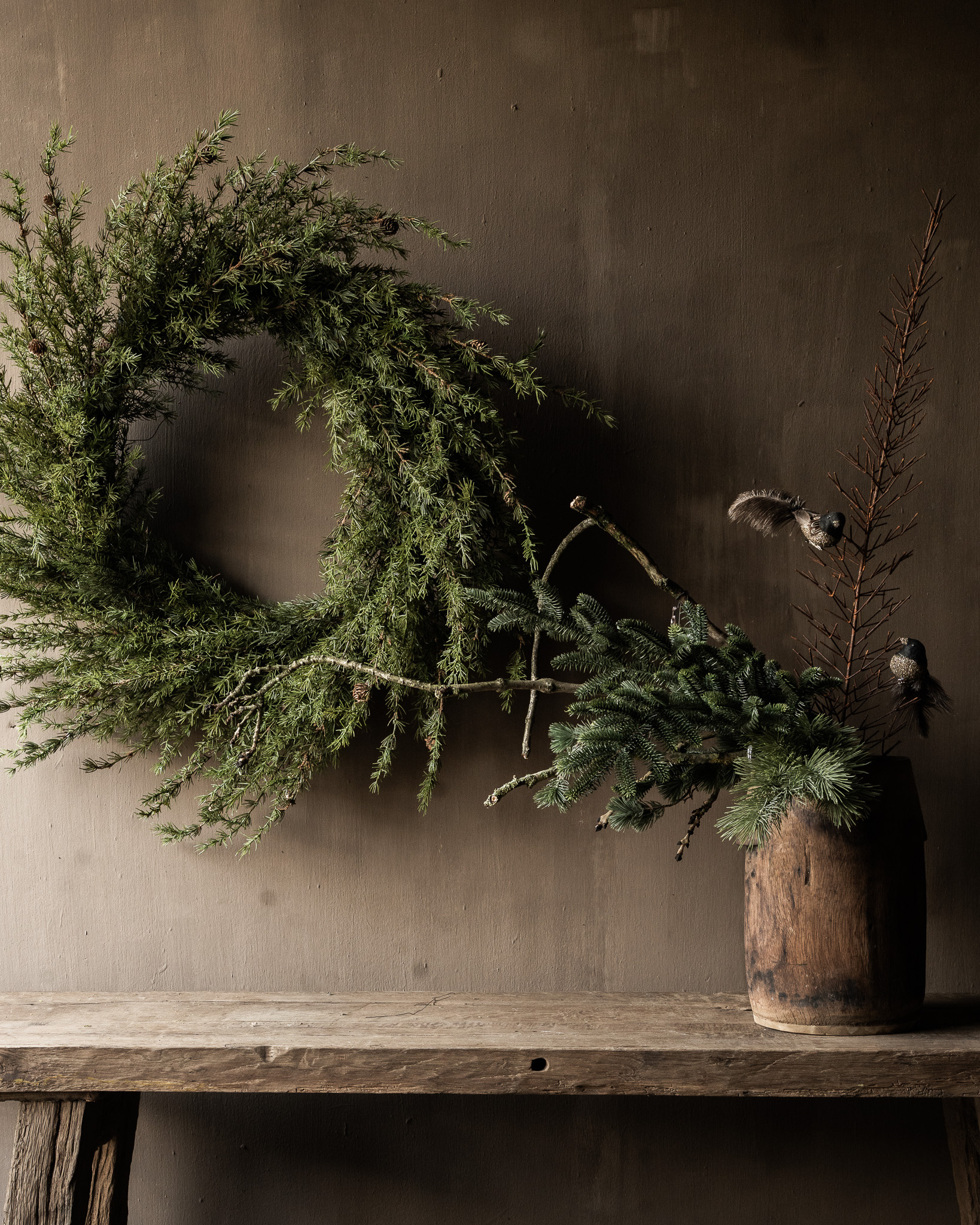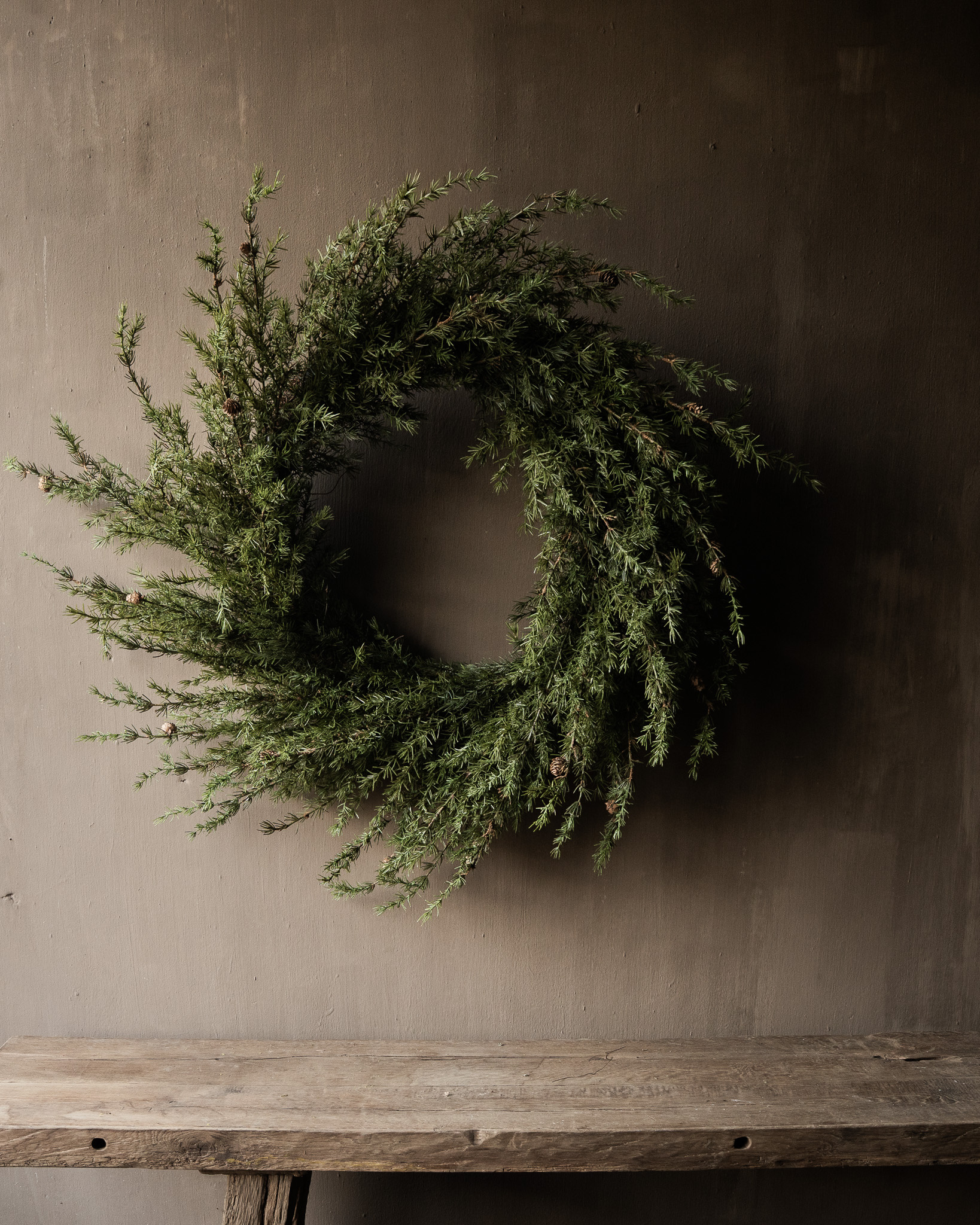 Beautiful XXL larch wreath! The natural, wild shape and rich texture of the larch branches give it a rustic, minimalist charm.