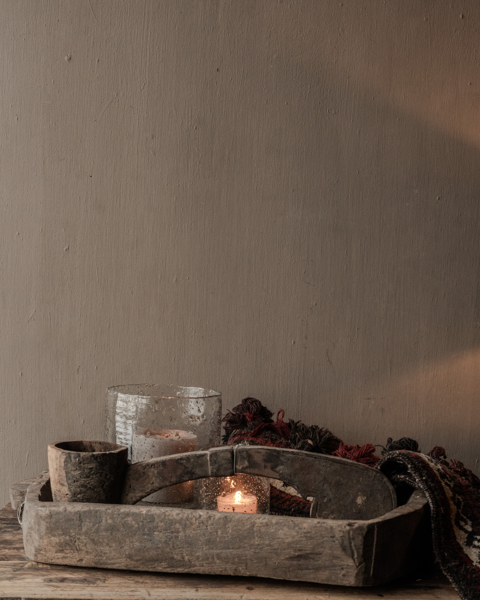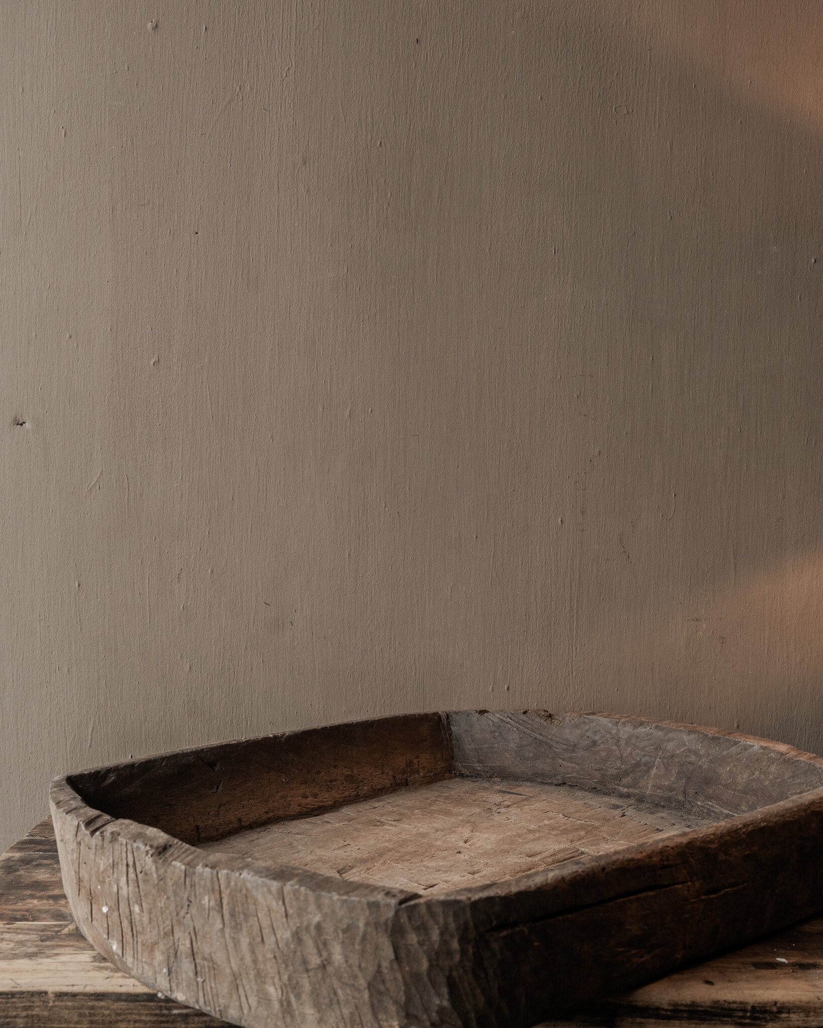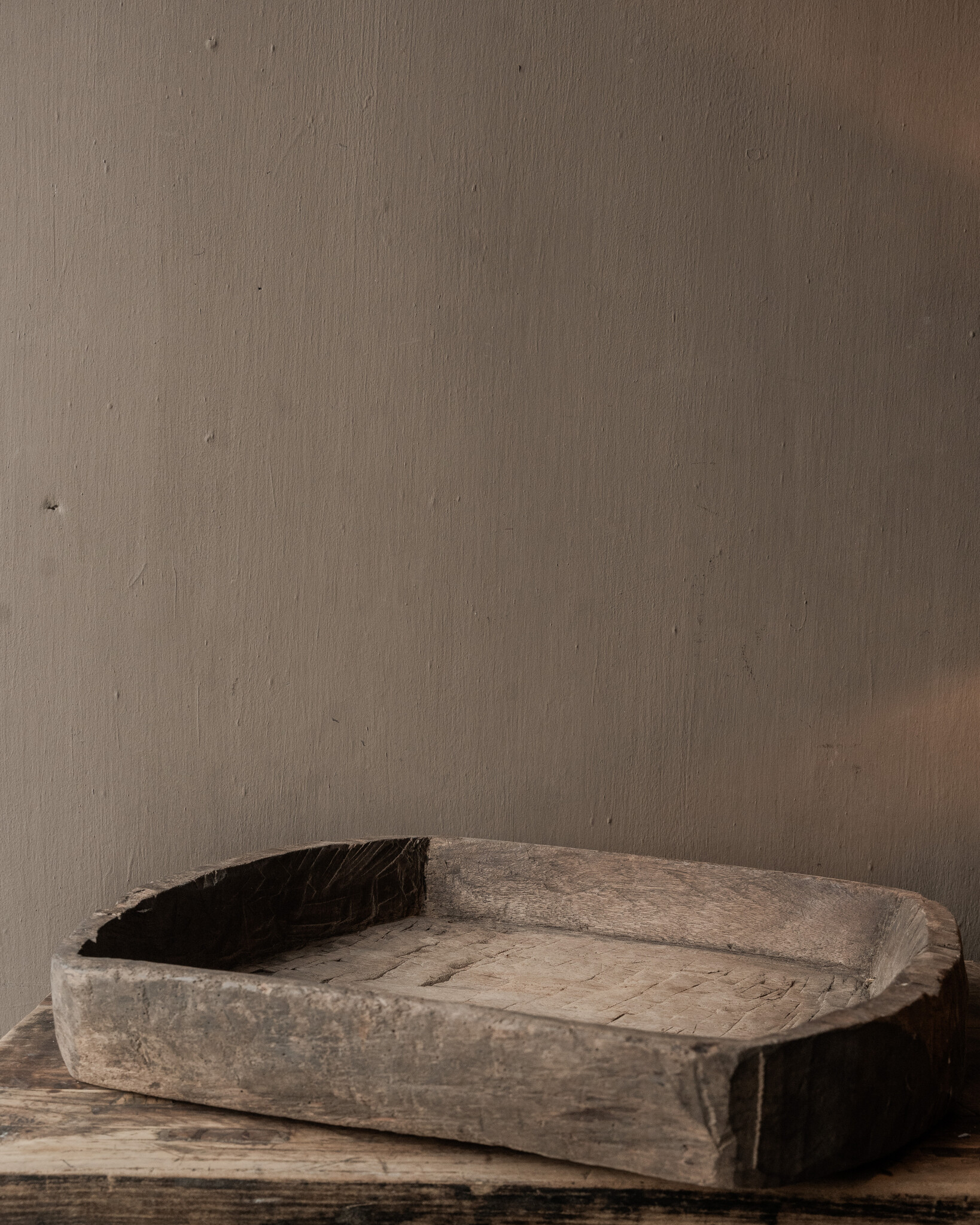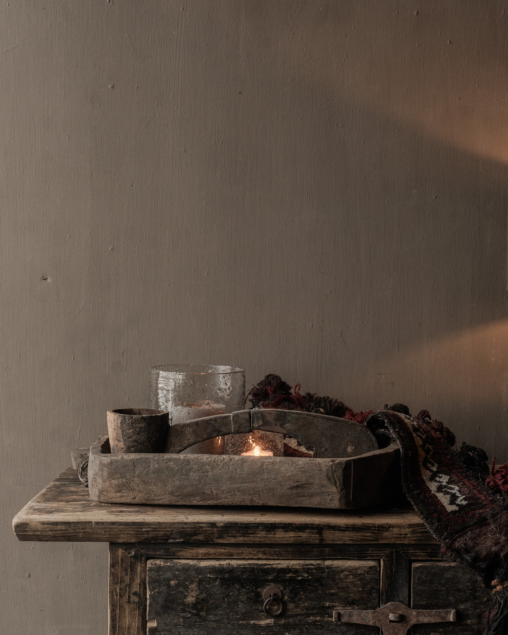 This wooden box is versatile. It looks beautiful as a serving tray on a table, as a decorative trough with lanterns, moss, or natural decorations, or as a stylish storage unit on a side table, kitchen island, or dresser. Even without decoration, it's a powerful object that exudes peace and warmth.