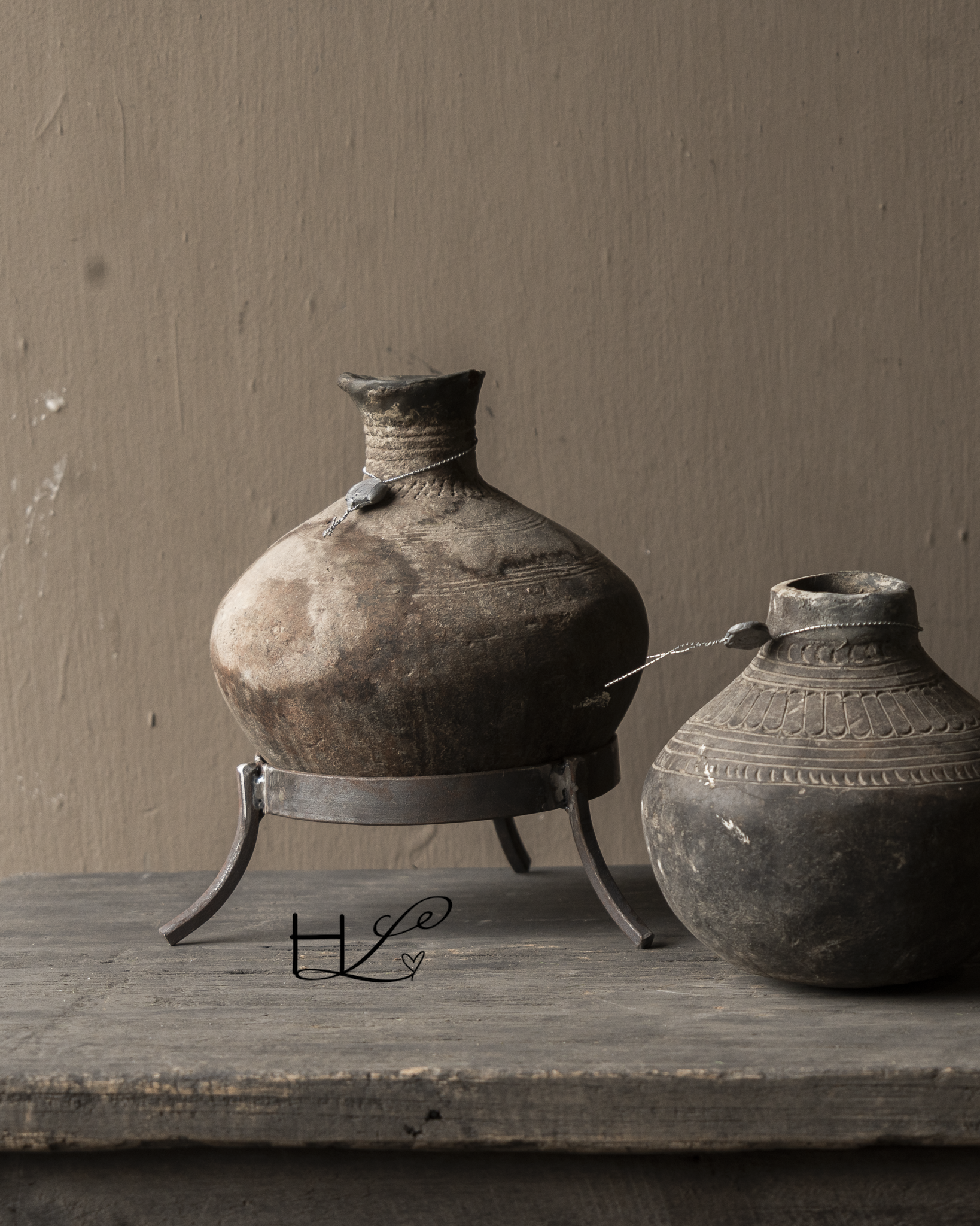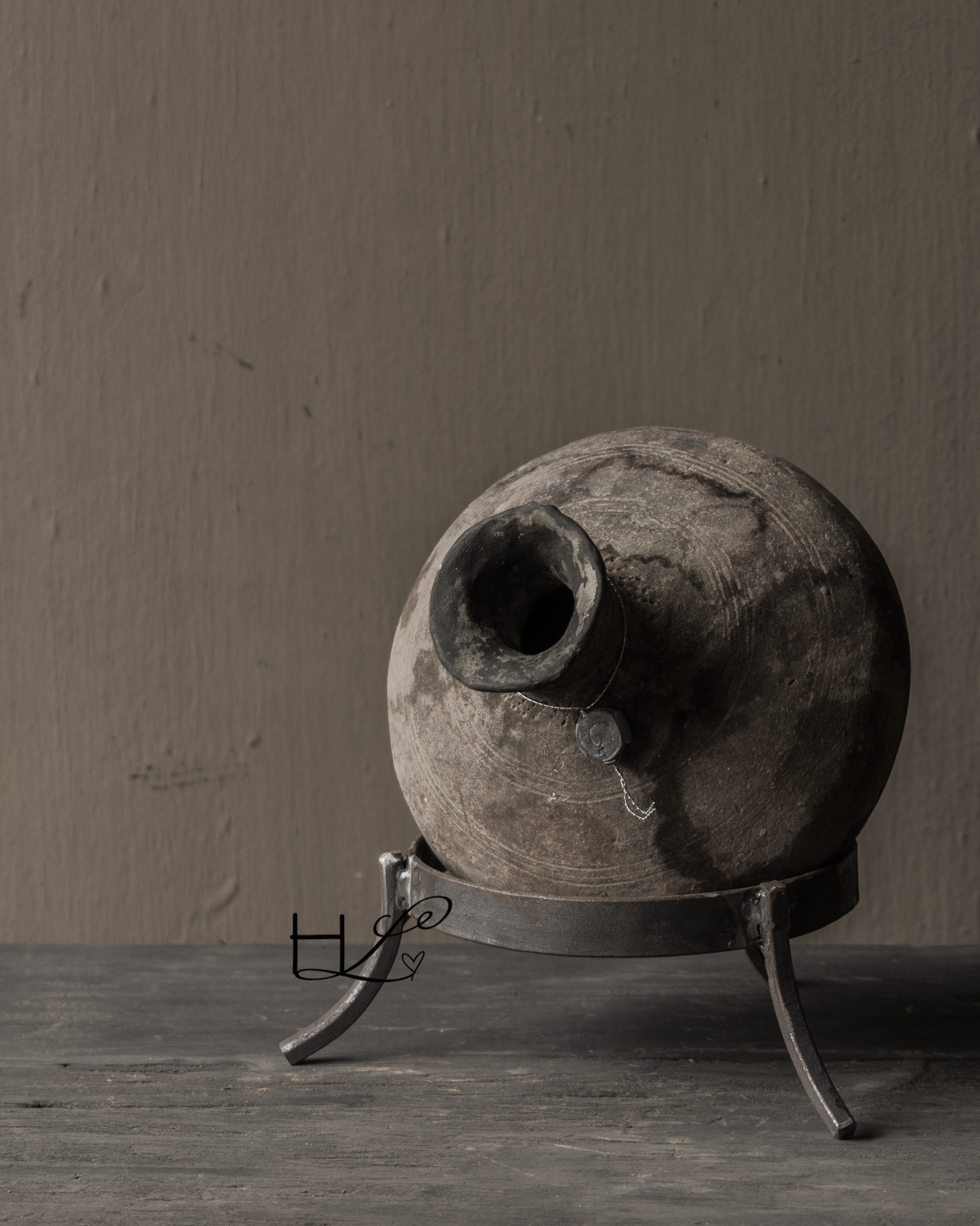 Dit authentieke aardewerk tuimelkruikje van Hoffz ademt sfeer en geschiedenis. De ronde, volle vorm en het doorleefde oppervlak geven dit object een puur en tijdloos karakter.