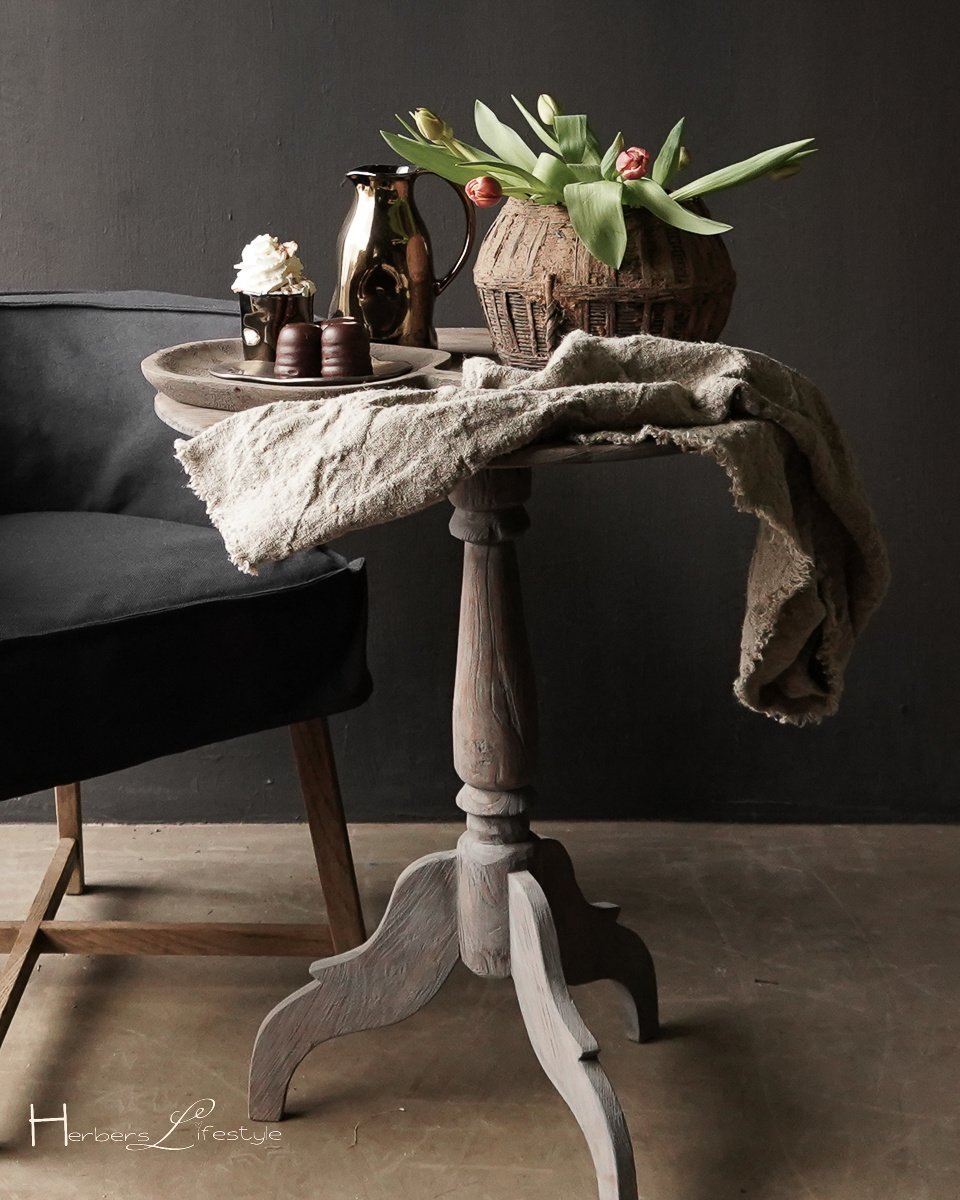 Aura peeperkorn Antiek houten Wijntafel /Ronde tafel