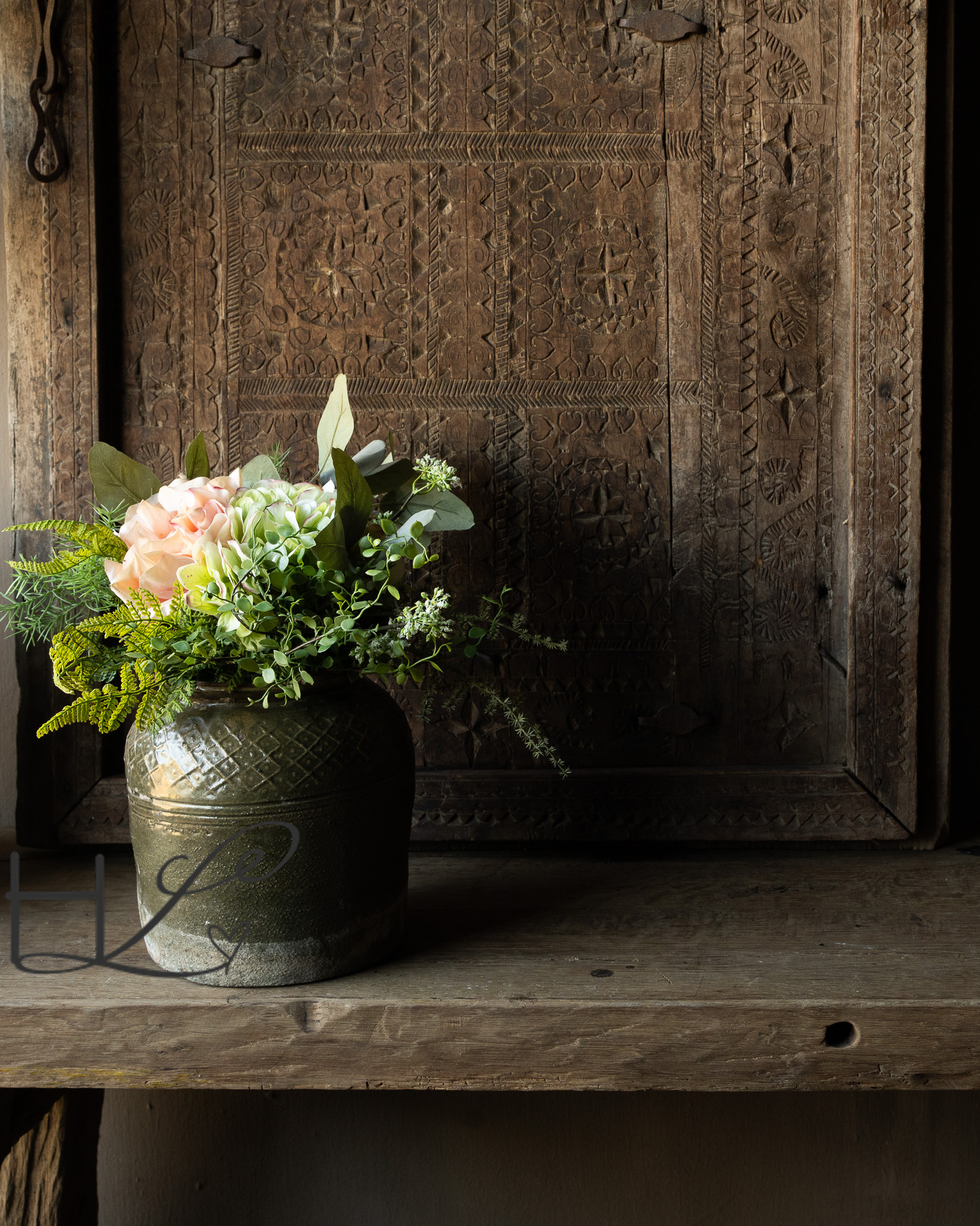 LUKSA Antieke kruik met een mooie groene door de tijd getekende glazuurlaag
