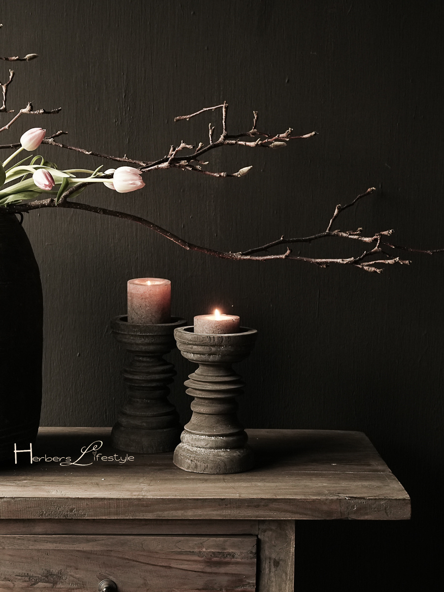 Perfect te gebruiken met een windlicht, kaars of een subtiel decoratief element zoals mos of een takje groen. Door de rustige vormgeving laat deze kandelaar zich moeiteloos combineren binnen een landelijk, sober of wabi-sabi interieur.