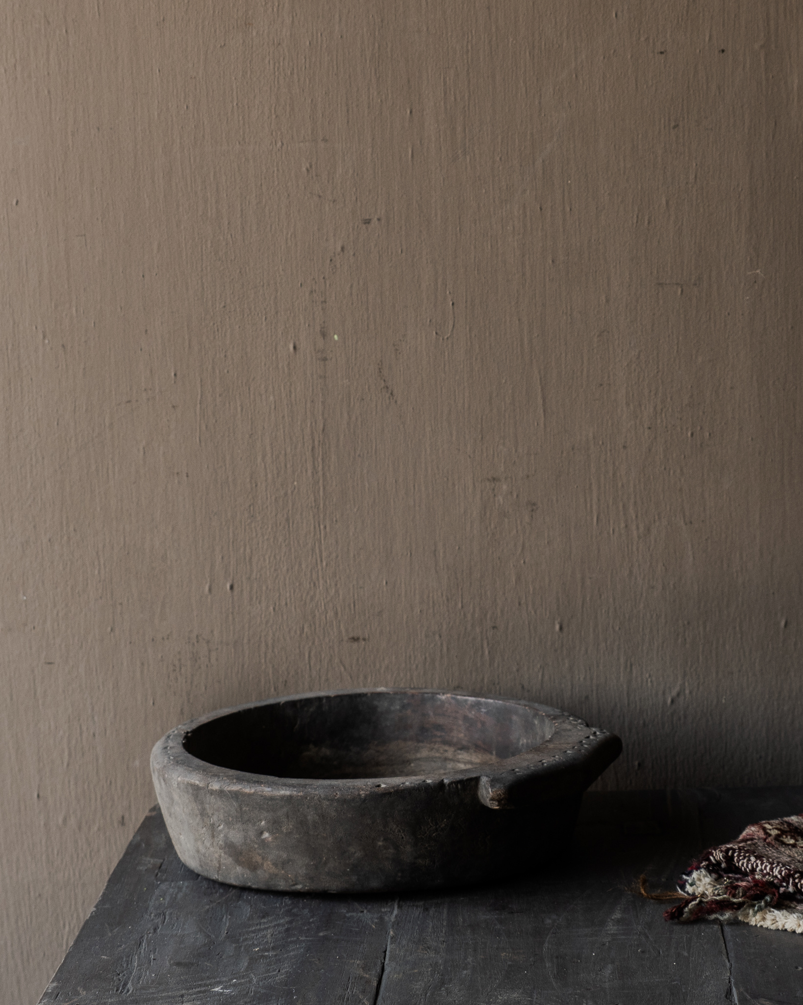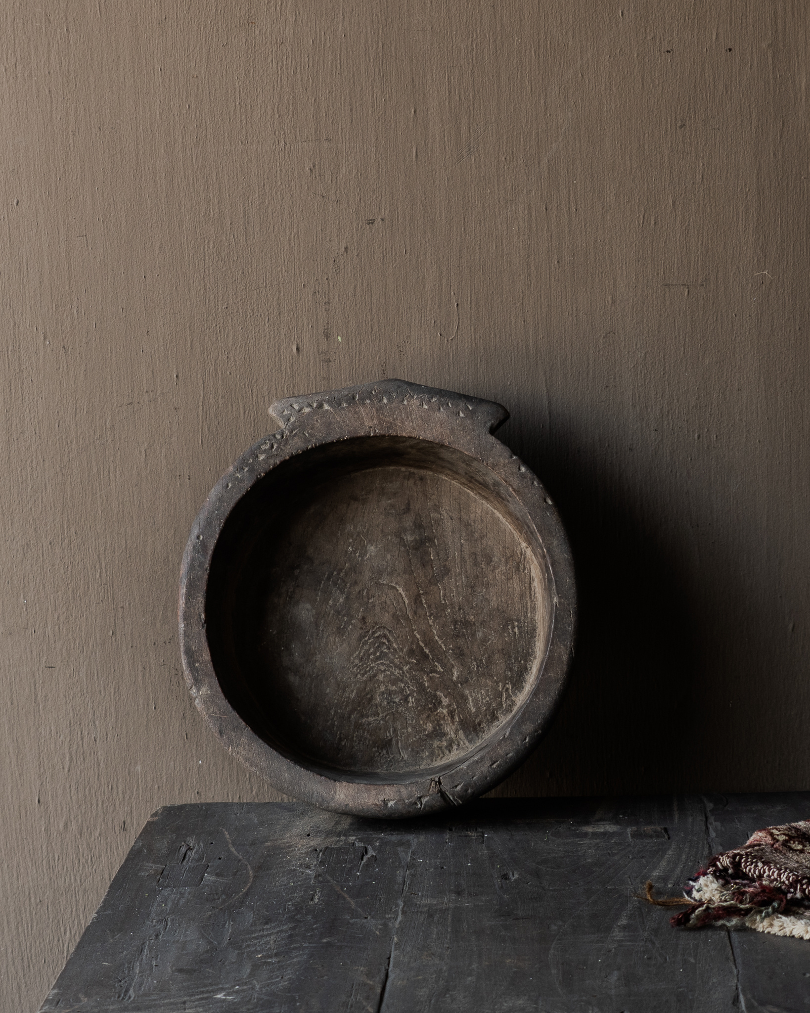 Een bijzonder en zeldzaam authentiek houten wabi sabi schaaltje met een prachtige doorleefde uitstraling. Dit unieke stuk ademt karakter en rust, gevormd door tijd, gebruik en natuur.