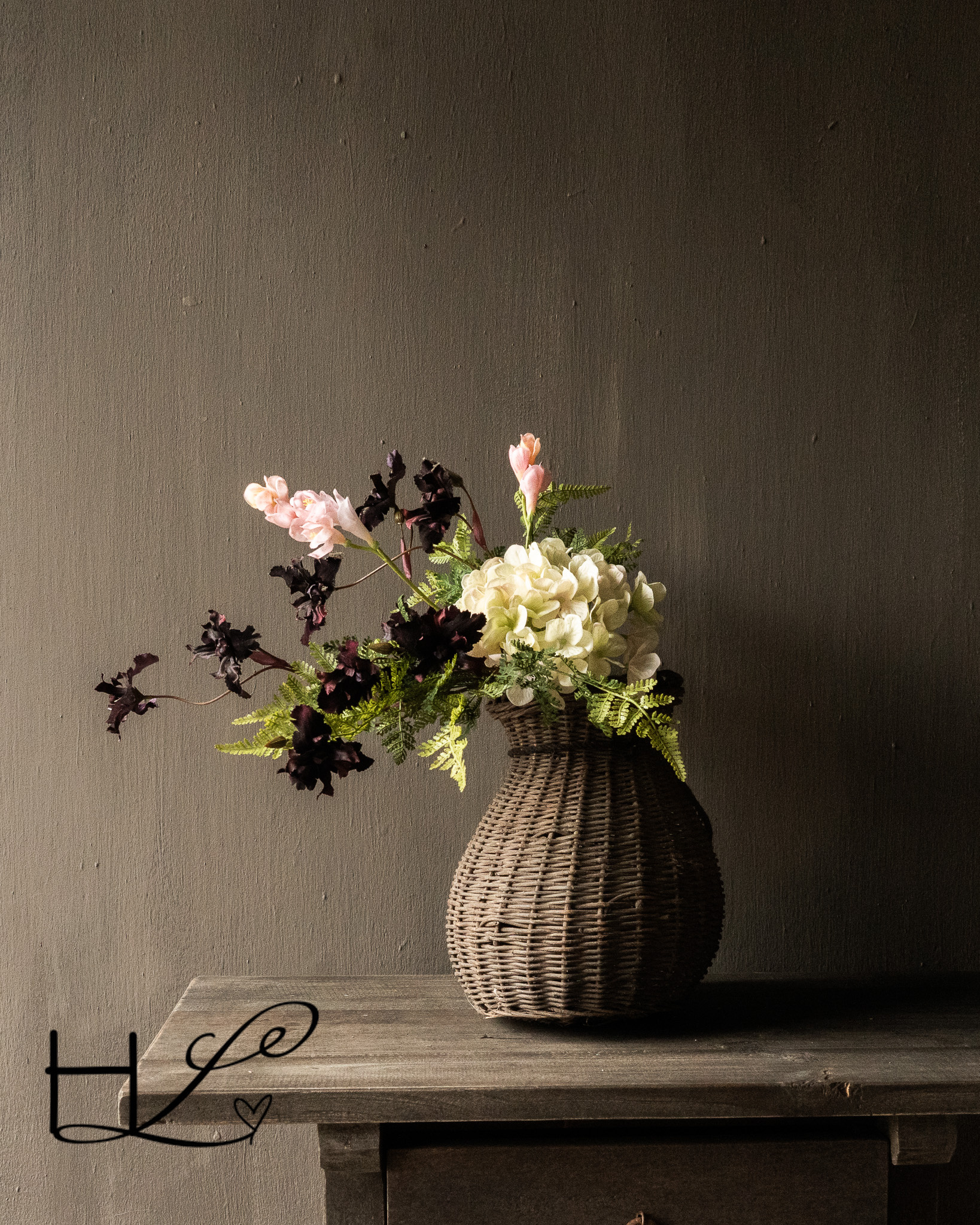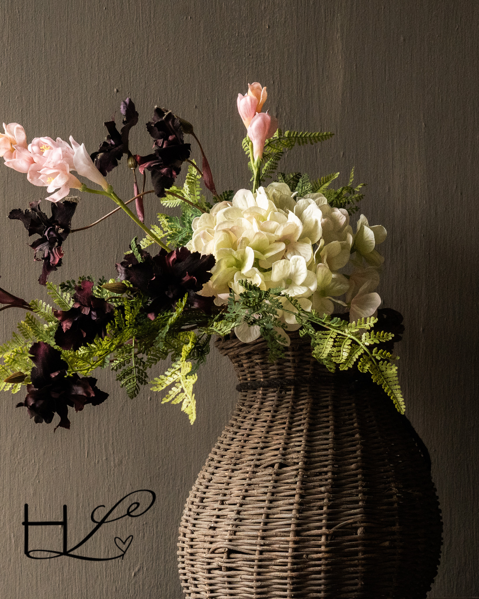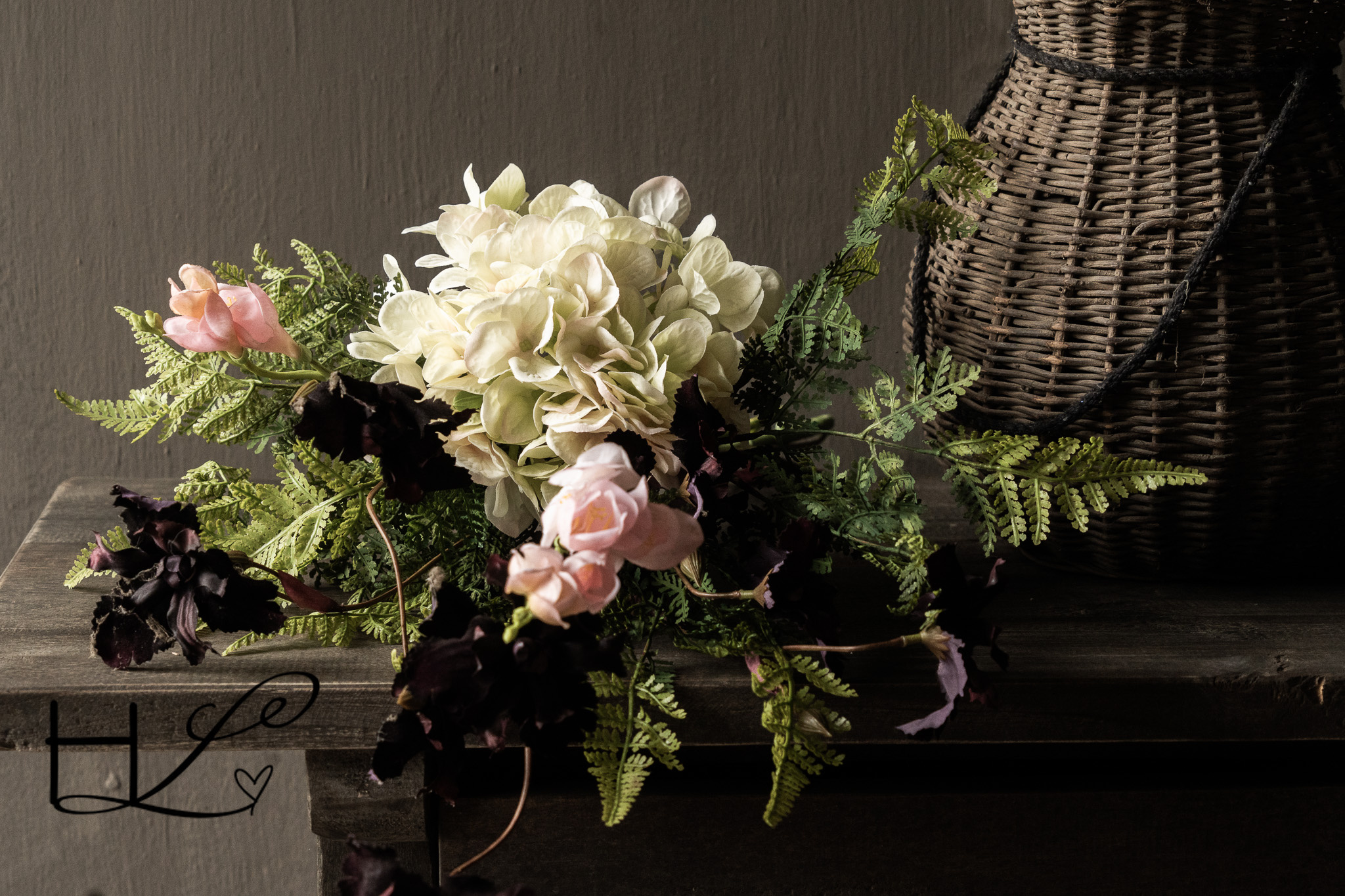 boeketje kunstbloemen roze, wit, bordeaux