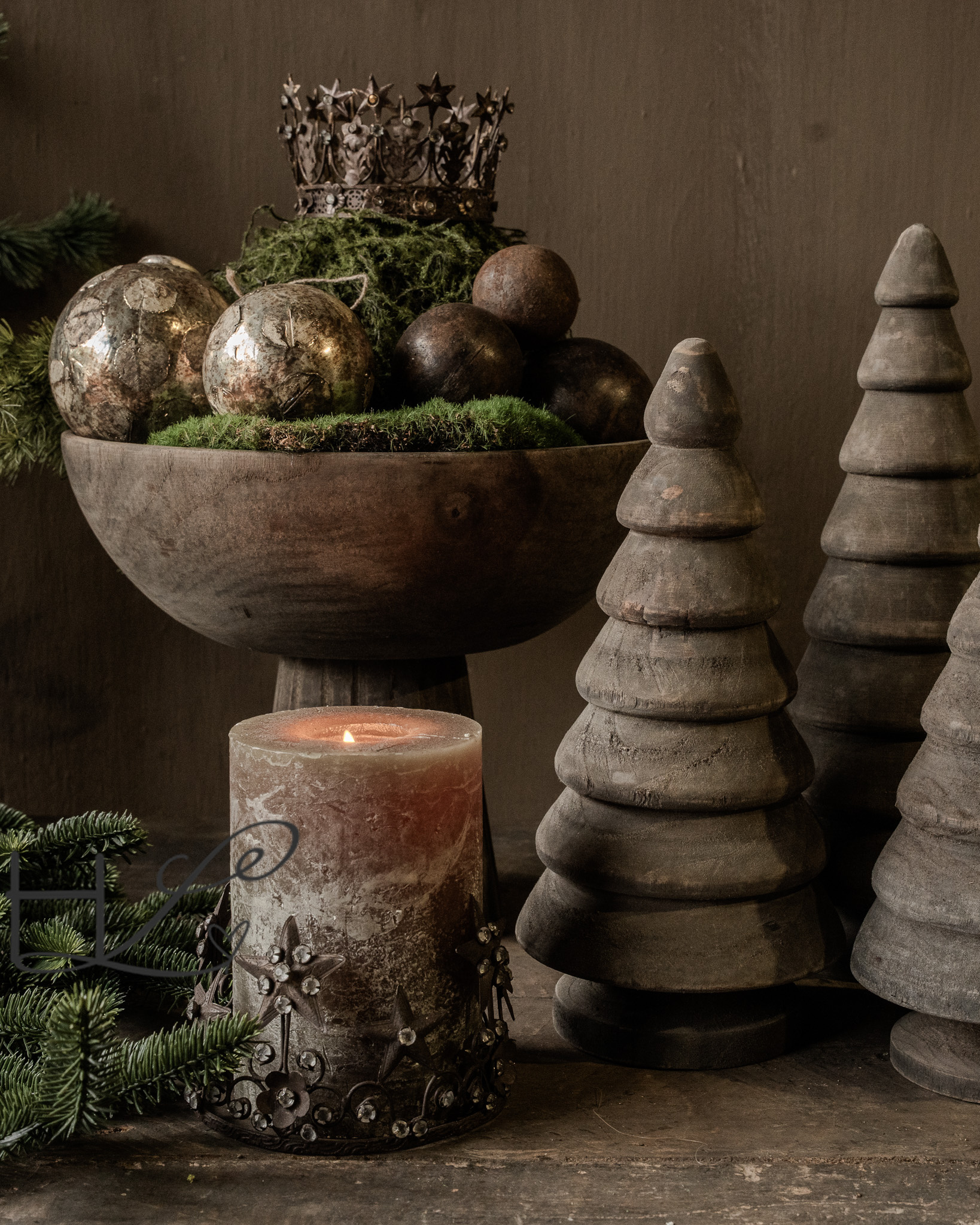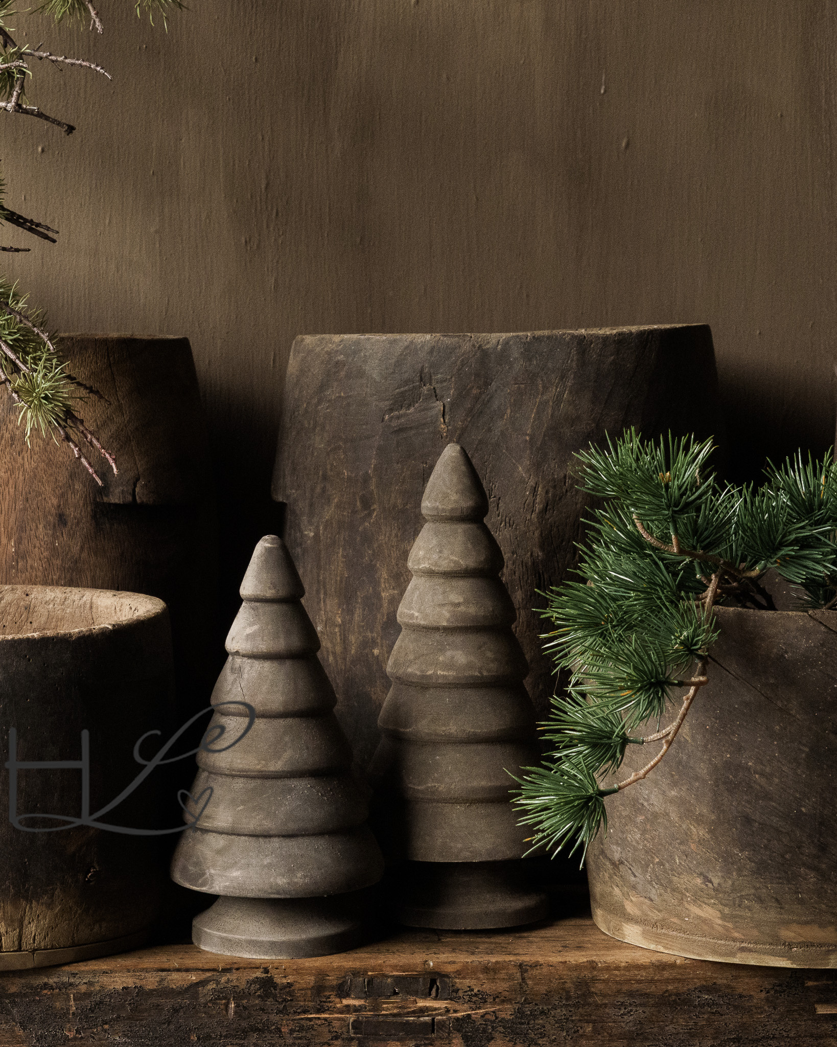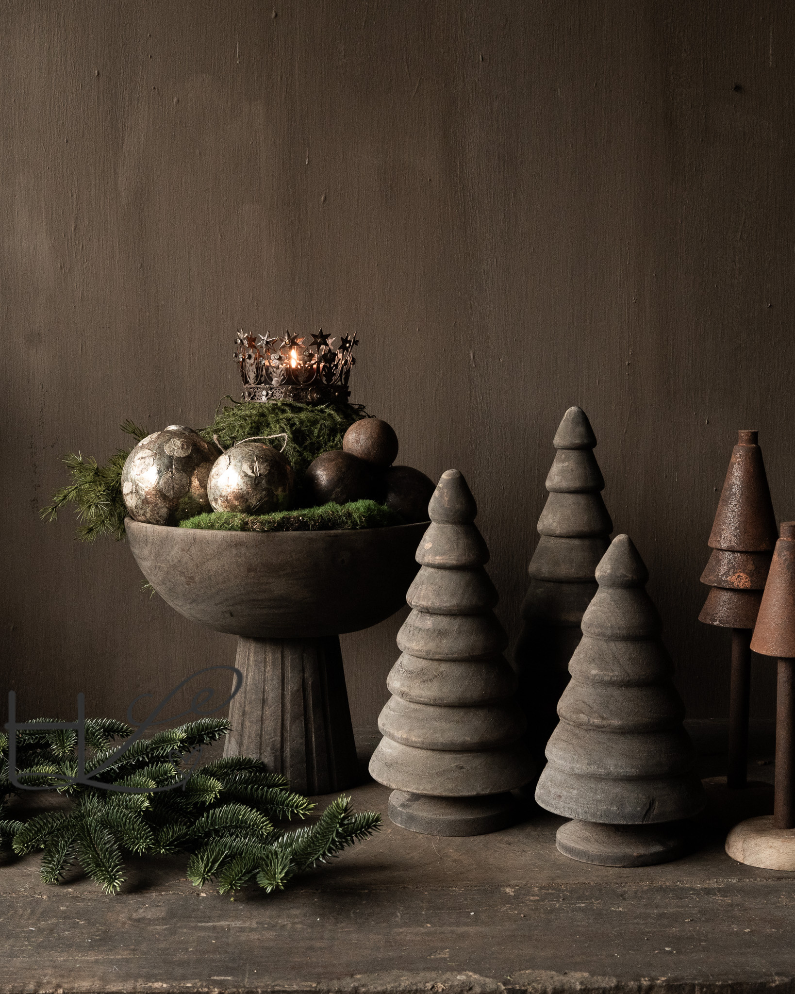 Mooi op een dressoir, vensterbank of in een stilleven met dennetakken en kaarslicht. Elk boompje is uniek door de natuurlijke houtstructuur en handafwerking.
