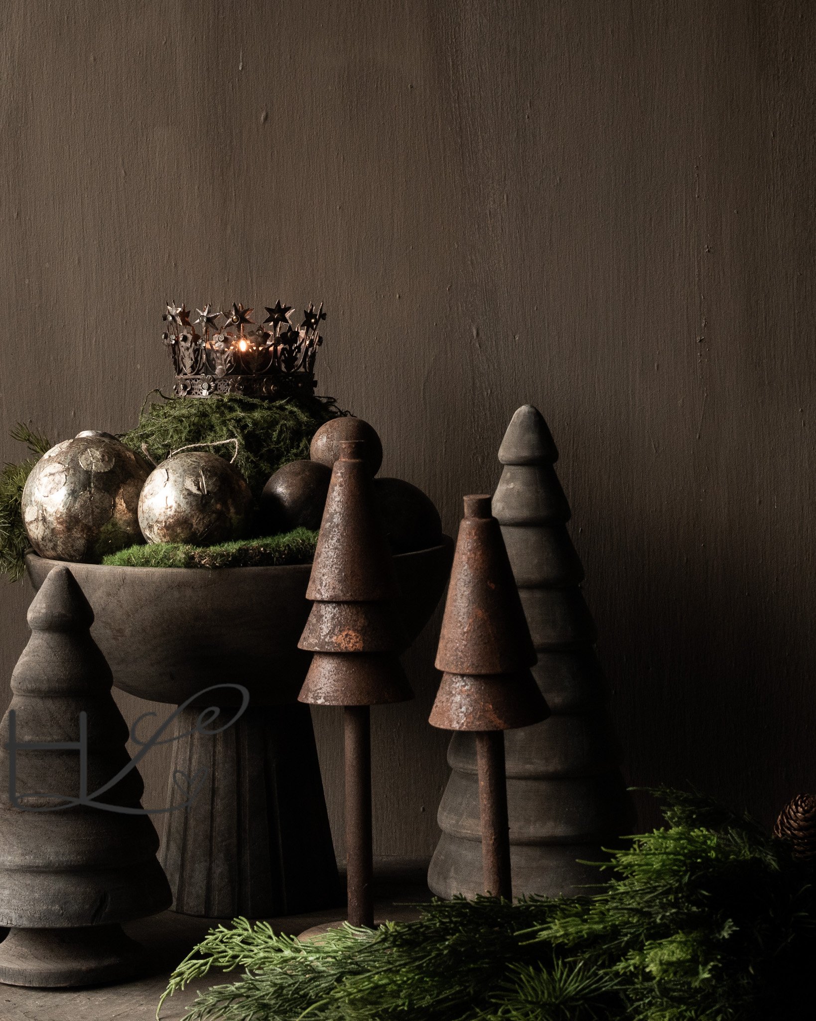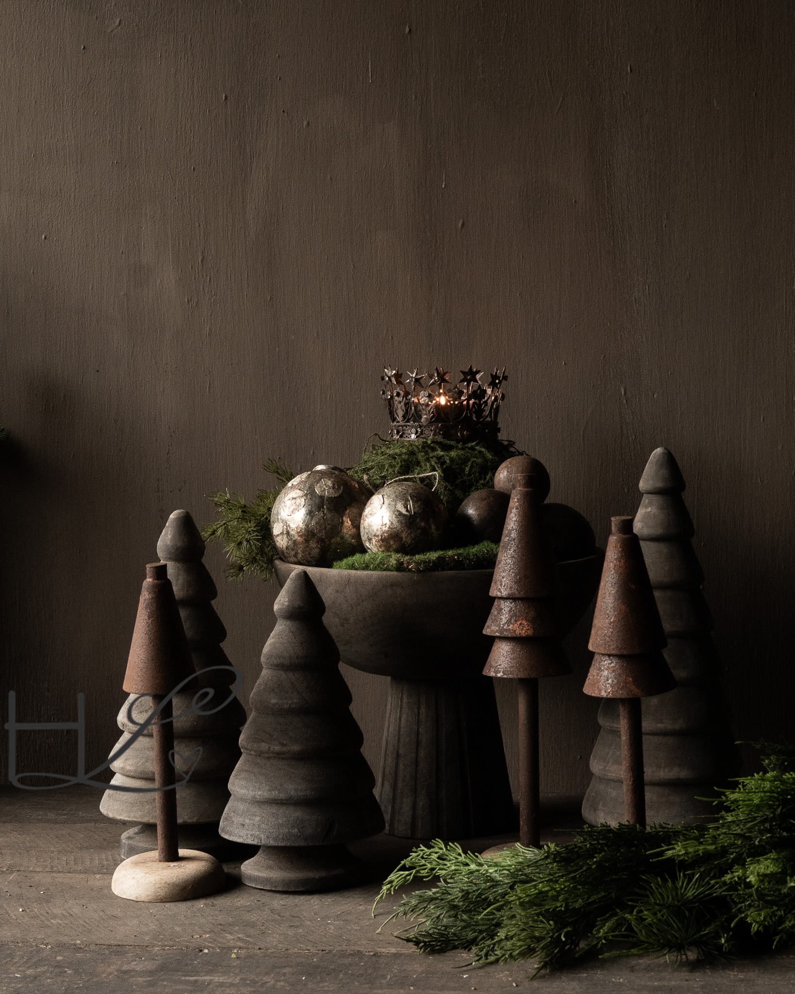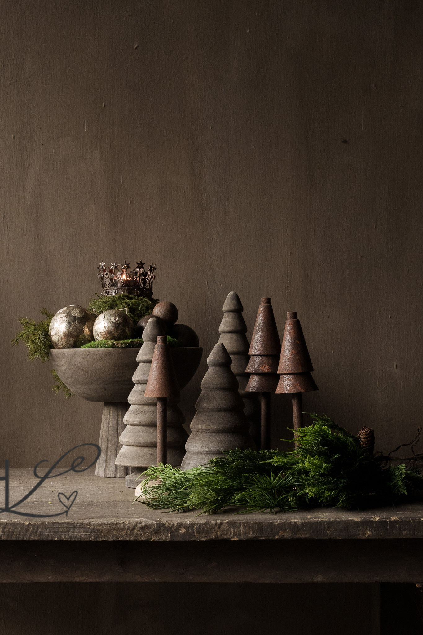 Deze stoere, sobere houten boompjes van Luksa zijn met de hand vervaardigd en hebben een prachtige natuurlijke uitstraling. De matte, donkere finish en gelaagde vorm geven ze een tijdloos karakter – perfect om te combineren met met de roest boompjes .