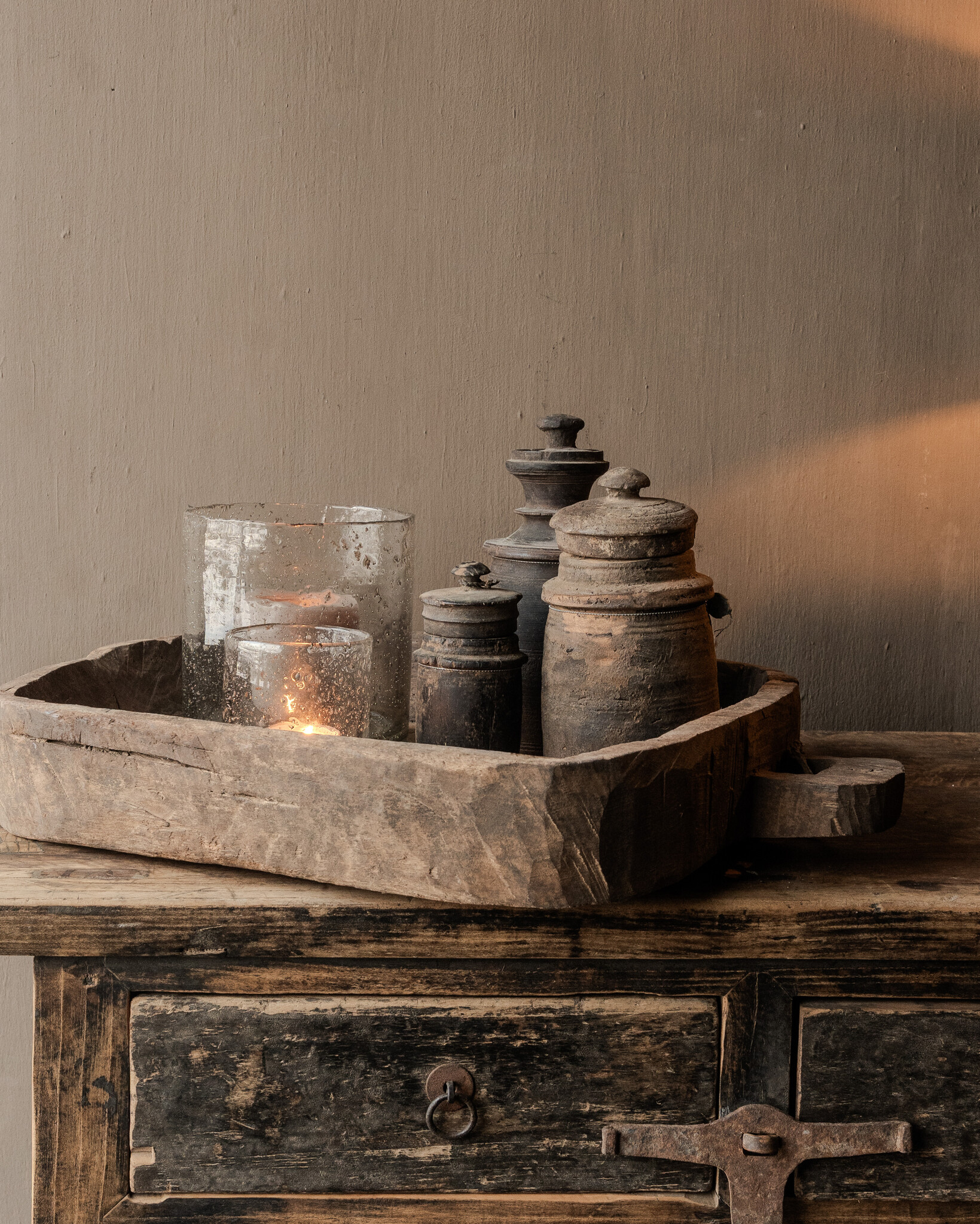 Deze houten bak is veelzijdig te gebruiken. Mooi als dienblad op tafel, als decoratieve trog met windlichten, mos of natuurlijke decoratie, of als sfeervolle opberger op een sidetable, keukeneiland of dressoir. Ook zonder decoratie is dit een krachtig object dat rust en warmte uitstraalt.