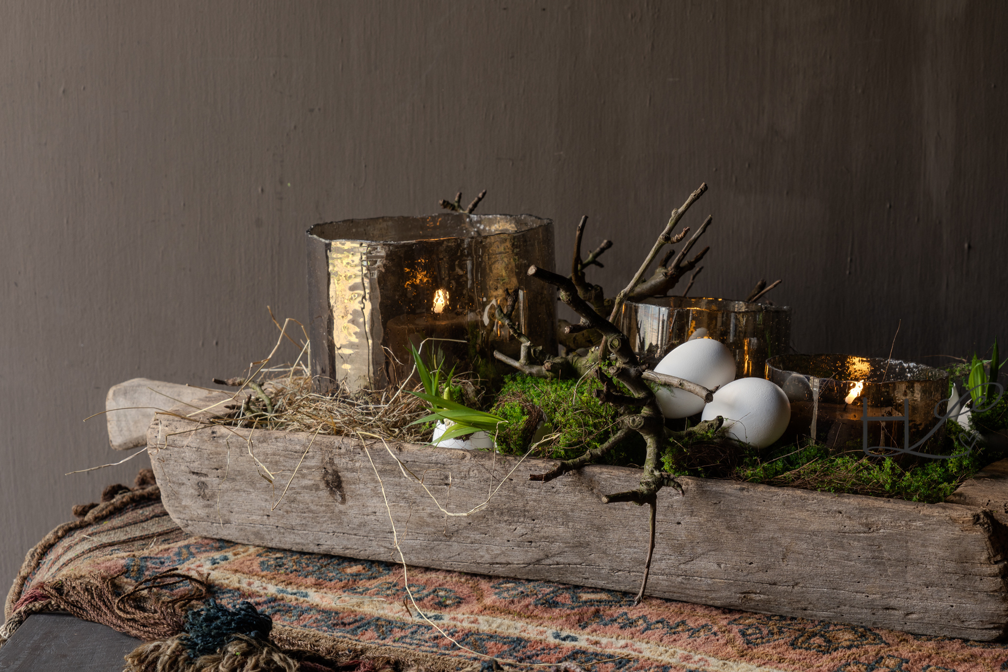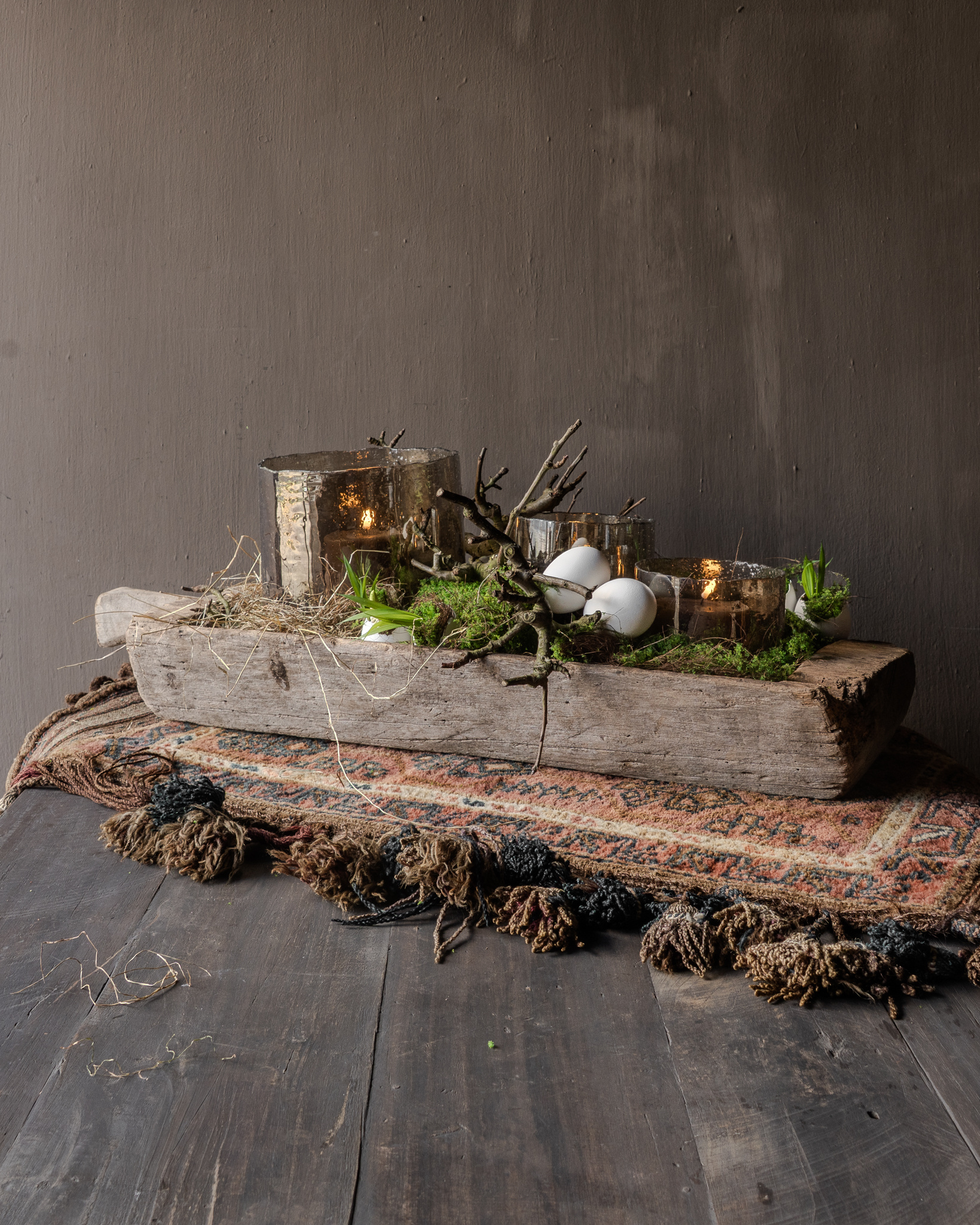 Combineer deze houten trog met glazen windlichten, kaarsen, mosballen of sobere accessoires voor een warme en natuurlijke uitstraling. Ook prachtig in elk seizoen, van herfst tot kerst en ver daarna.