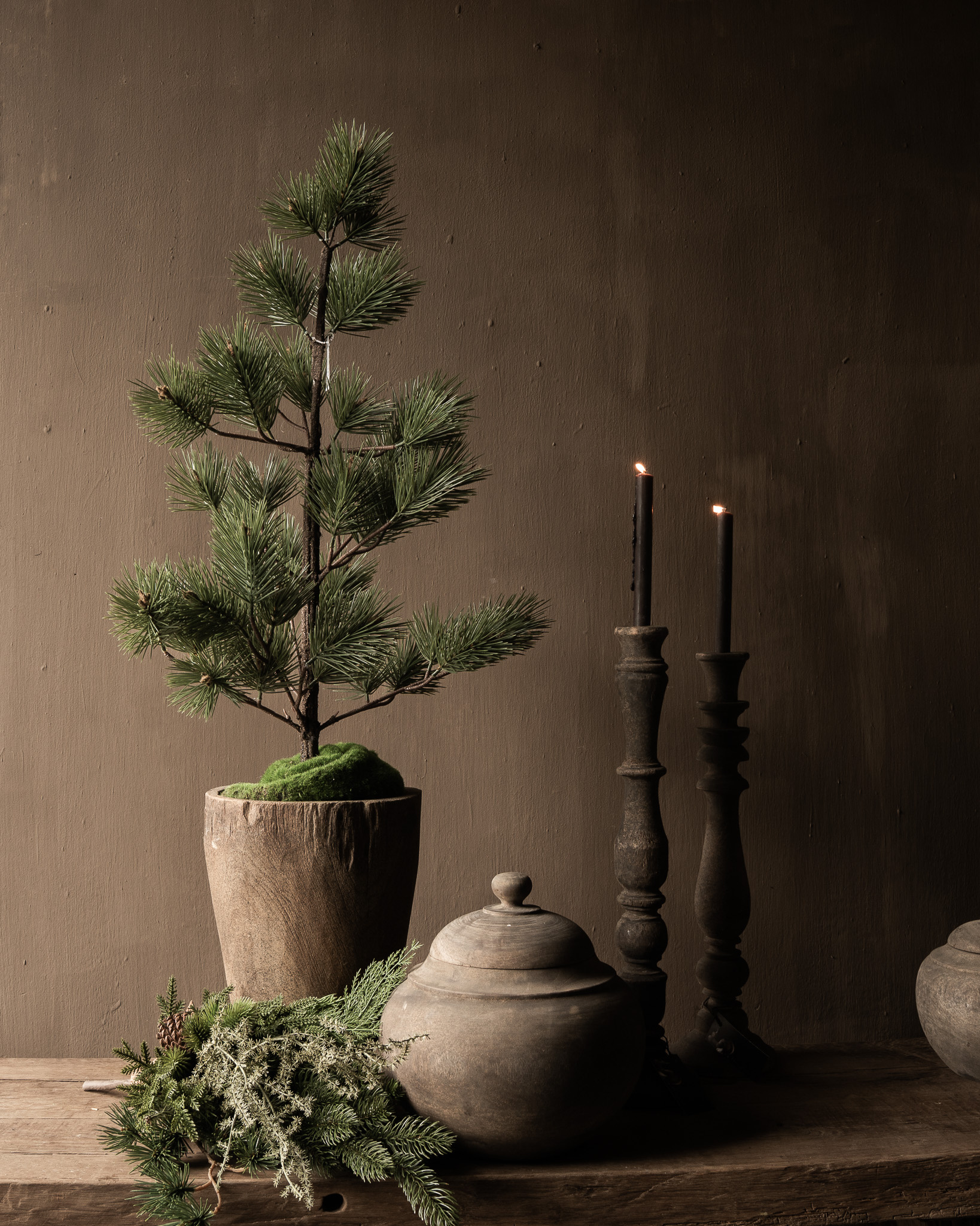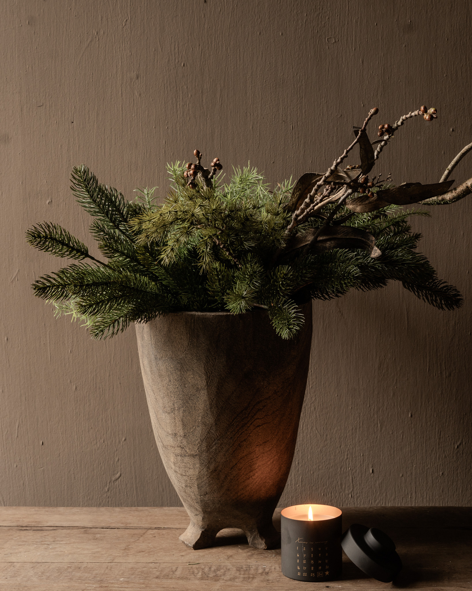 De onregelmatige vorm, zichtbare houtstructuur en kleine imperfecties maken elke pot uniek. Mooi om puur te tonen of gevuld met groen, takken of droogbloemen.