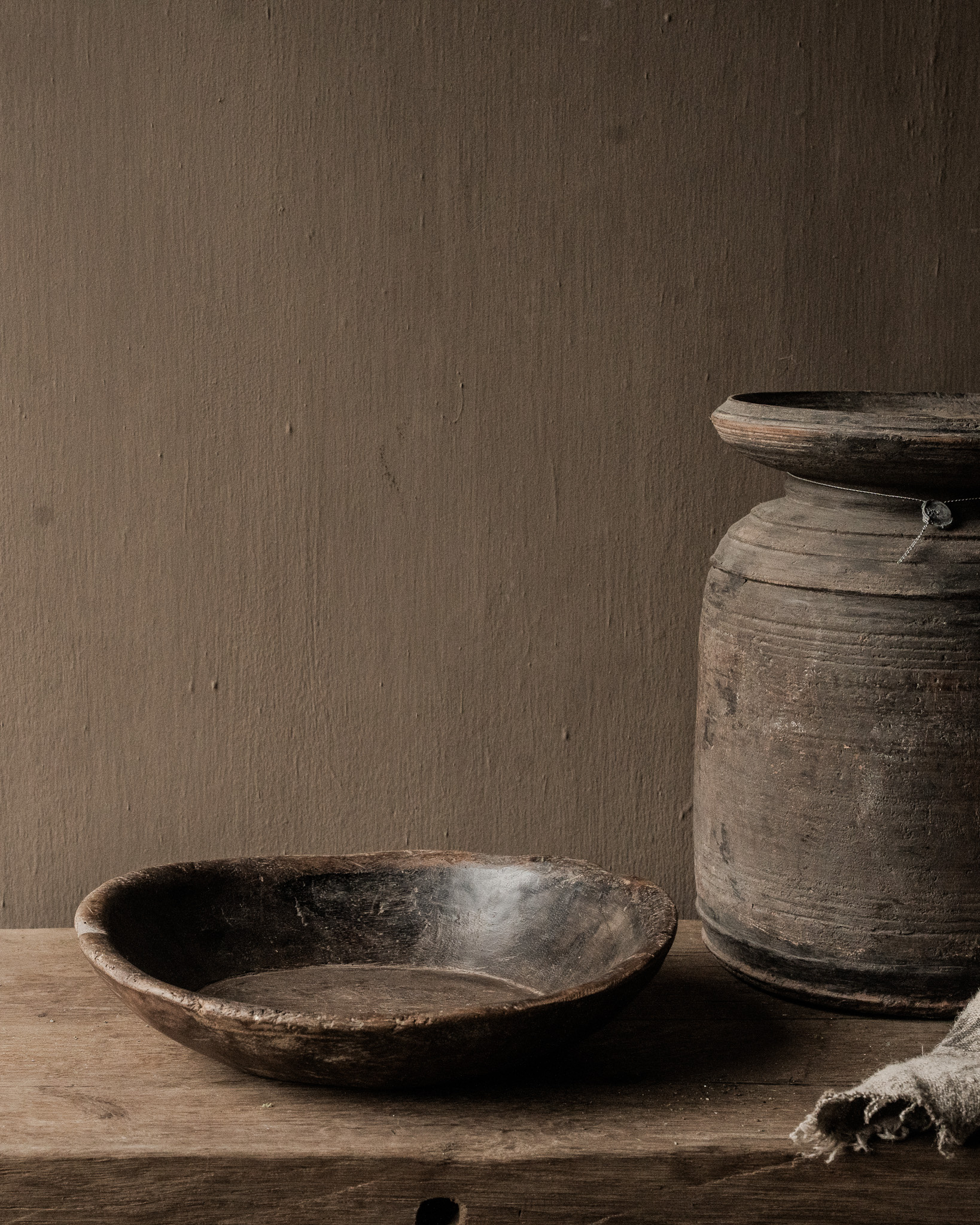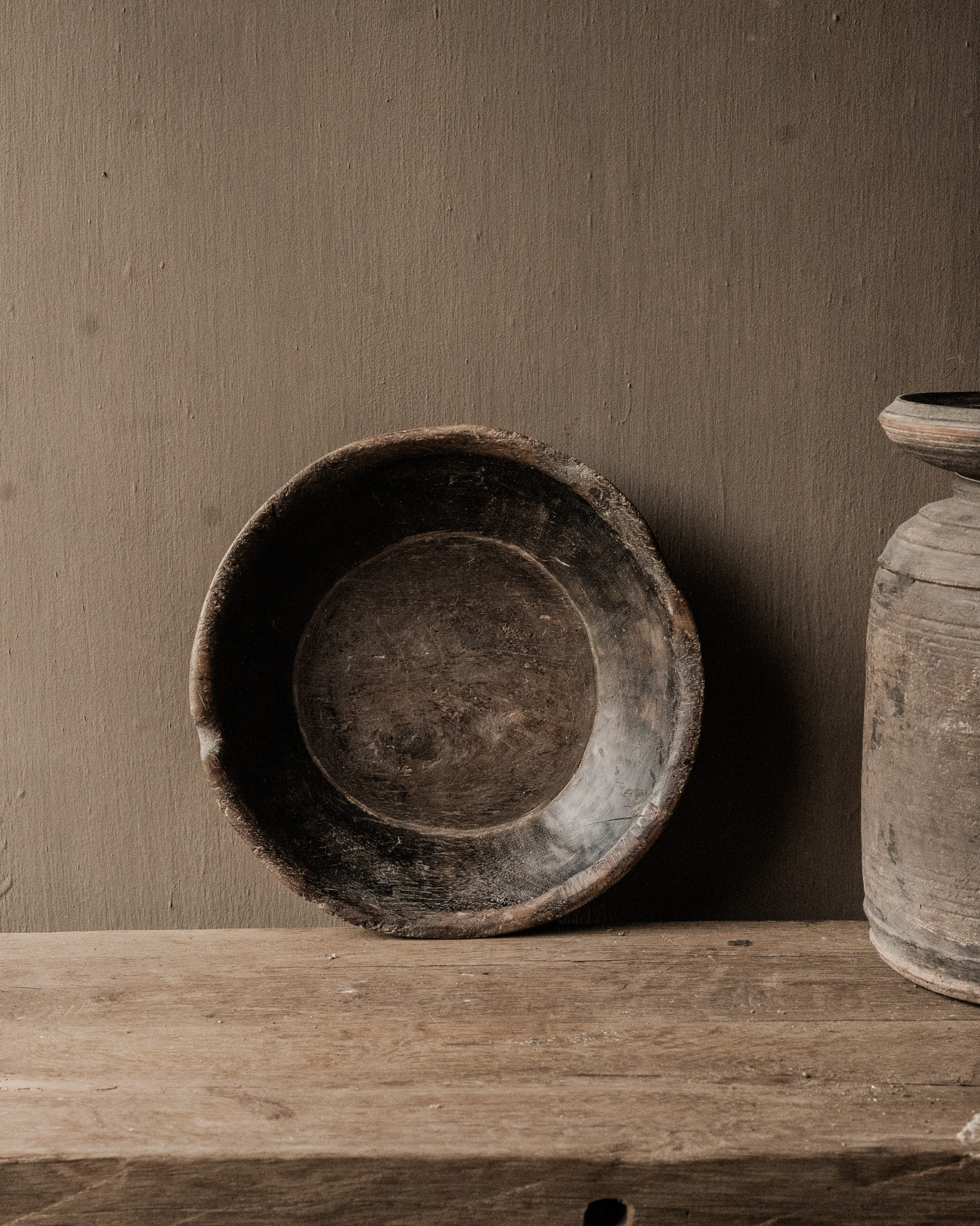Een prachtig, doorleefd houten schaaltje met een pure en eenvoudige uitstraling — perfect passend binnen de Wabi Sabi-stijl. Elk exemplaar is uniek, met natuurlijke nerven, oneffenheden en sporen van gebruik die juist zijn charme bepalen.