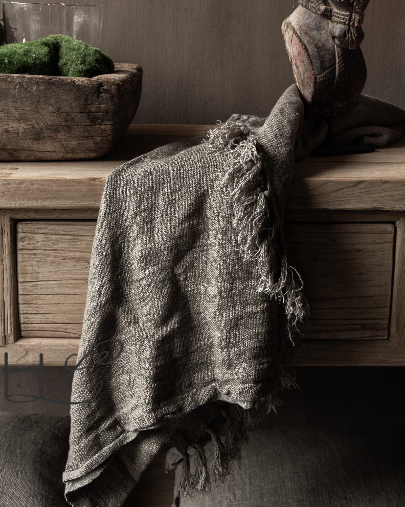 De plaids en kussens zijn vervaardigd van 100% gewassen linnen – een natuurlijk materiaal dat door gebruik alleen maar mooier en karaktervoller wordt.