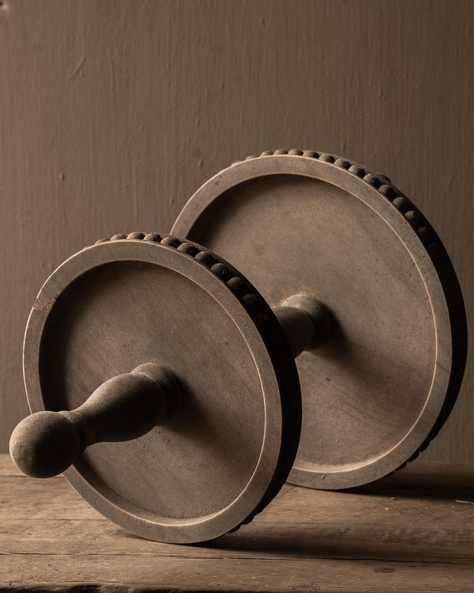 Een stoere houten etagère met een doorleefde uitstraling en verfijnde details. De robuuste vorm en de subtiele bolrand geven dit stuk een authentieke charme, alsof het al generaties lang onderdeel is van een sfeervol interieur.