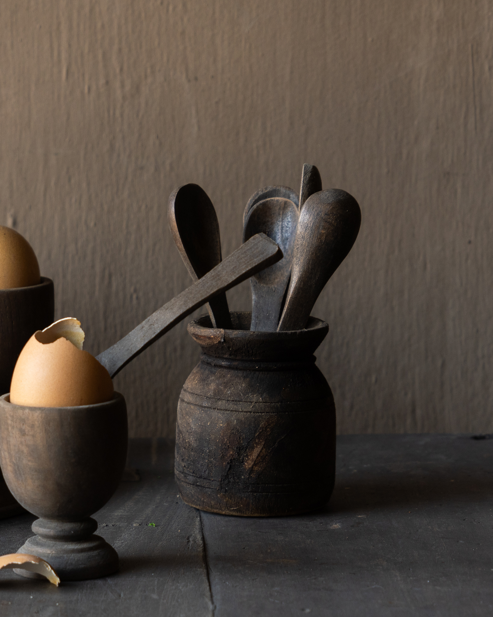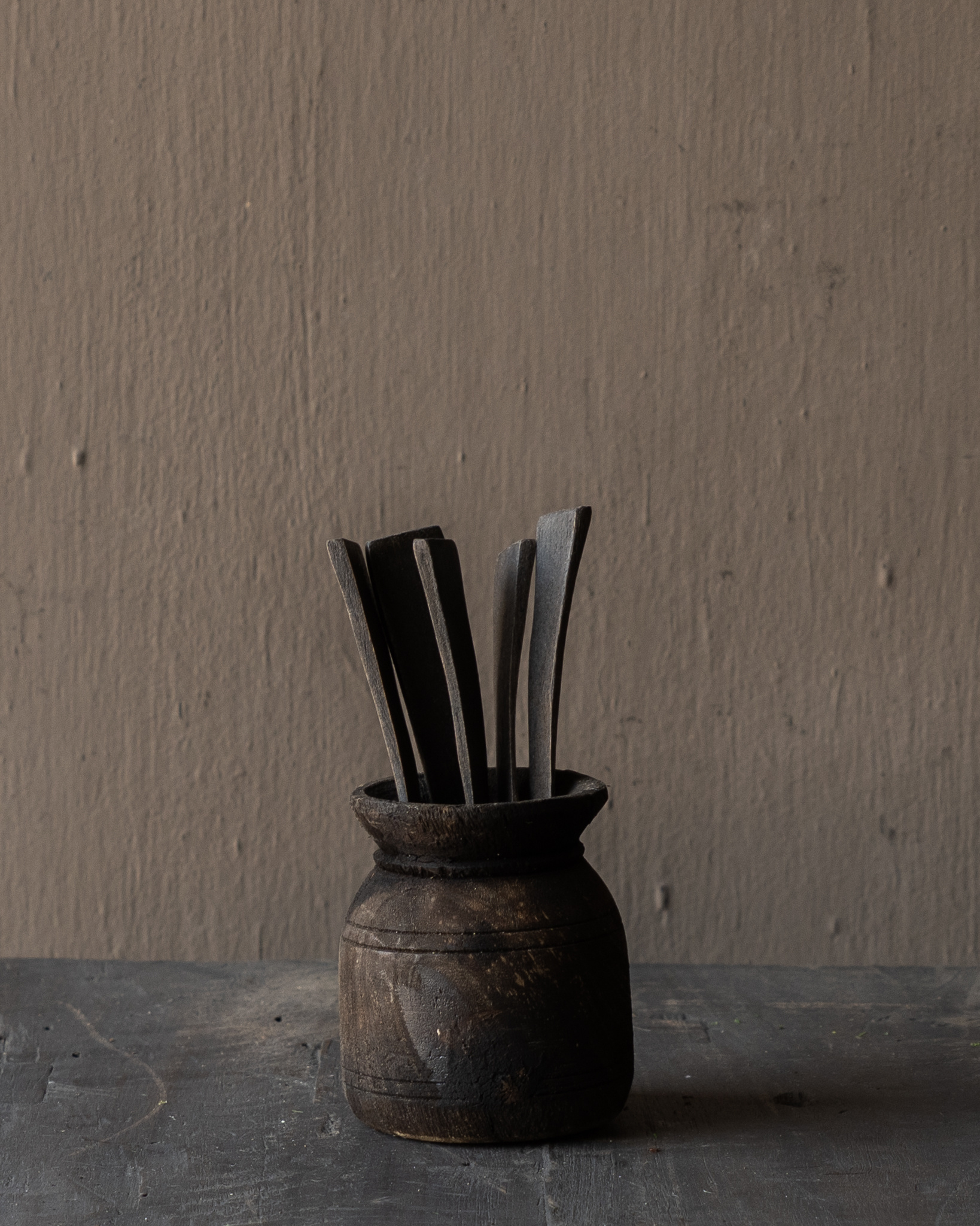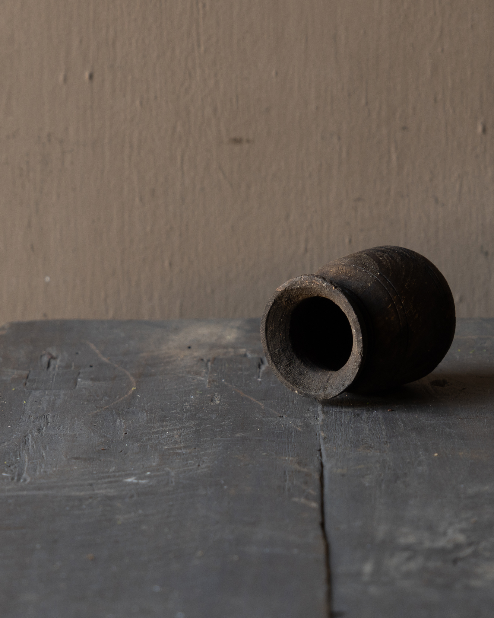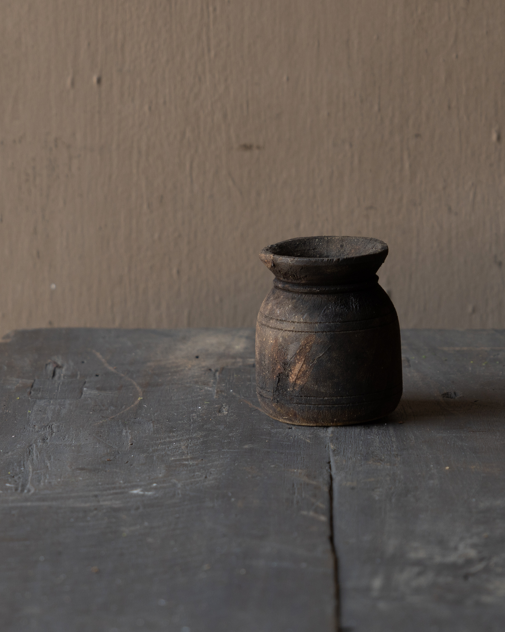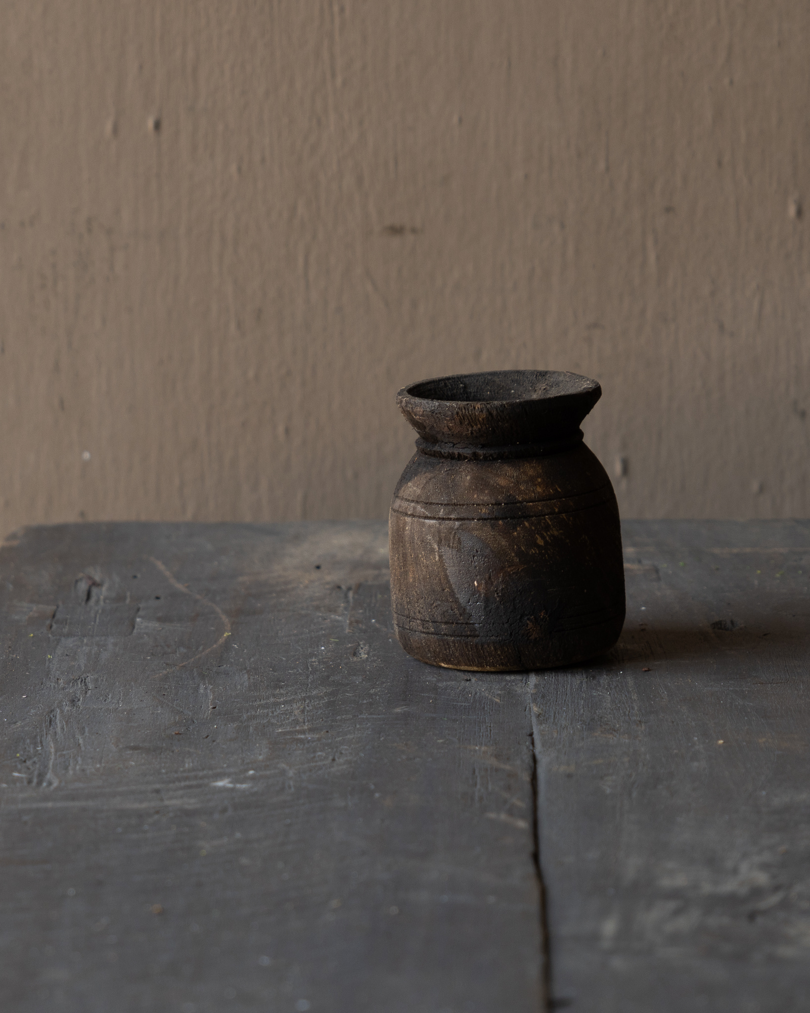 Doorleefd en puur. Dit kleine Nepalese potje is met de hand vervaardigd uit massief hout en draagt de sporen van zijn verleden zichtbaar met zich mee. De donkere patina, subtiele scheurtjes en oneffenheden maken elk exemplaar uniek.