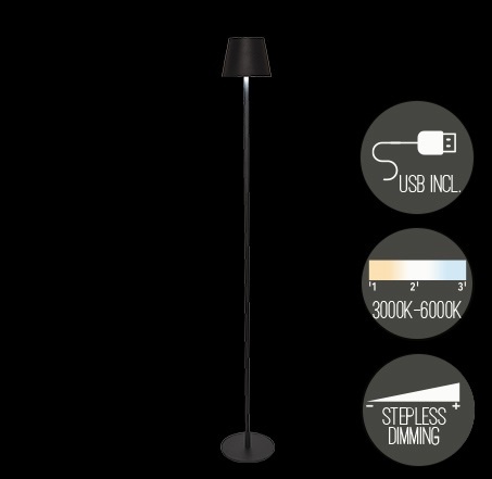 Oplaadbare vloerlamp 120cm hoog warm-wit in zwart of taupe