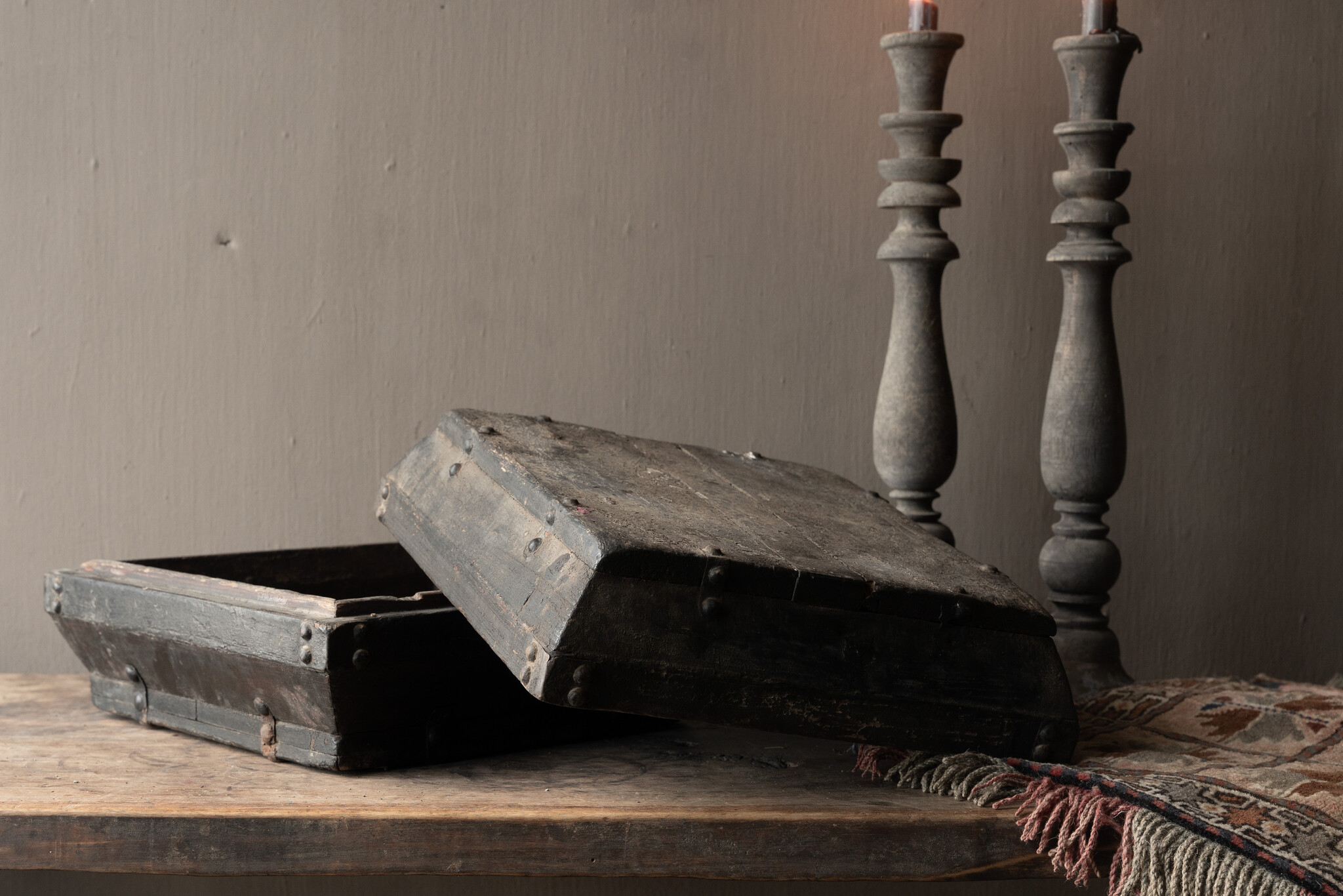 Gebruik de kist als stijlvol opbergobject, als sfeervol decorstuk op een dressoir of sidetable, of als blikvanger in een stoer stilleven. Elk item is uniek in vorm, kleur en patina — een stukje vakmanschap met een verhaal.