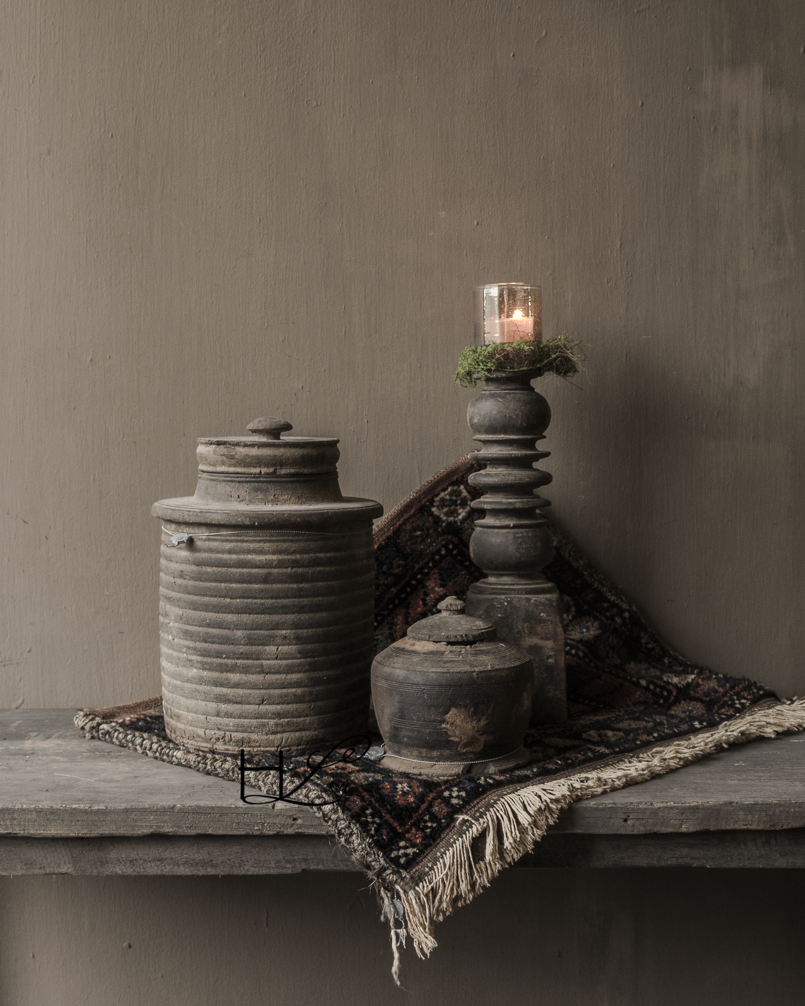 Mooi als puur object op een sobere tafel, in een open kast of gecombineerd met ander oud hout en aardewerk voor een warme, tijdloze sfeer.
