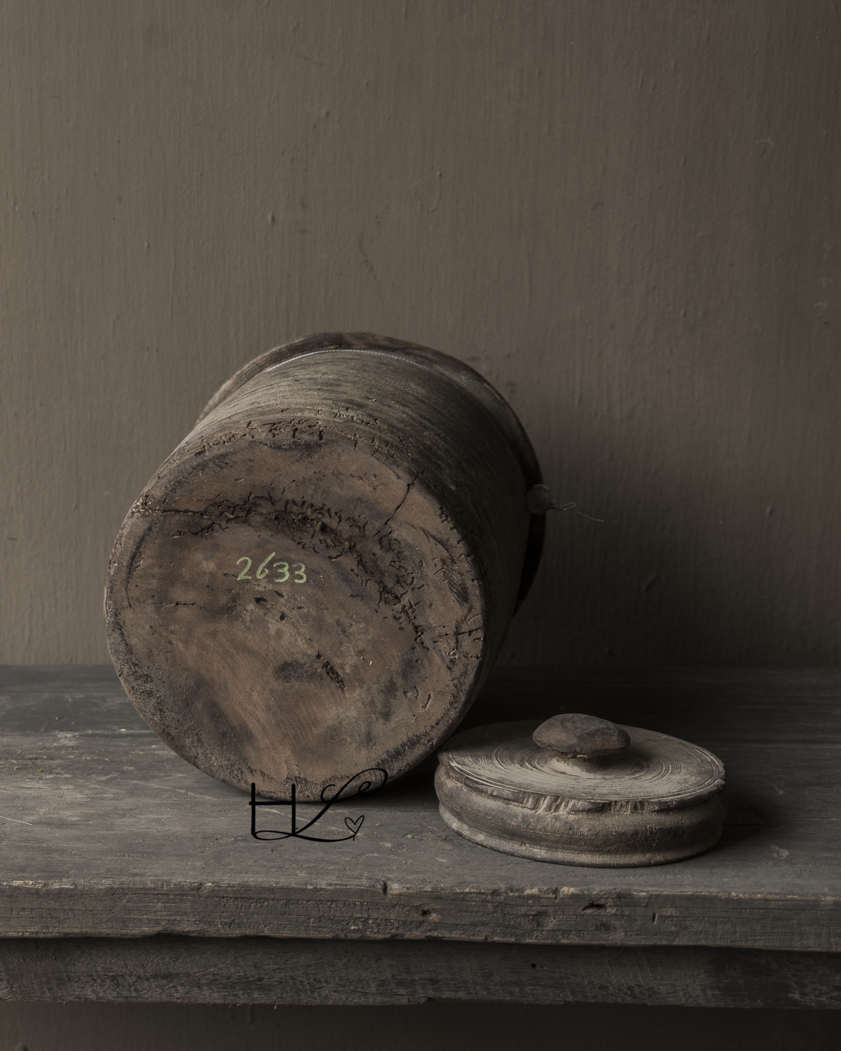 HOFFZ Originele Oude houten Nepalees Kruikje /Potje met deksel HOFFZ