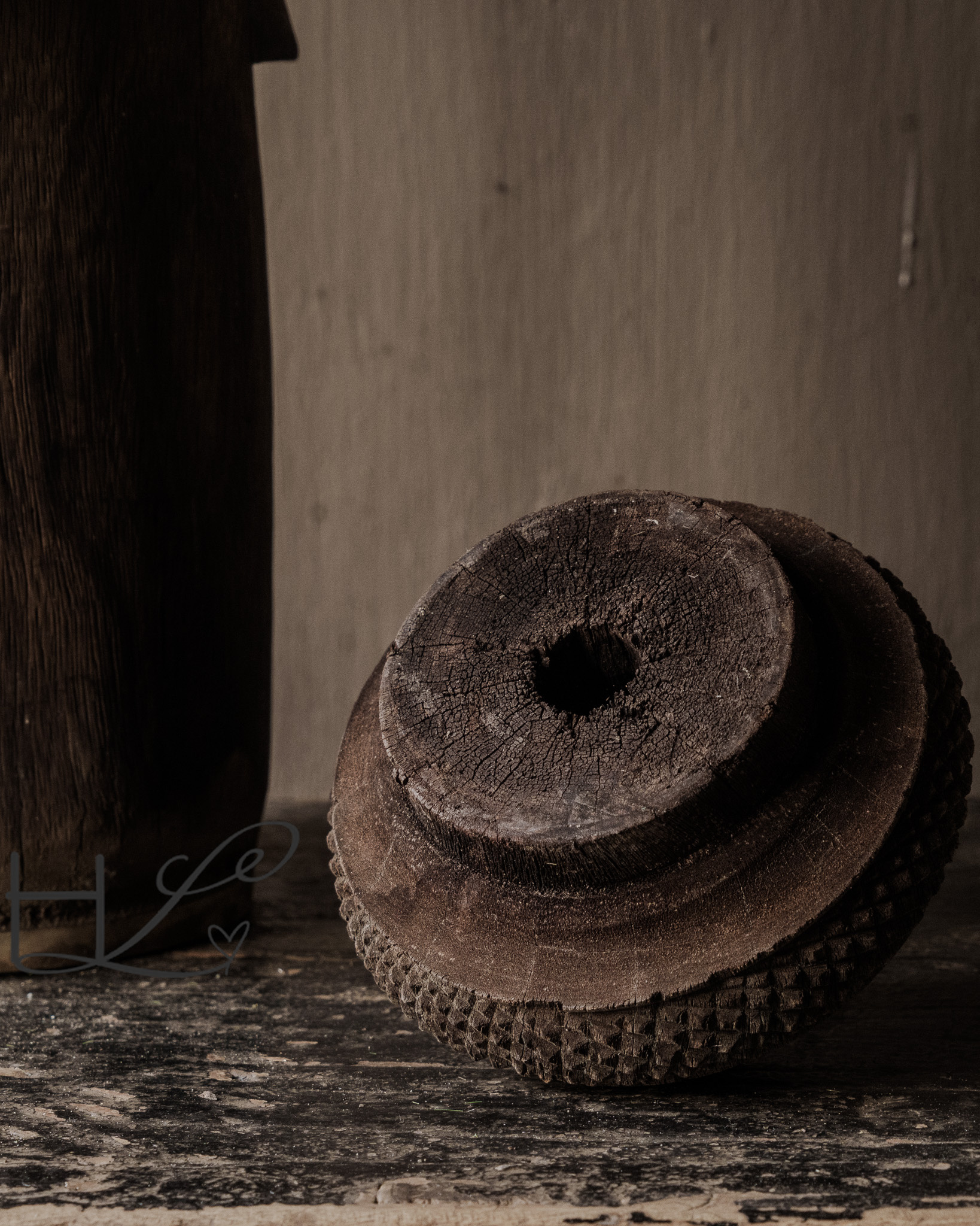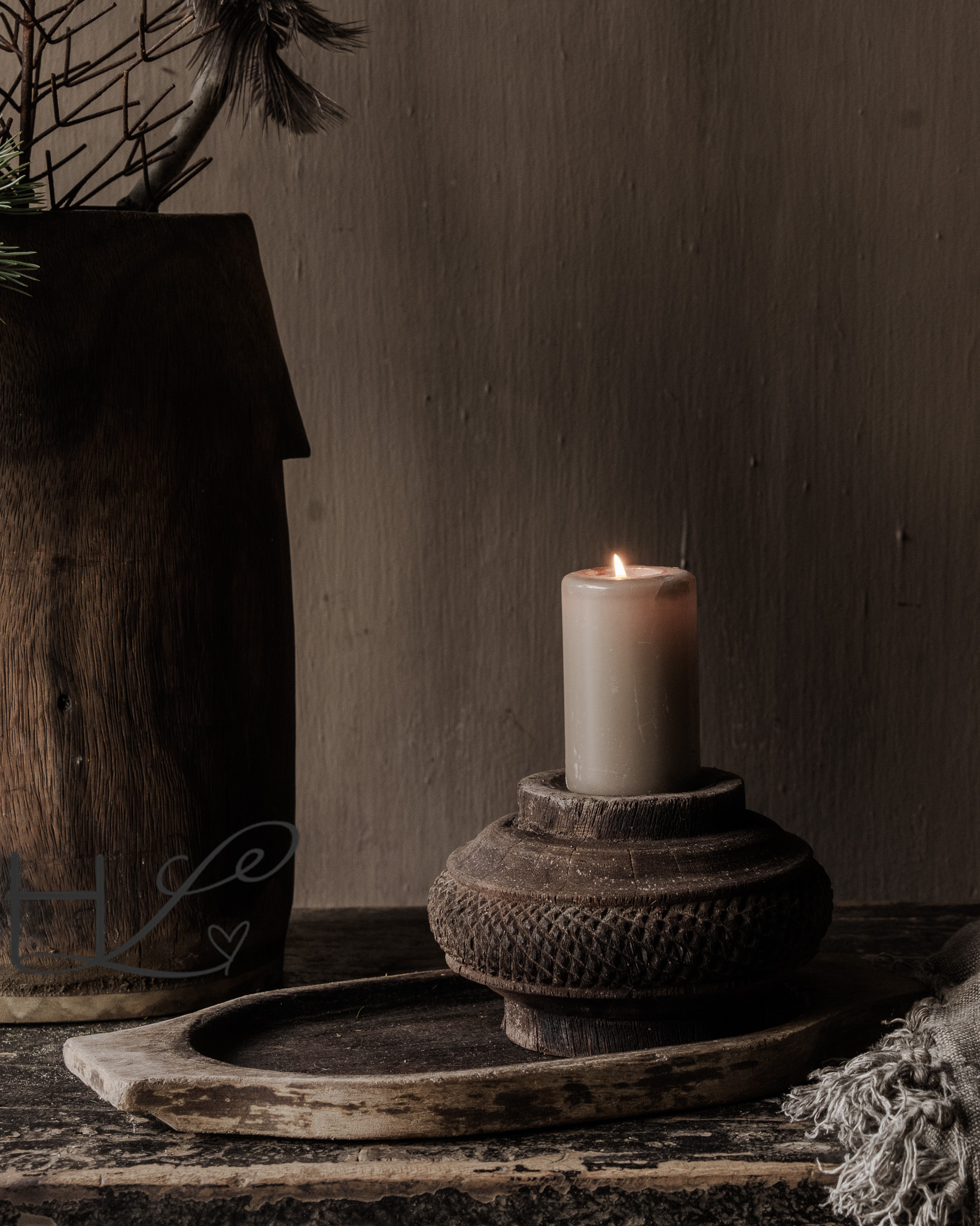 Signature Collectie Oude Authentieke Houten Poer – unieke sokkel kandelaar Authentiek & Uniek