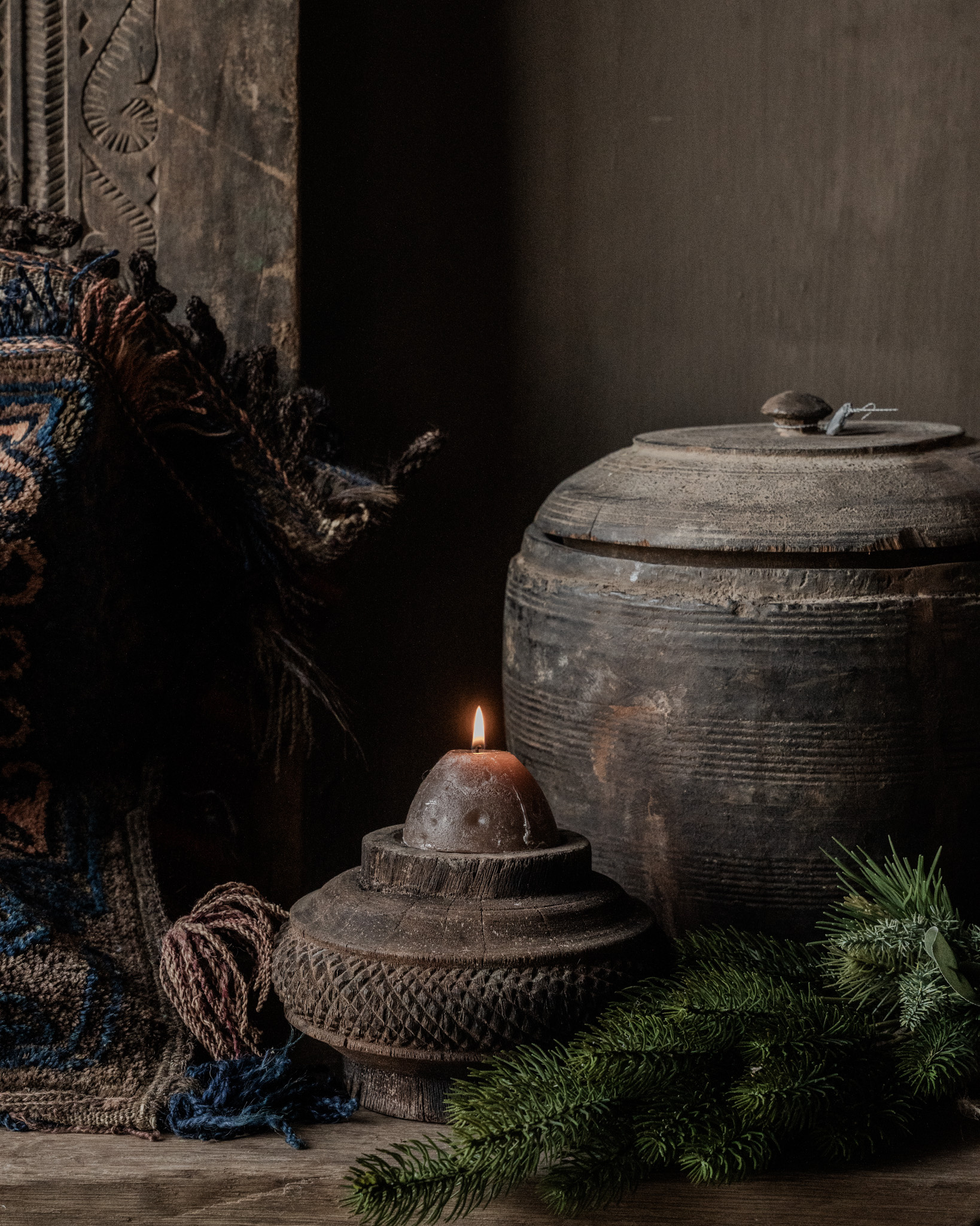Oude Houten Poer Kandelaar India – Authentiek & Uniek