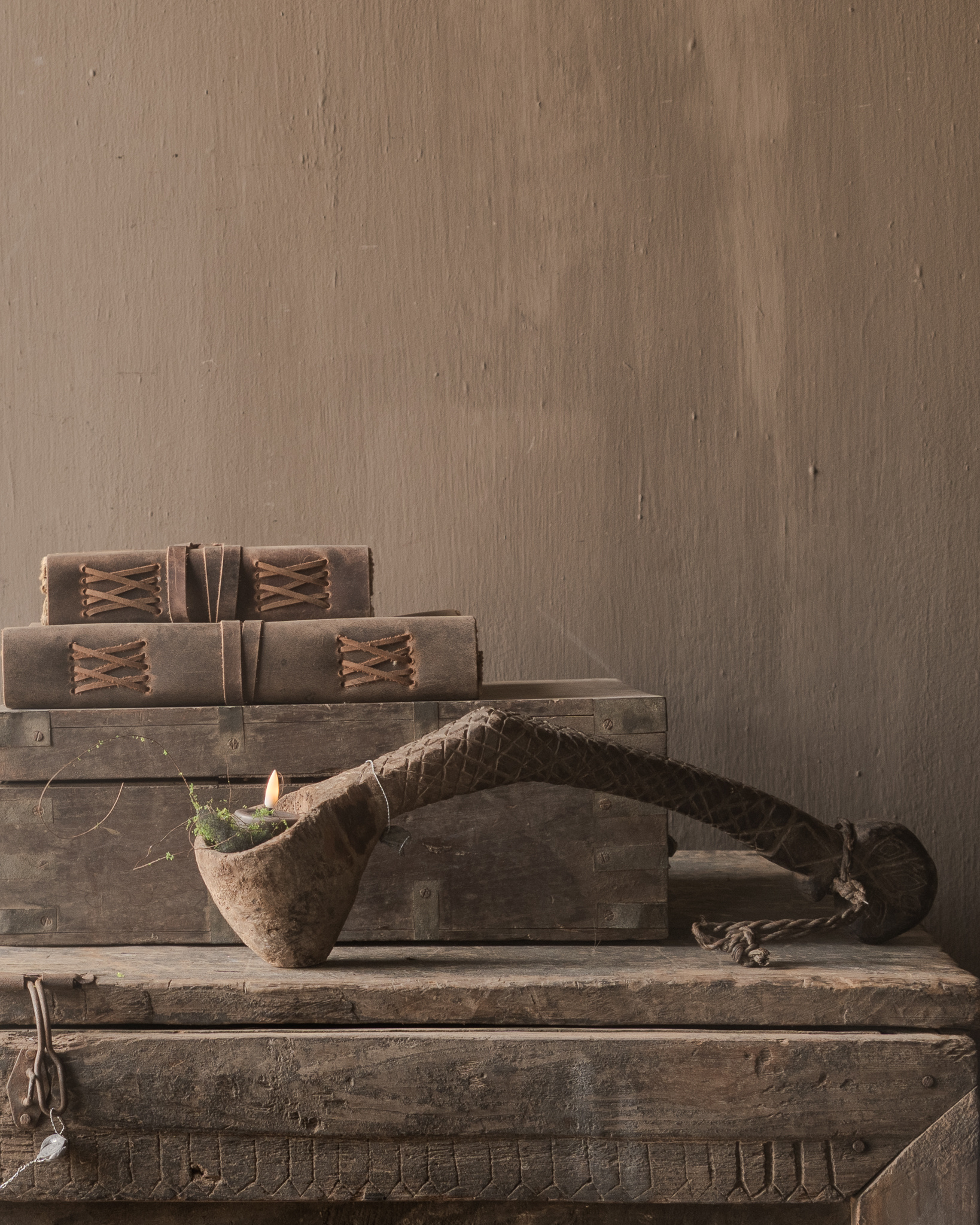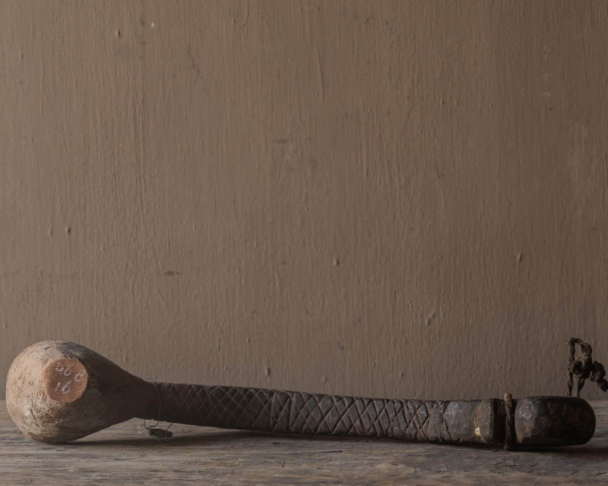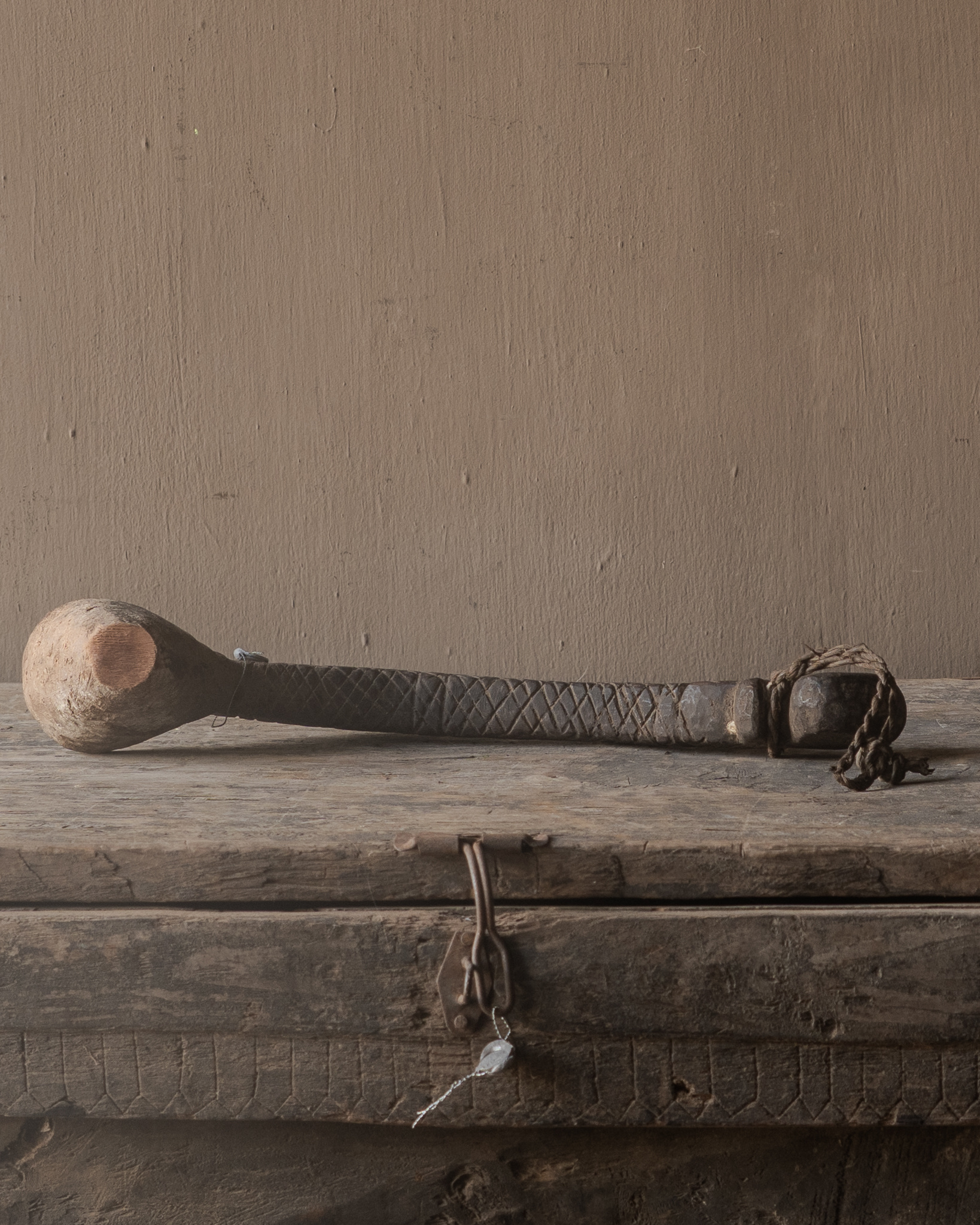 Deze bijzondere oude houten lepel is een puur stukje vakmanschap uit Nepal. Doorleefd, robuust en vol karakter. Geen perfecte lijnen, maar juist de schoonheid van het onvolmaakte – precies wat dit object zo uniek maakt.