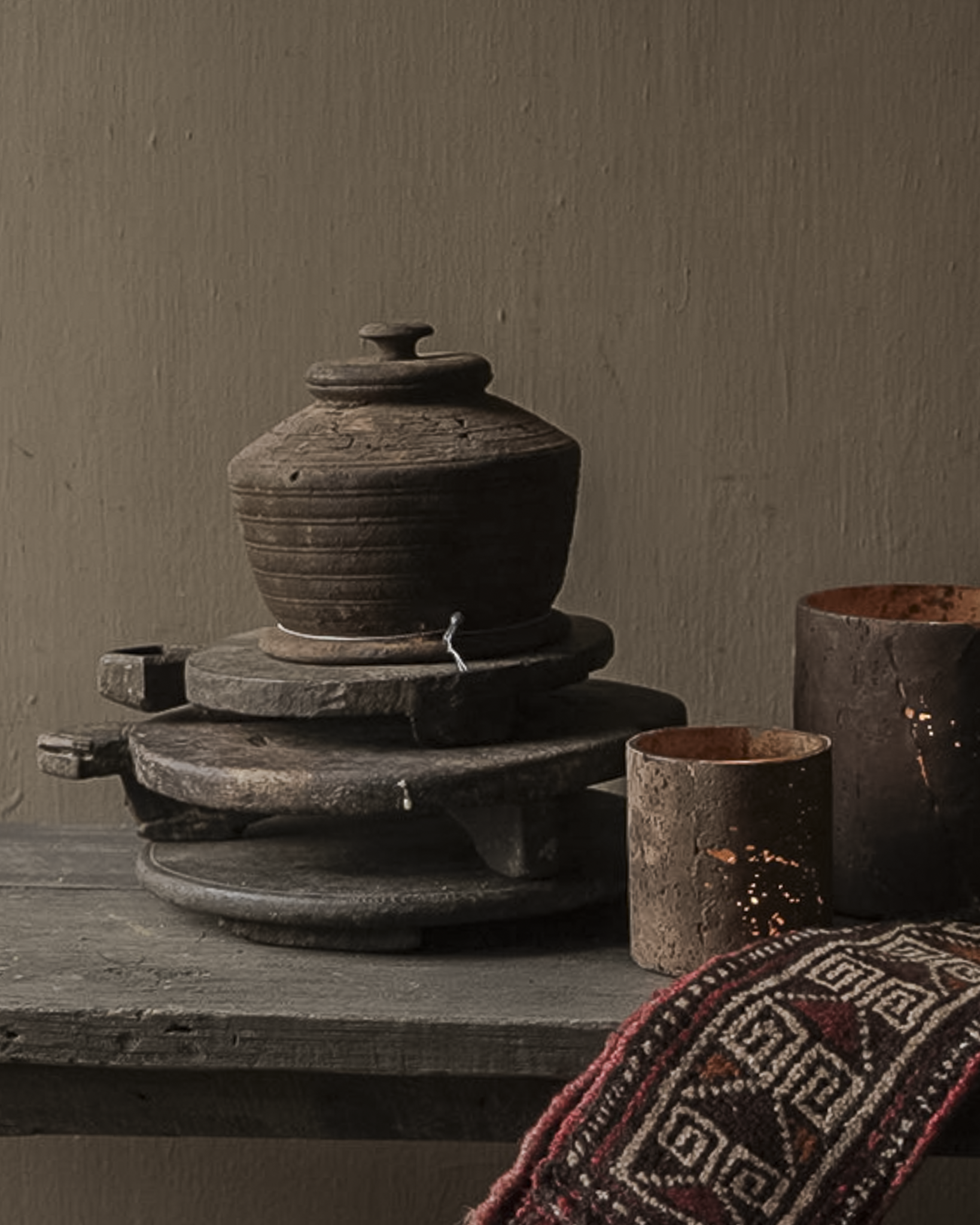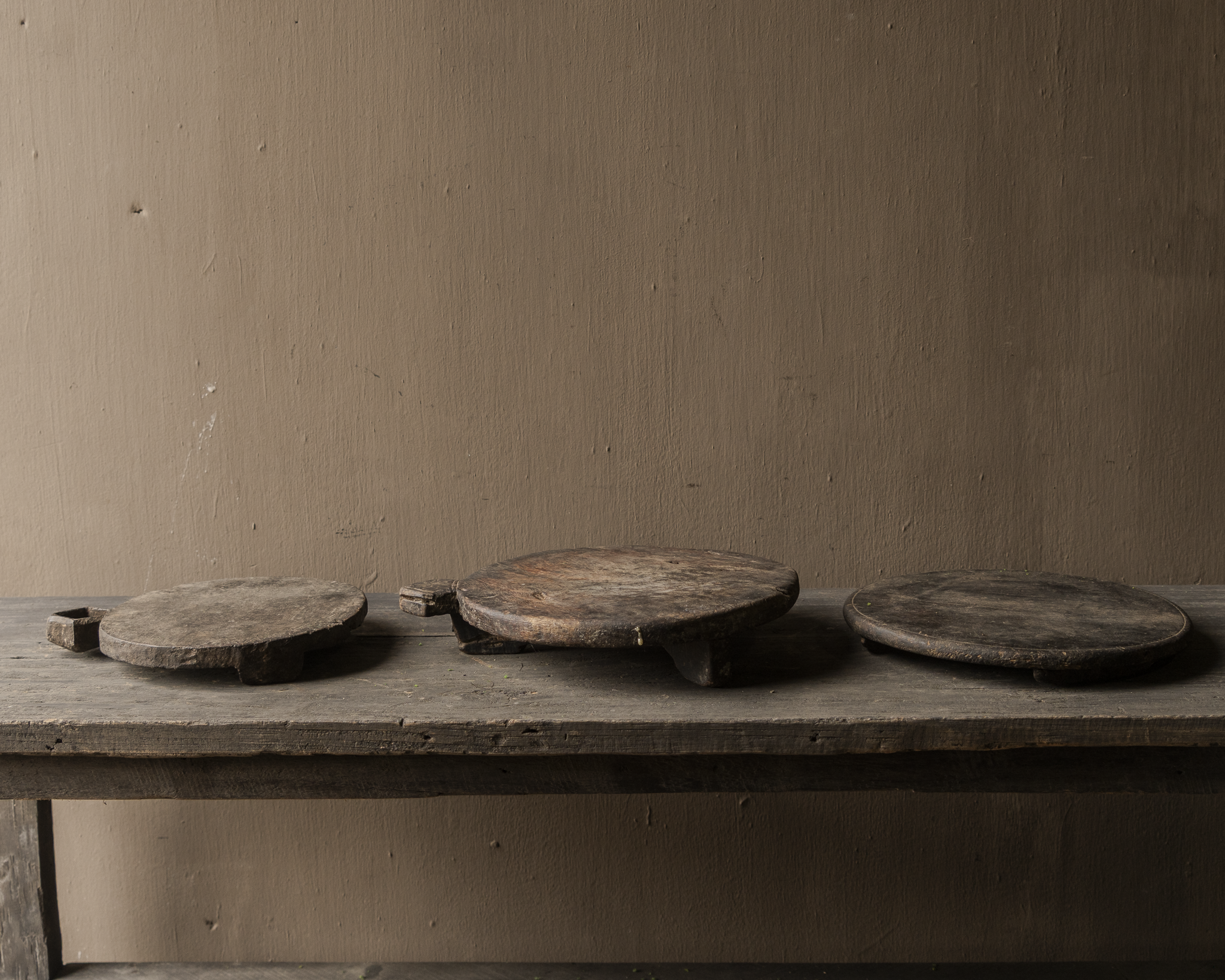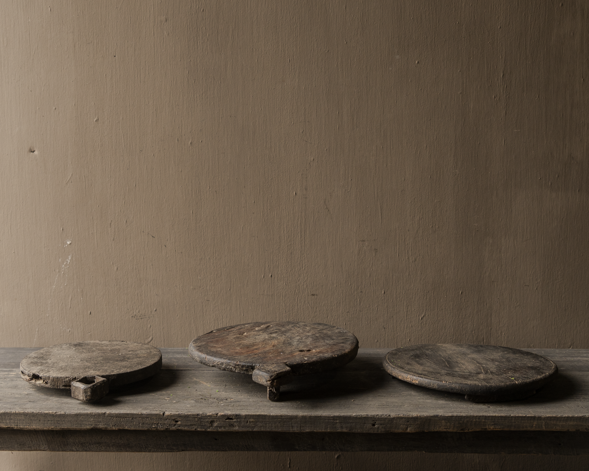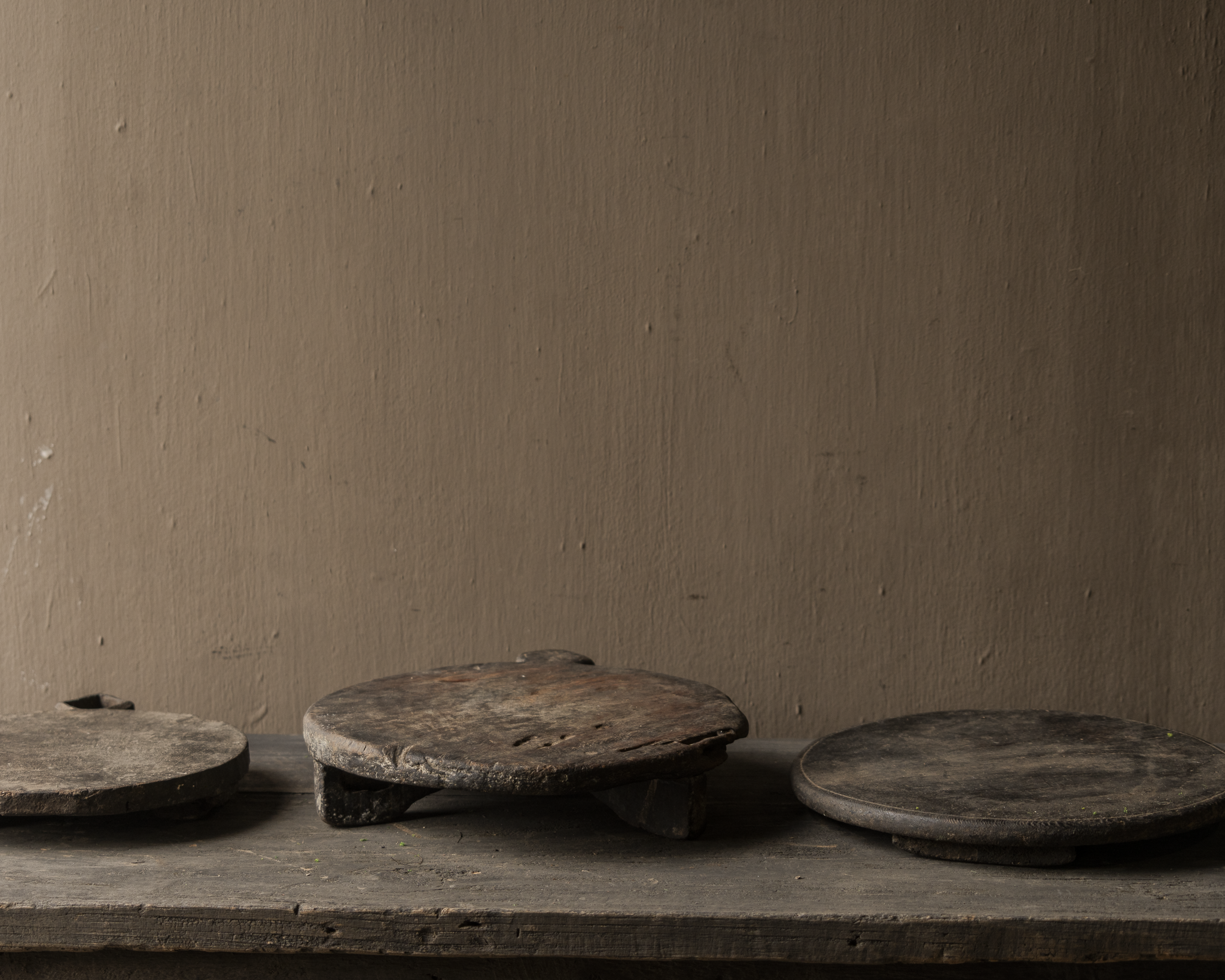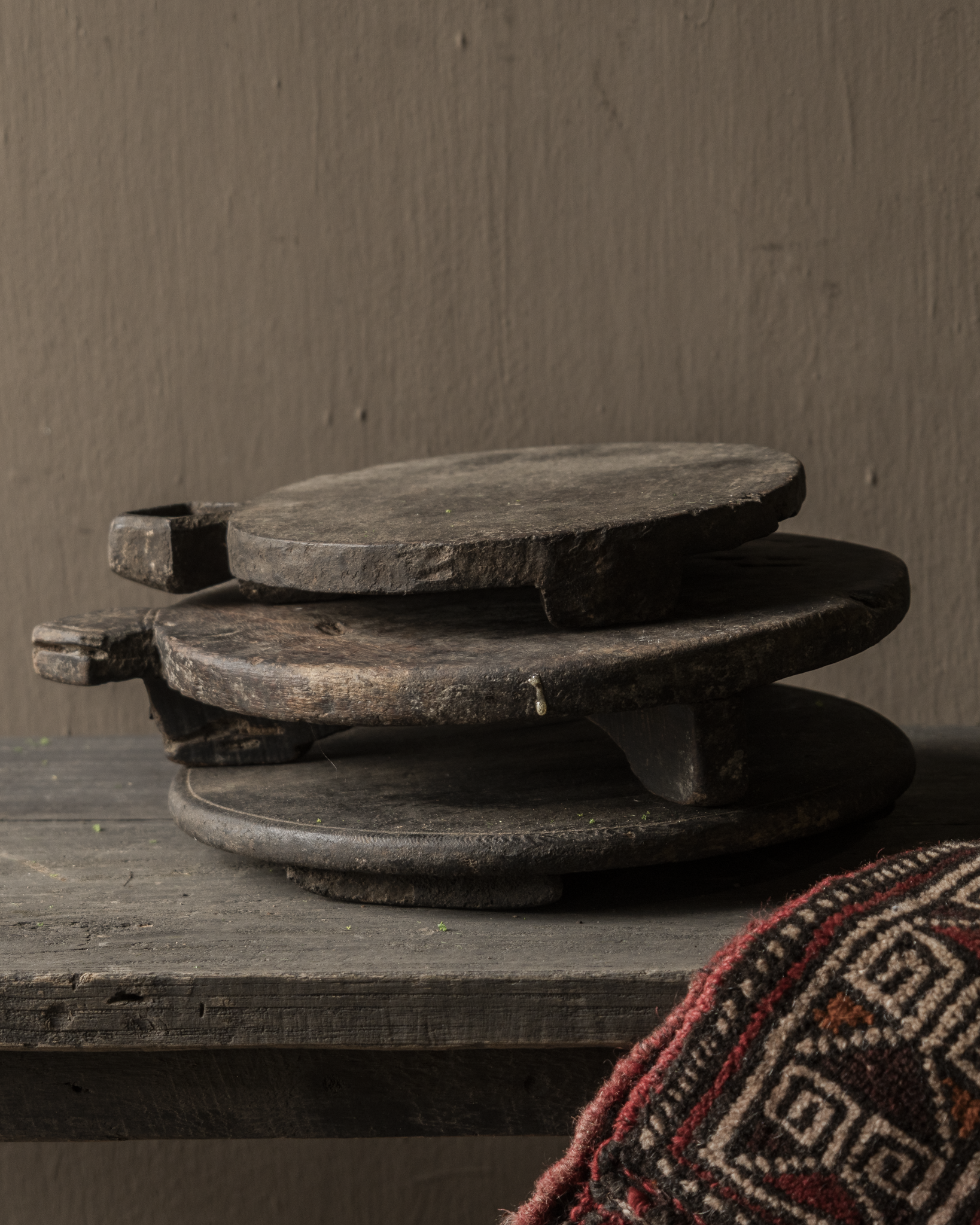 Oorspronkelijk werden ze gebruikt bij het bereiden van traditioneel platbrood, maar vandaag brengen ze een stukje geschiedenis en warmte in elk interieur. Gebruik ze als decoratief plateau, onderzetter voor aardewerk of glas, of gewoon als sober en puur object op tafel of kast.