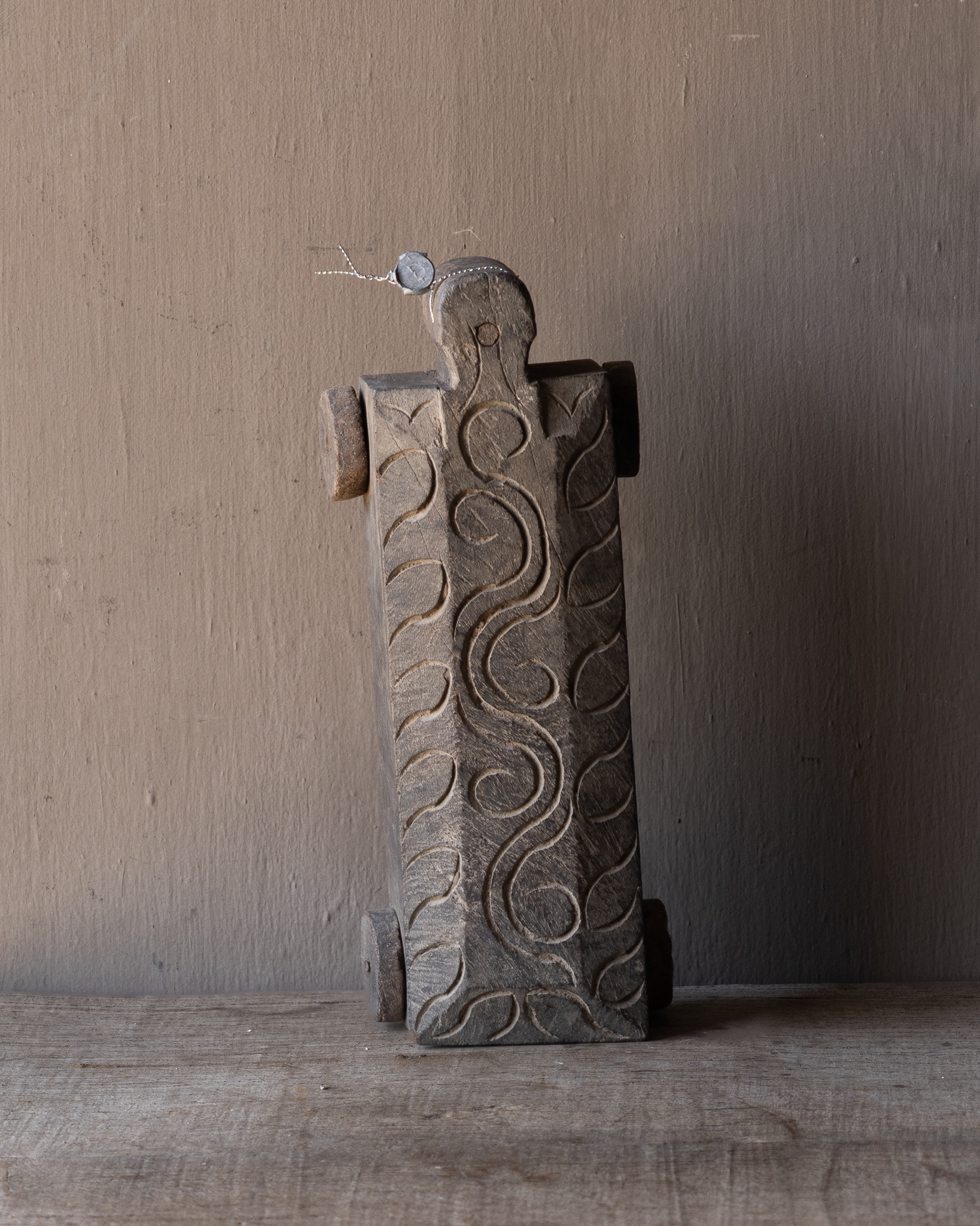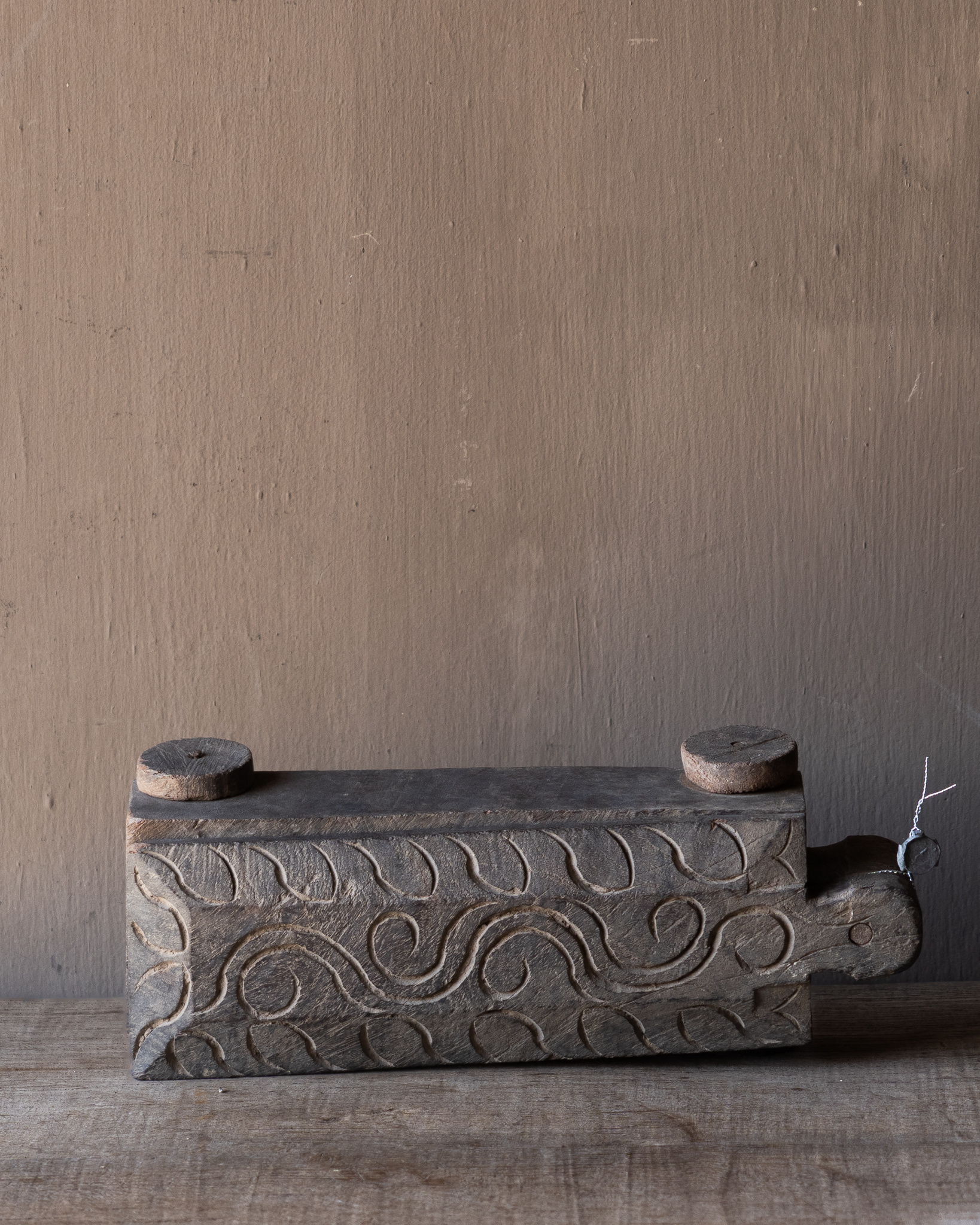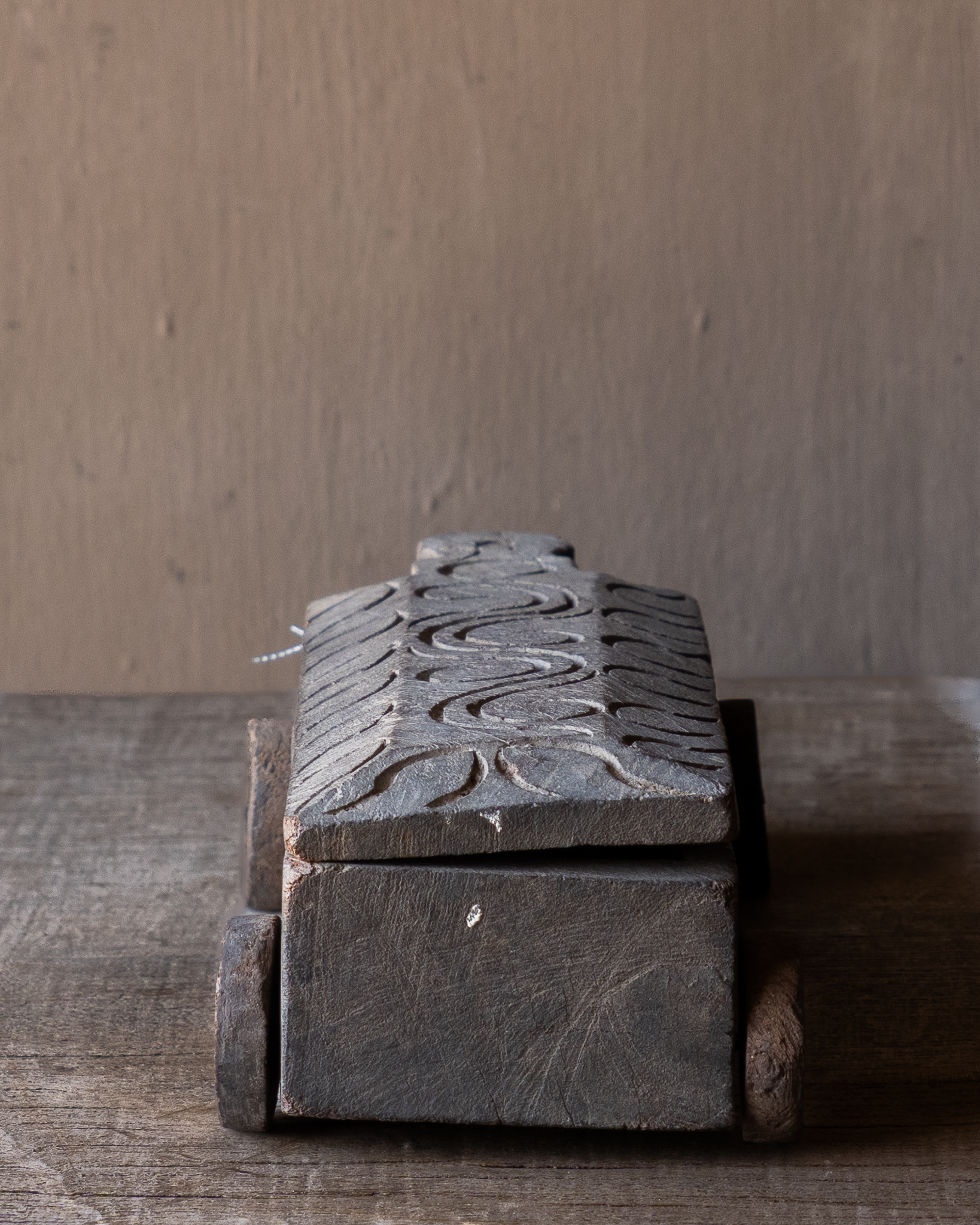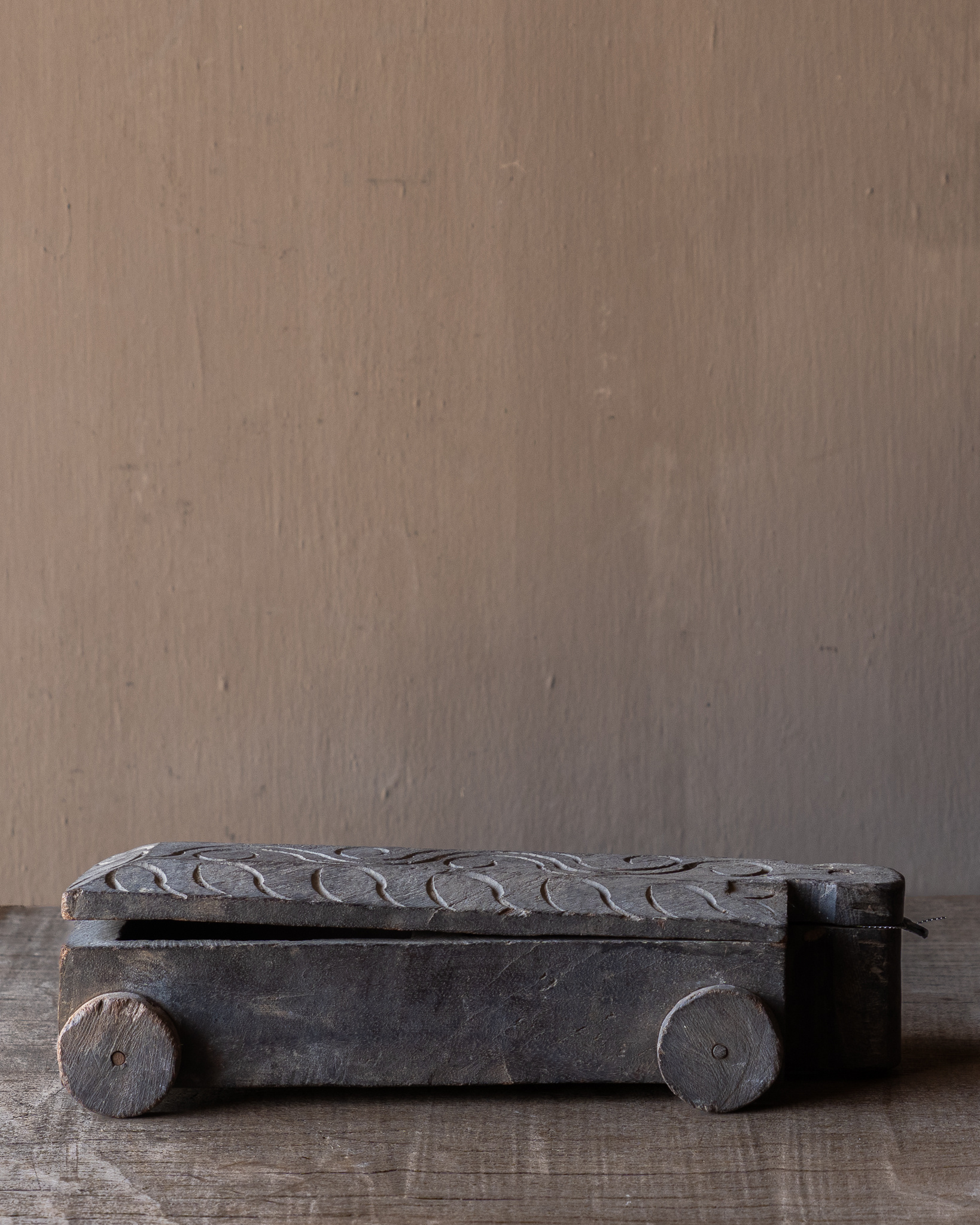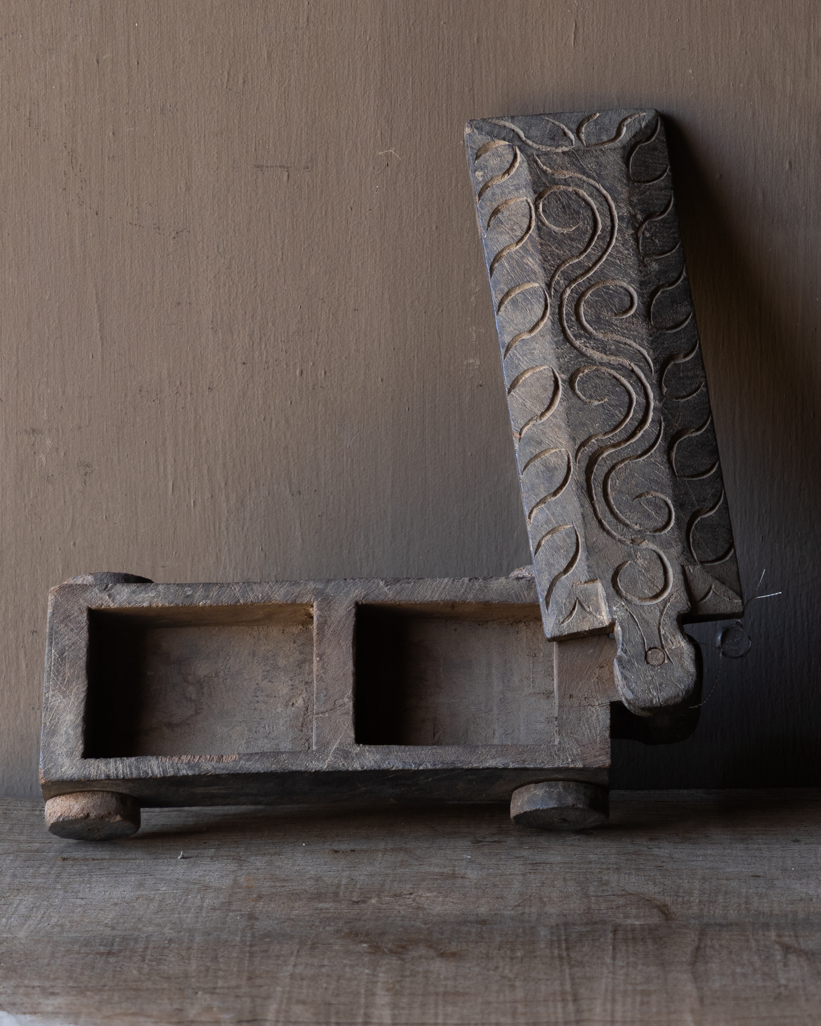 Oude houten spice box op wielen met deksel – handgesneden kruidenbox  HOFFZ