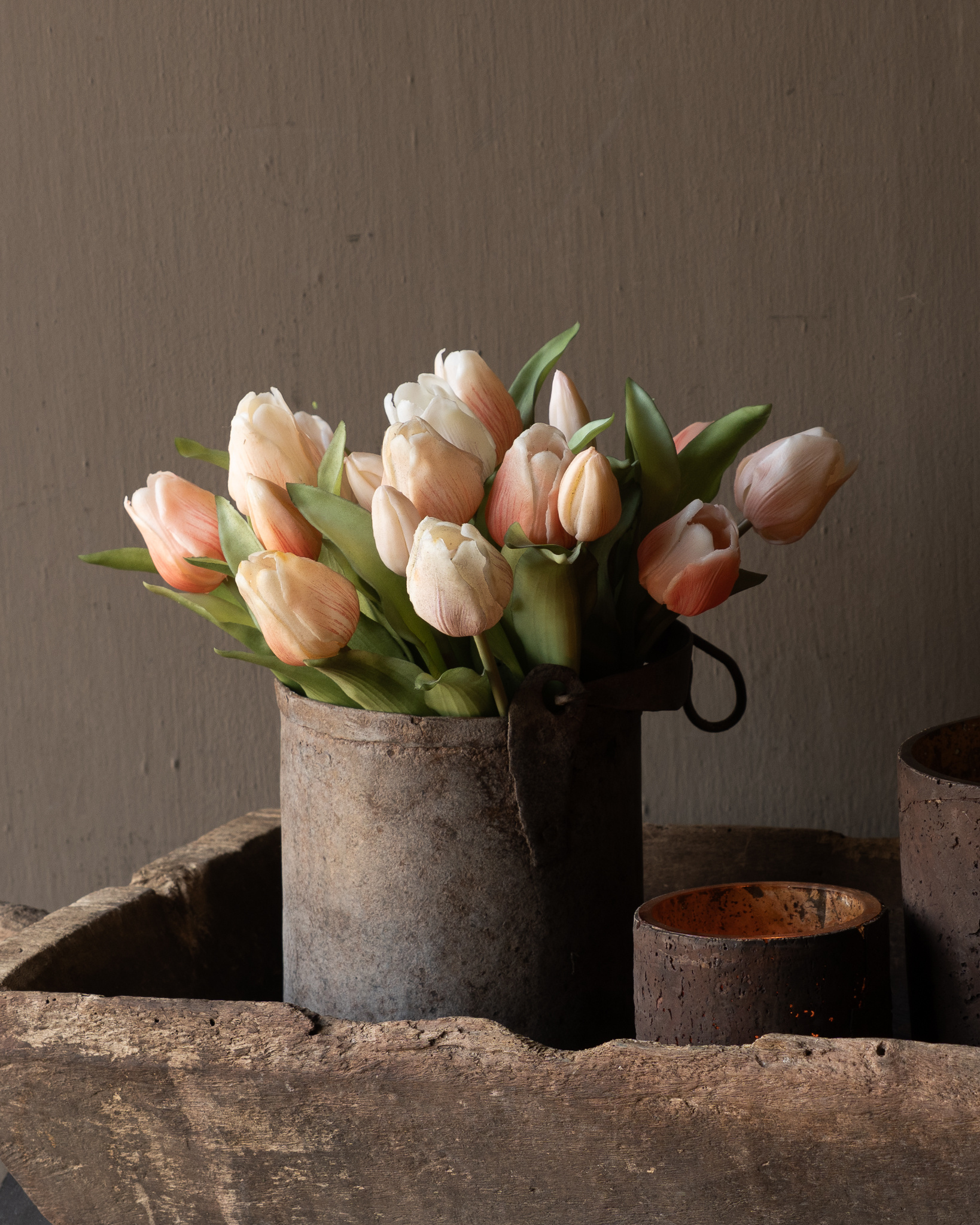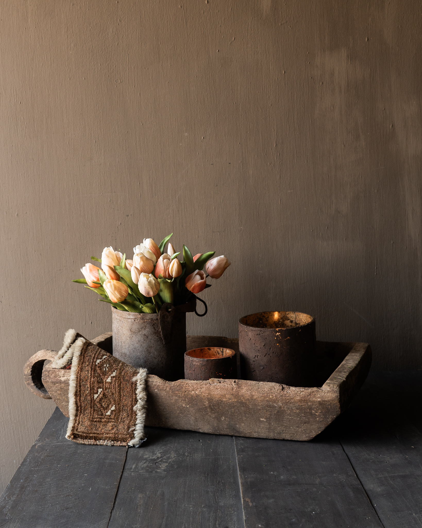 De emmer is perfect als decoratief object in een landelijk, sober of wabi-sabi interieur. Mooi met een los boeket, enkele takken, kaarsen of gewoon als puur statement op zichzelf.