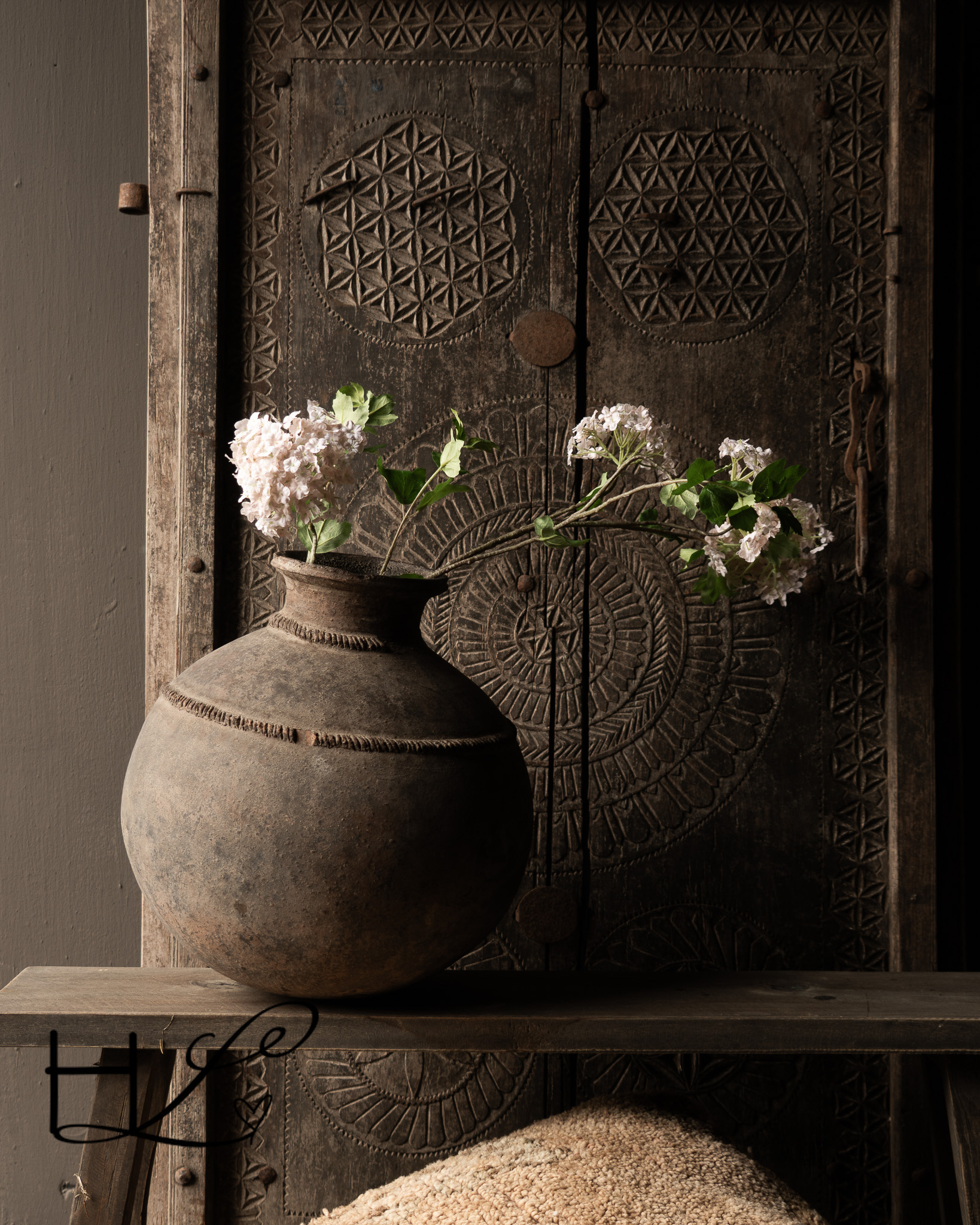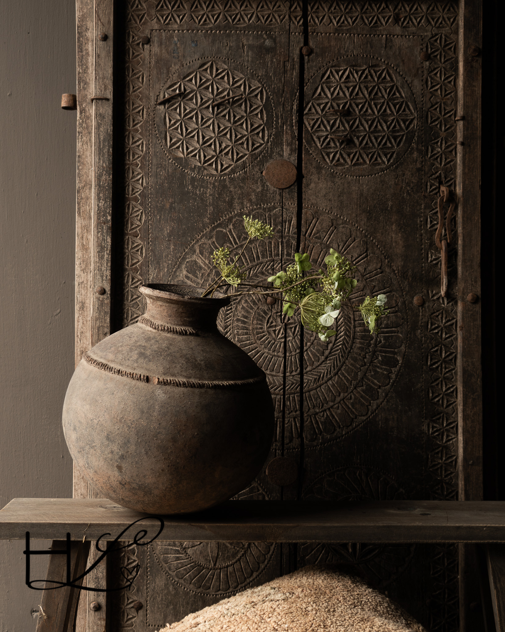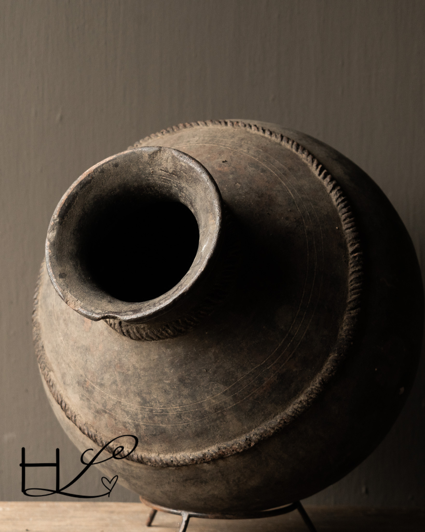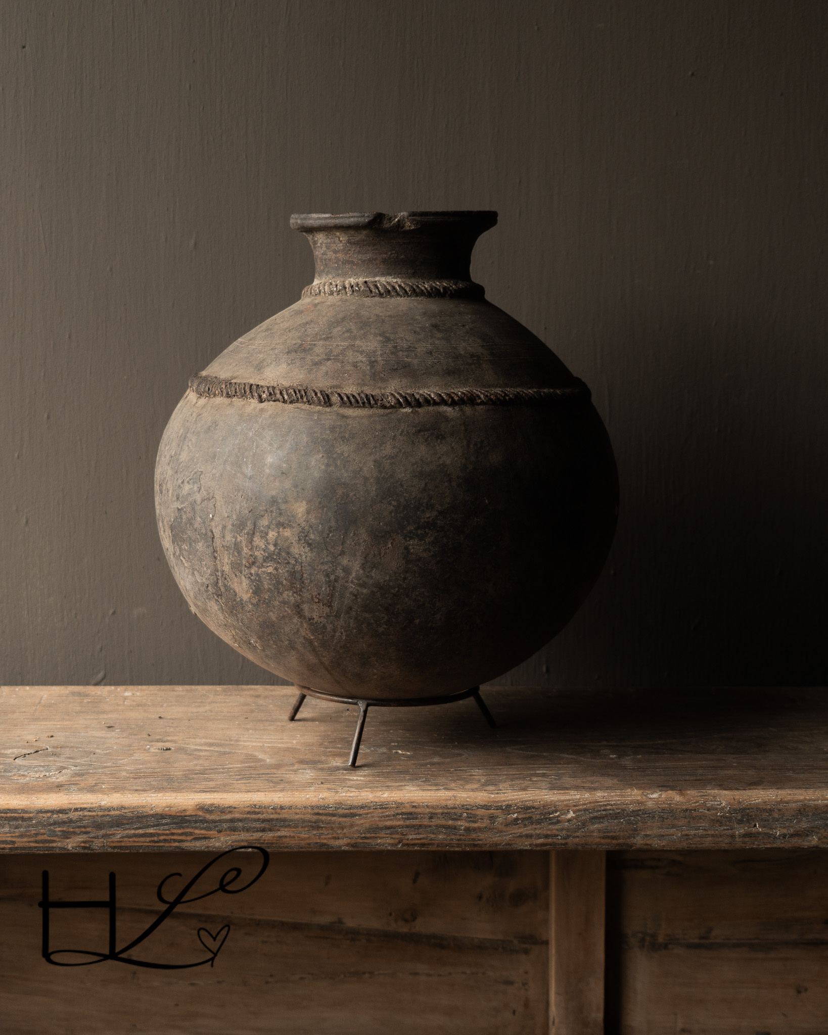 Breng karakter en geschiedenis in huis met deze schitterende, handgemaakte aardewerken kruik uit India. Een unieke vondst met een doorleefde uitstraling die direct de aandacht trekt. Ooit gebruikt voor het bewaren van water of olie, straalt deze antieke kruik een tijdloze charme uit die perfect past in zowel een bohemian, landelijk als industrieel interieur.