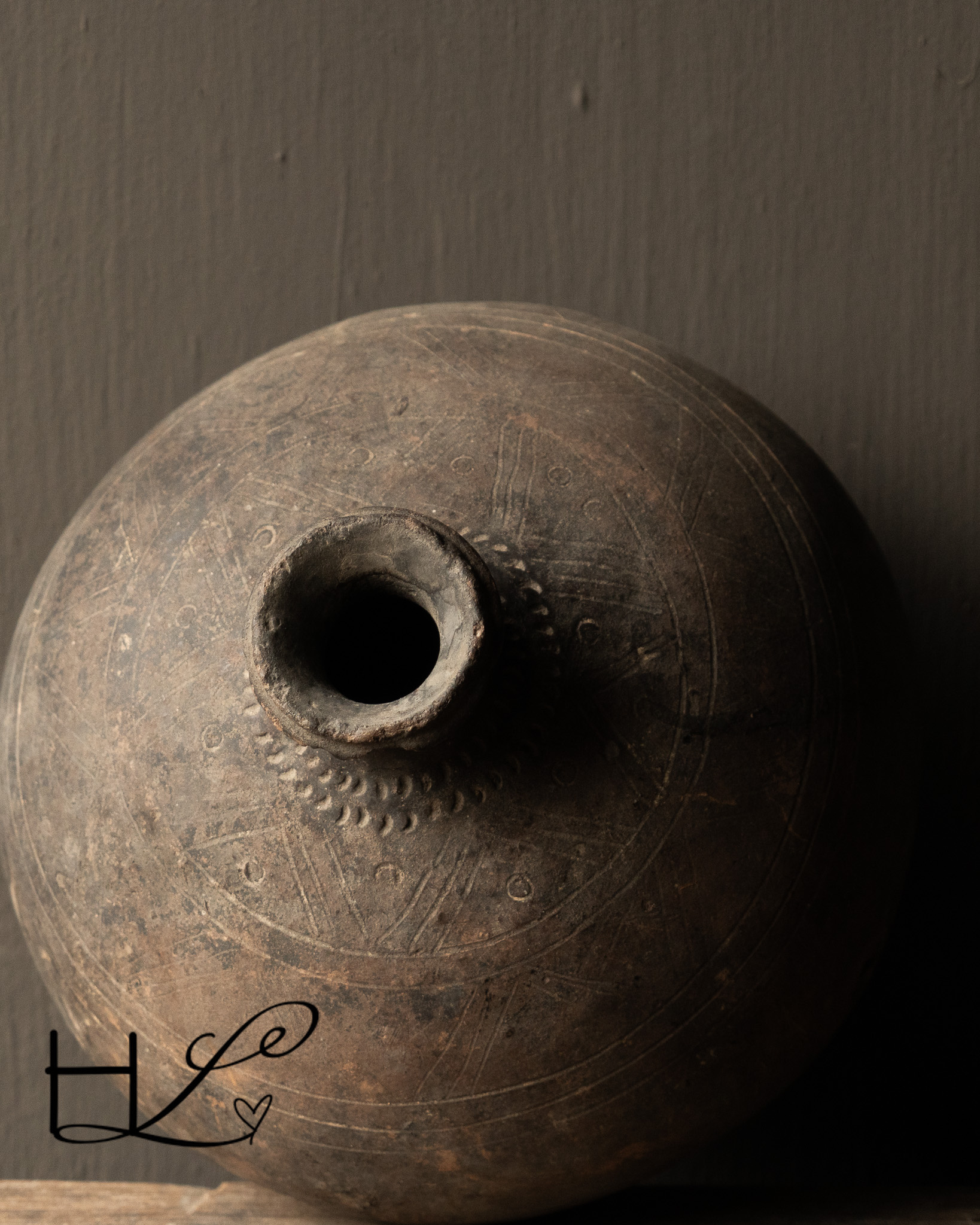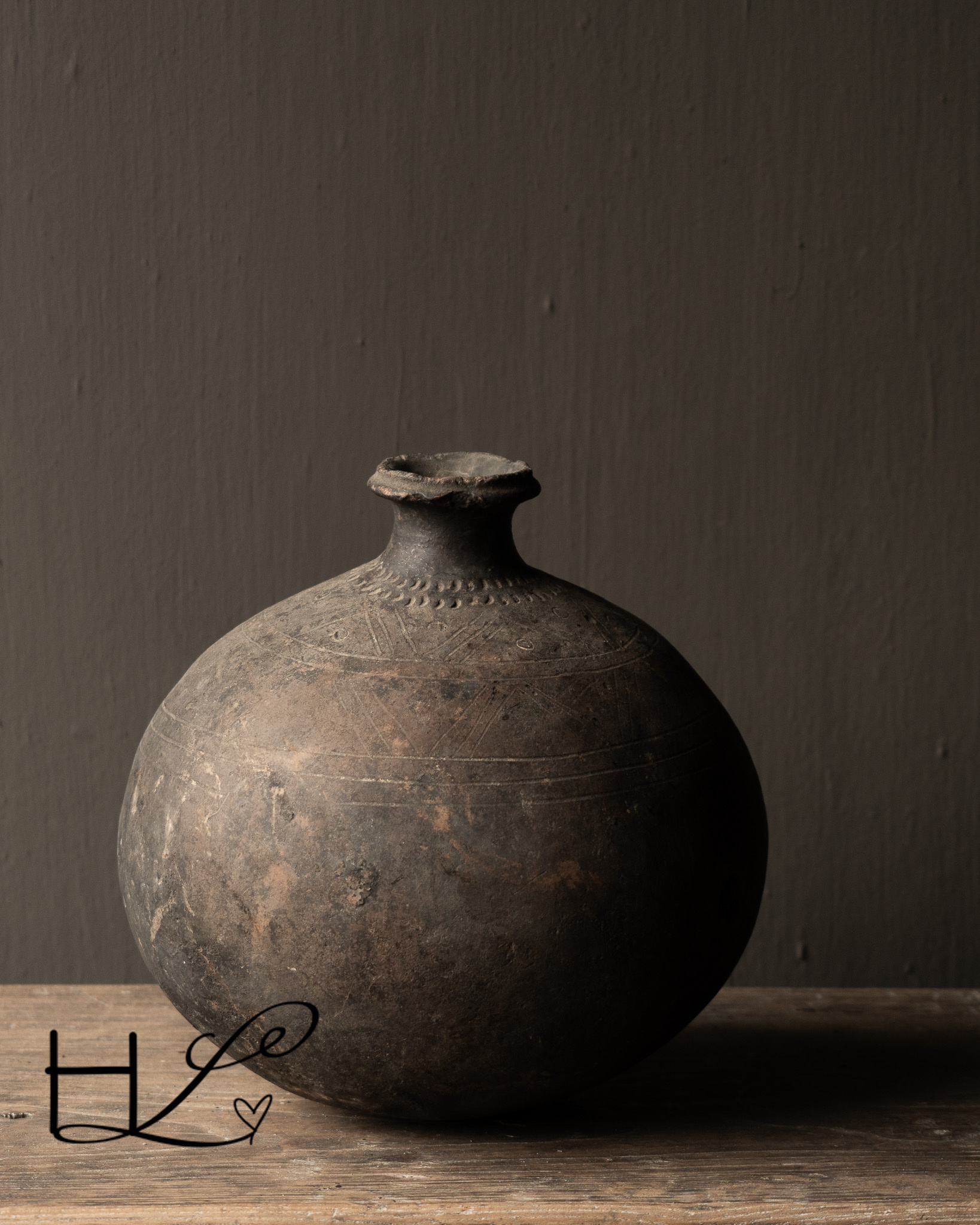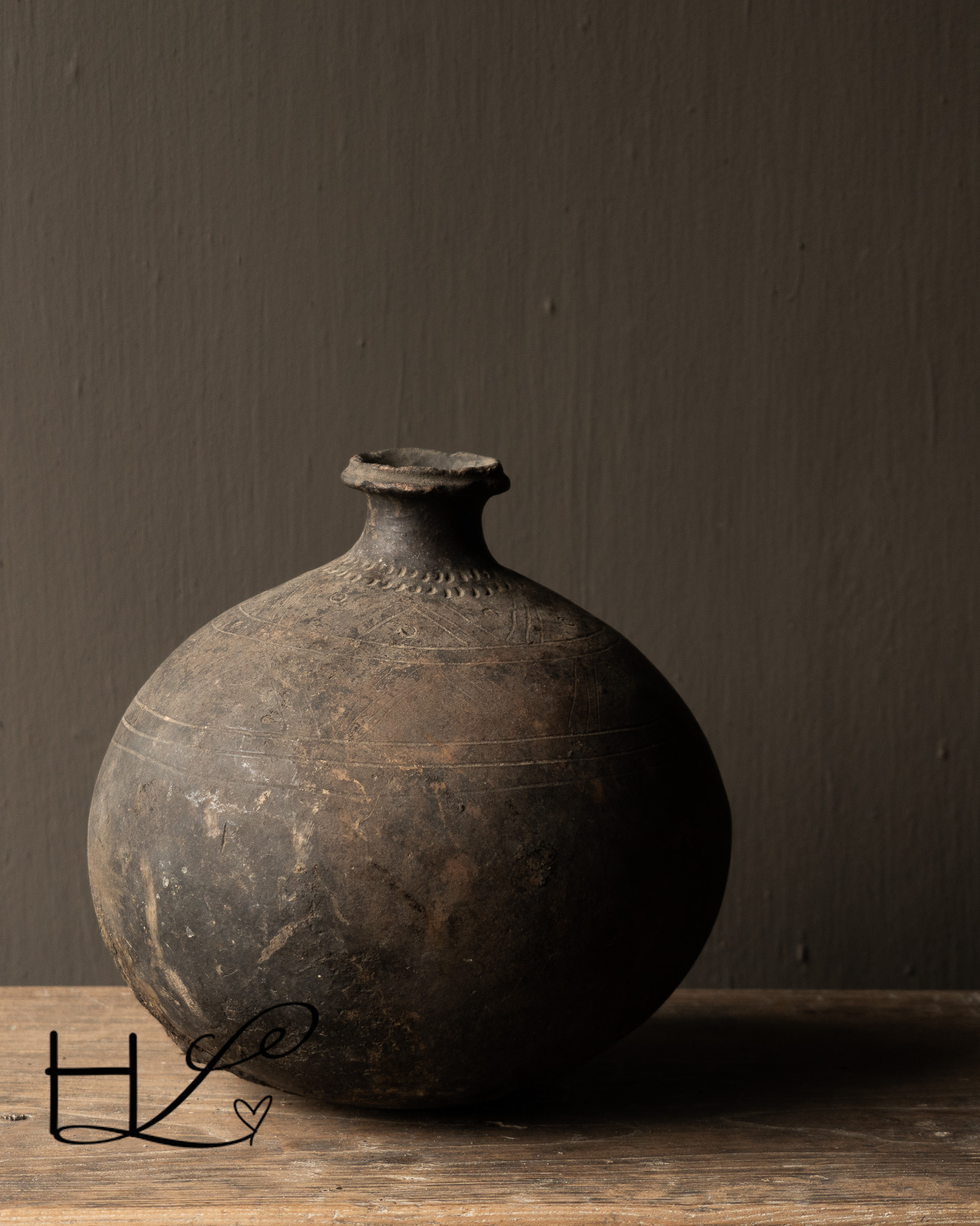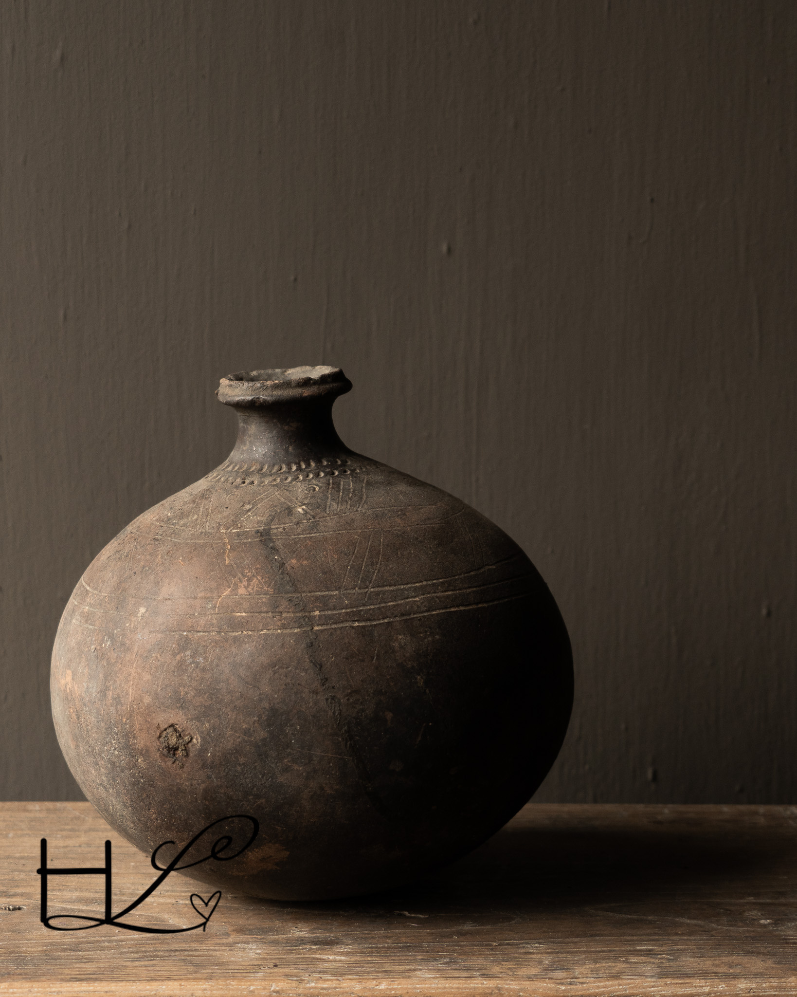Prachtige Unieke Vondst – Authentieke Antieke Aardewerken Kruik uit India