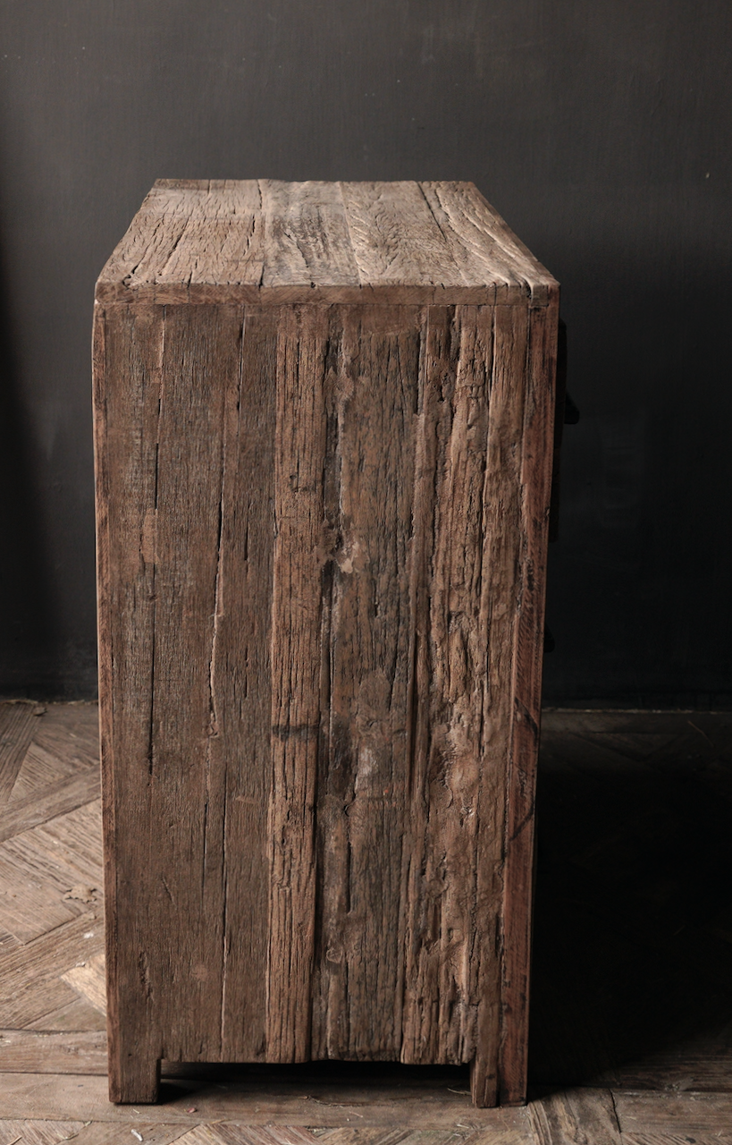 De ladekast Cardiff is een karaktervol meubel met een doorleefde uitstraling. Gemaakt van oud hout, waardoor elke kast zijn eigen unieke tekening en charme heeft. De robuuste afwerking en de stoere grepen geven dit kastje een pure, landelijke uitstraling.