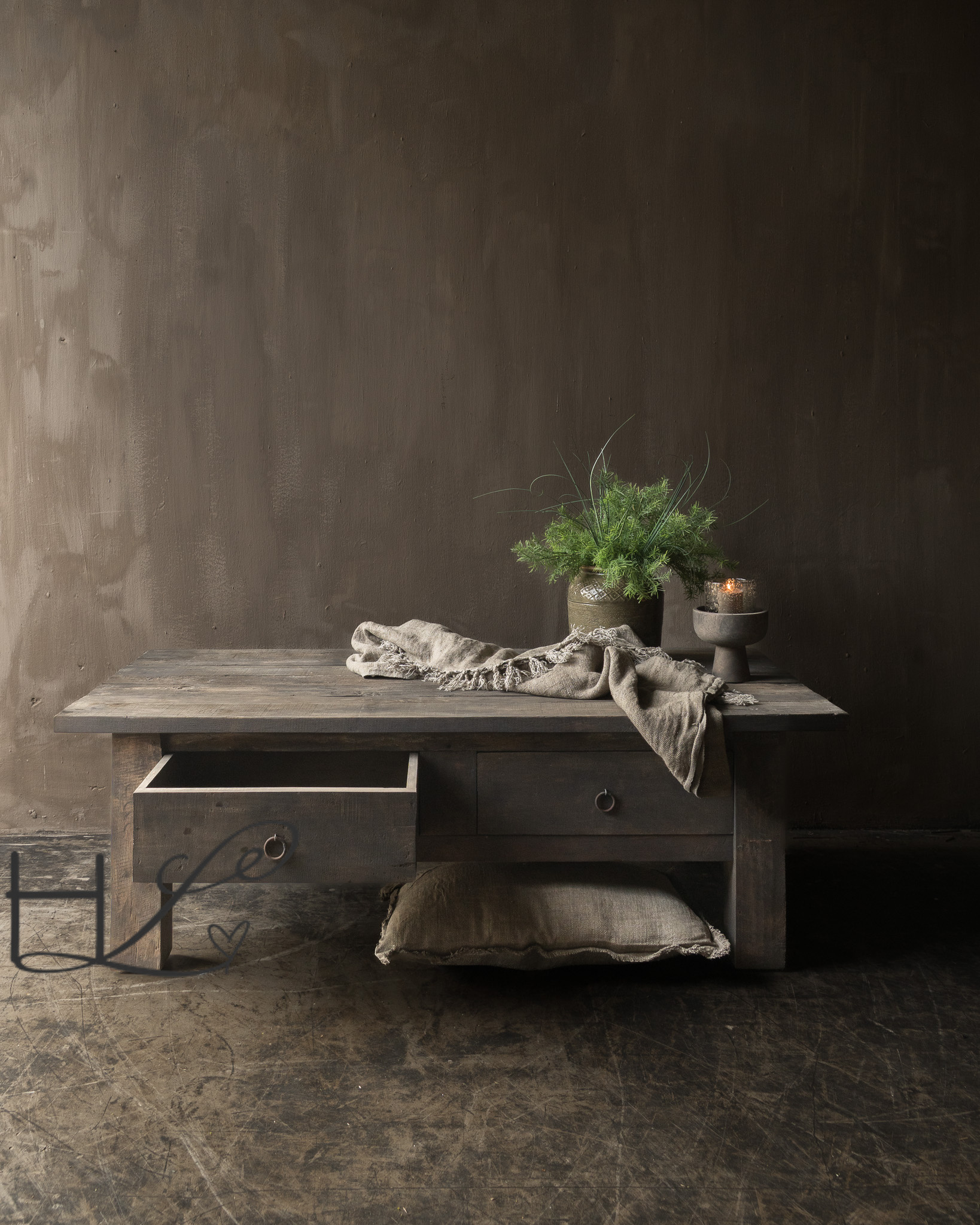 LUKSA Salontafel oud rustiek hout uniek met twee lades