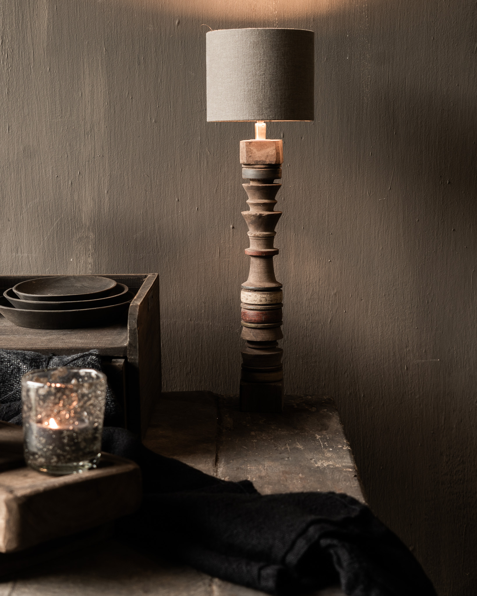 Uniek lampje gemaakt van oud hout met een karaktervolle, doorleefde uitstraling. Elk exemplaar heeft zijn eigen kleurnuances en vormen in het hout, wat zorgt voor een authentieke, sobere look. Mooi op een sidetable, nachtkastje of in een nis — subtiel van formaat maar groots in sfeer.