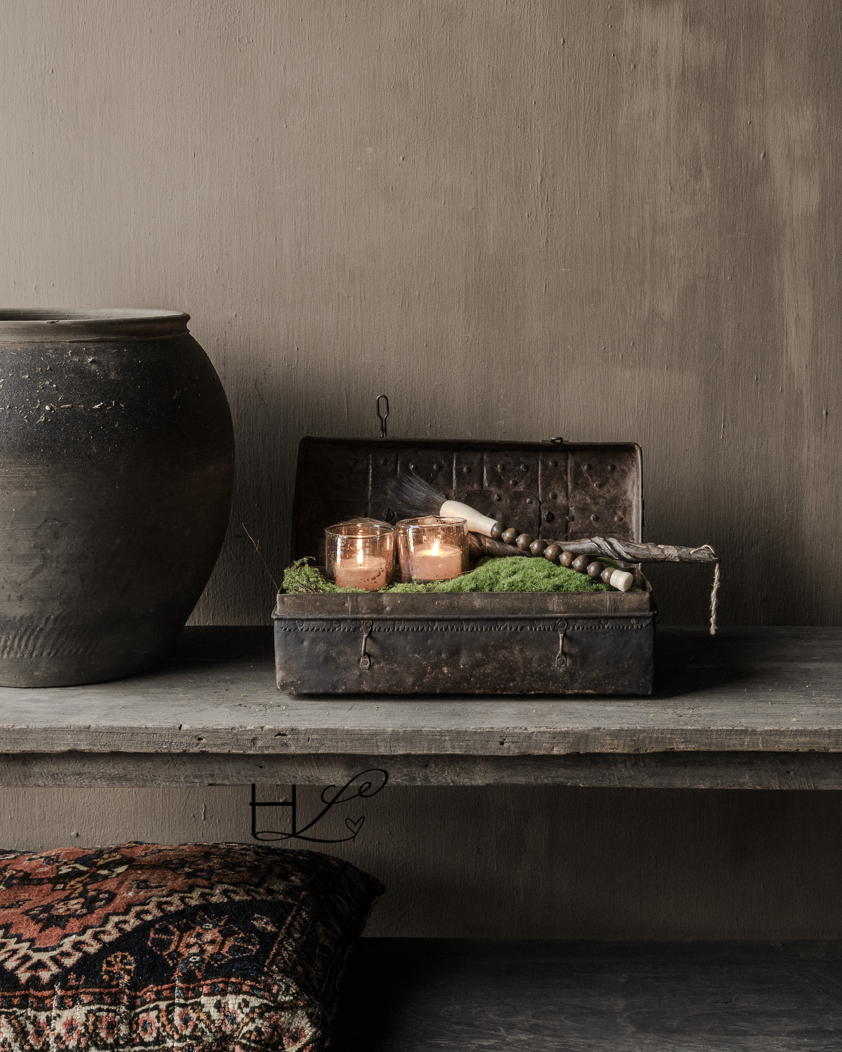 Ook leeg is dit kistje een echte blikvanger op een kast, tafel of open plank.