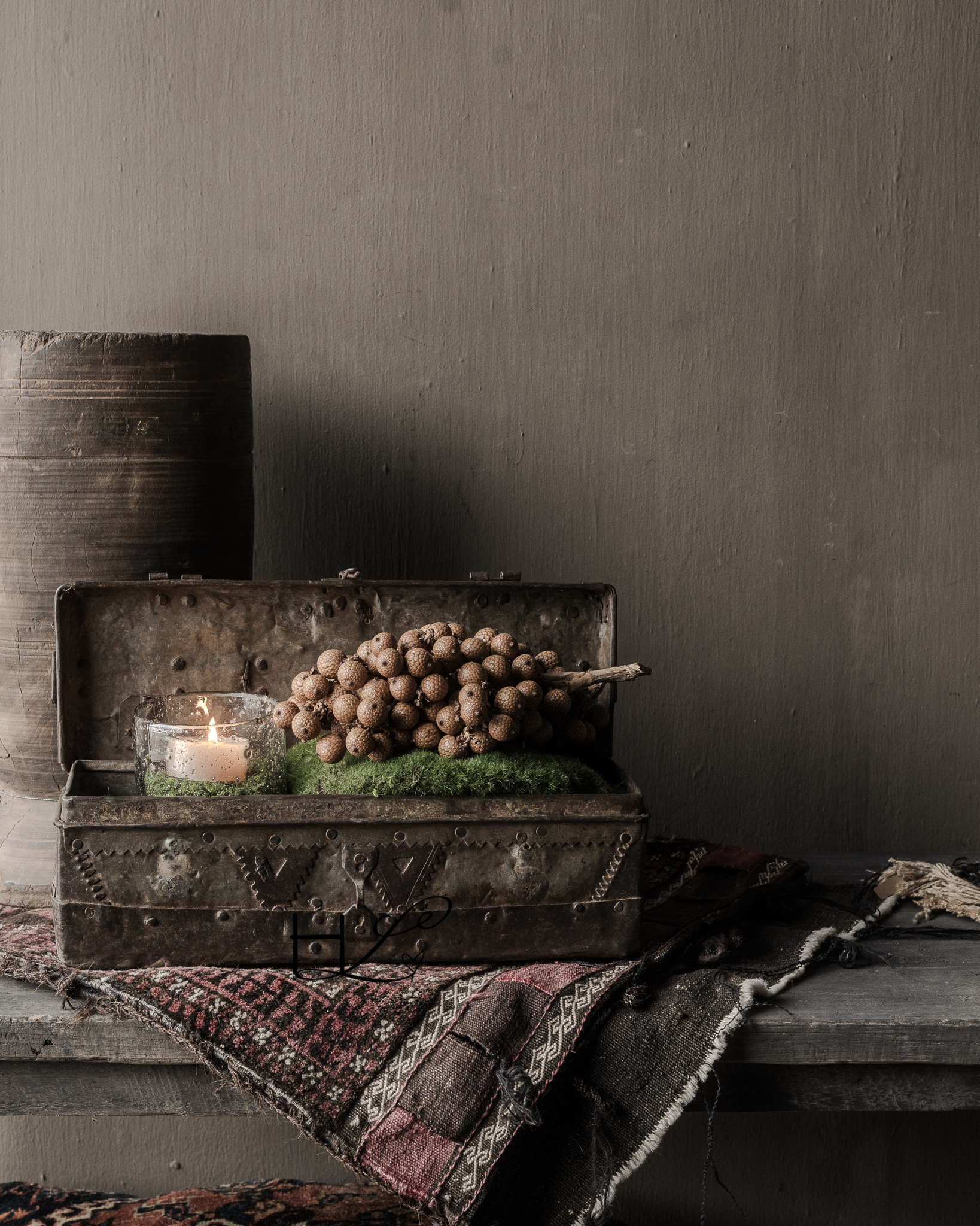 Ook leeg is dit kistje een echte blikvanger op een kast, tafel of open plank.