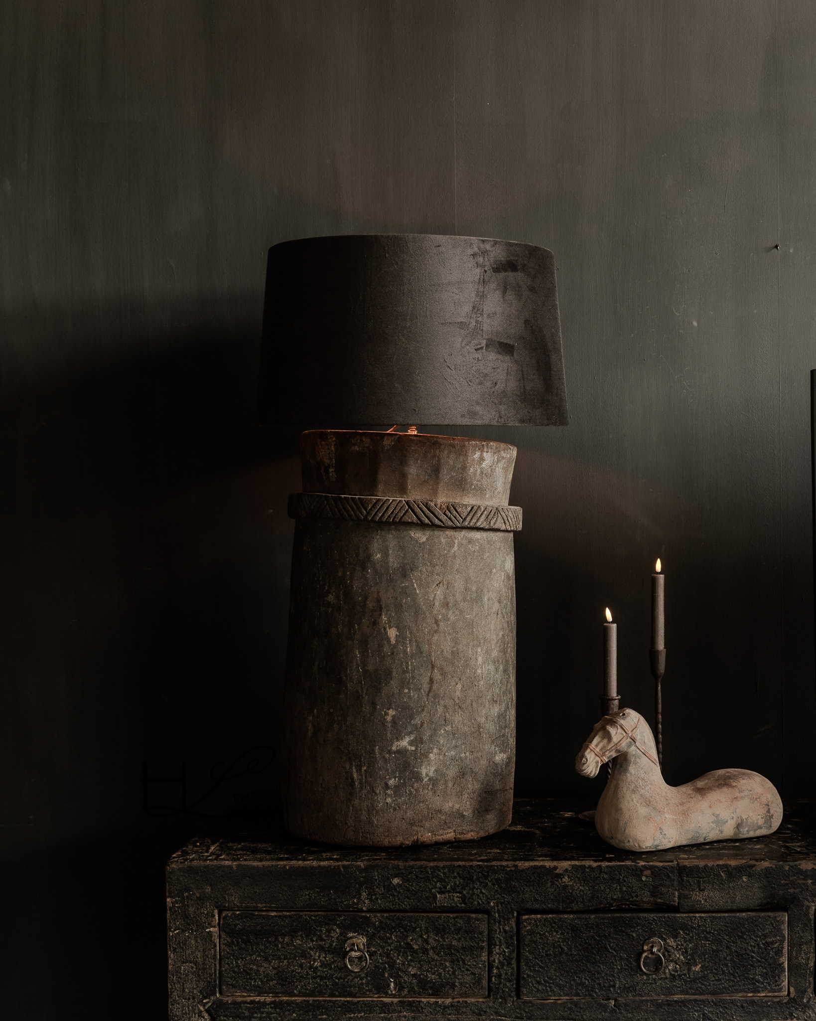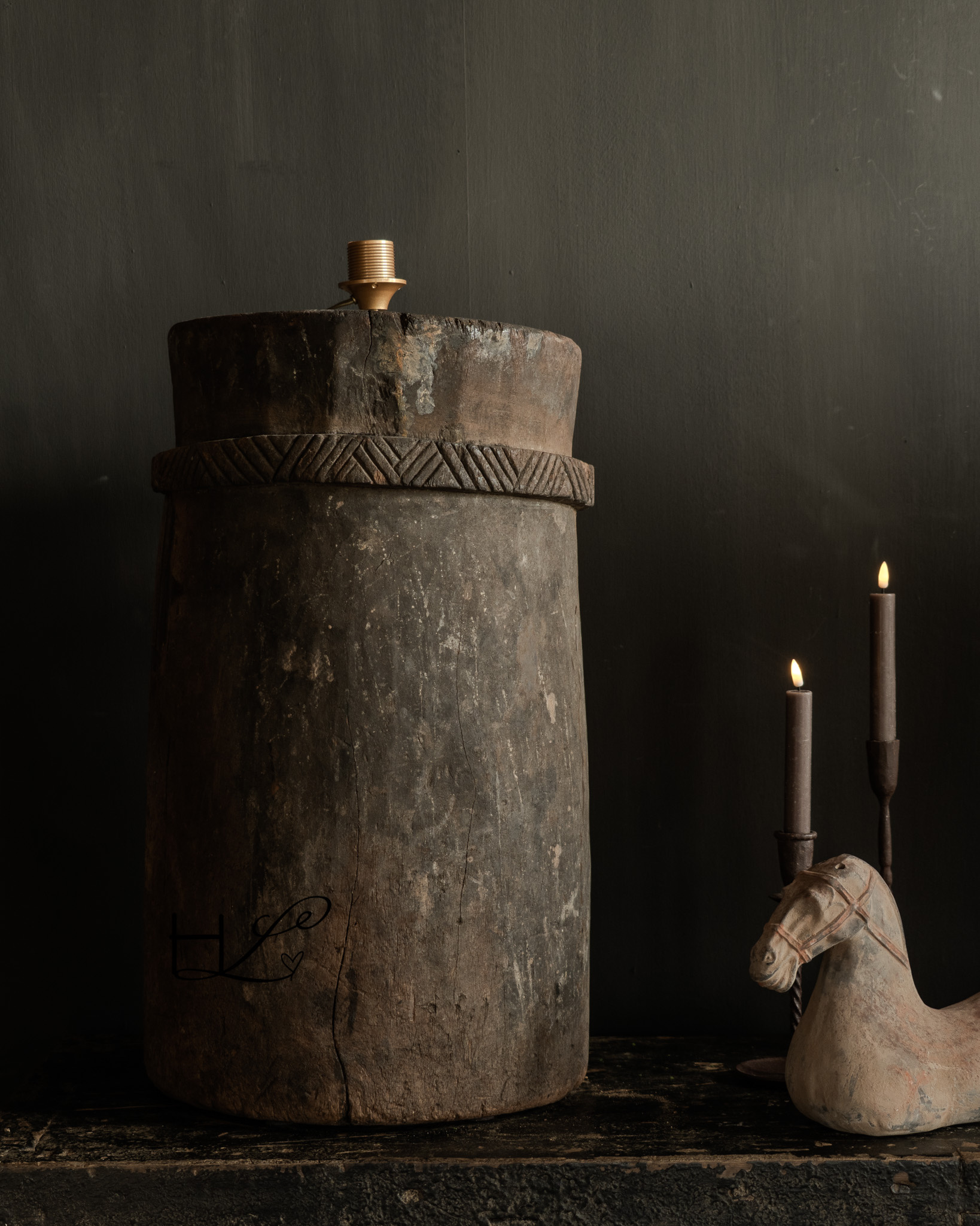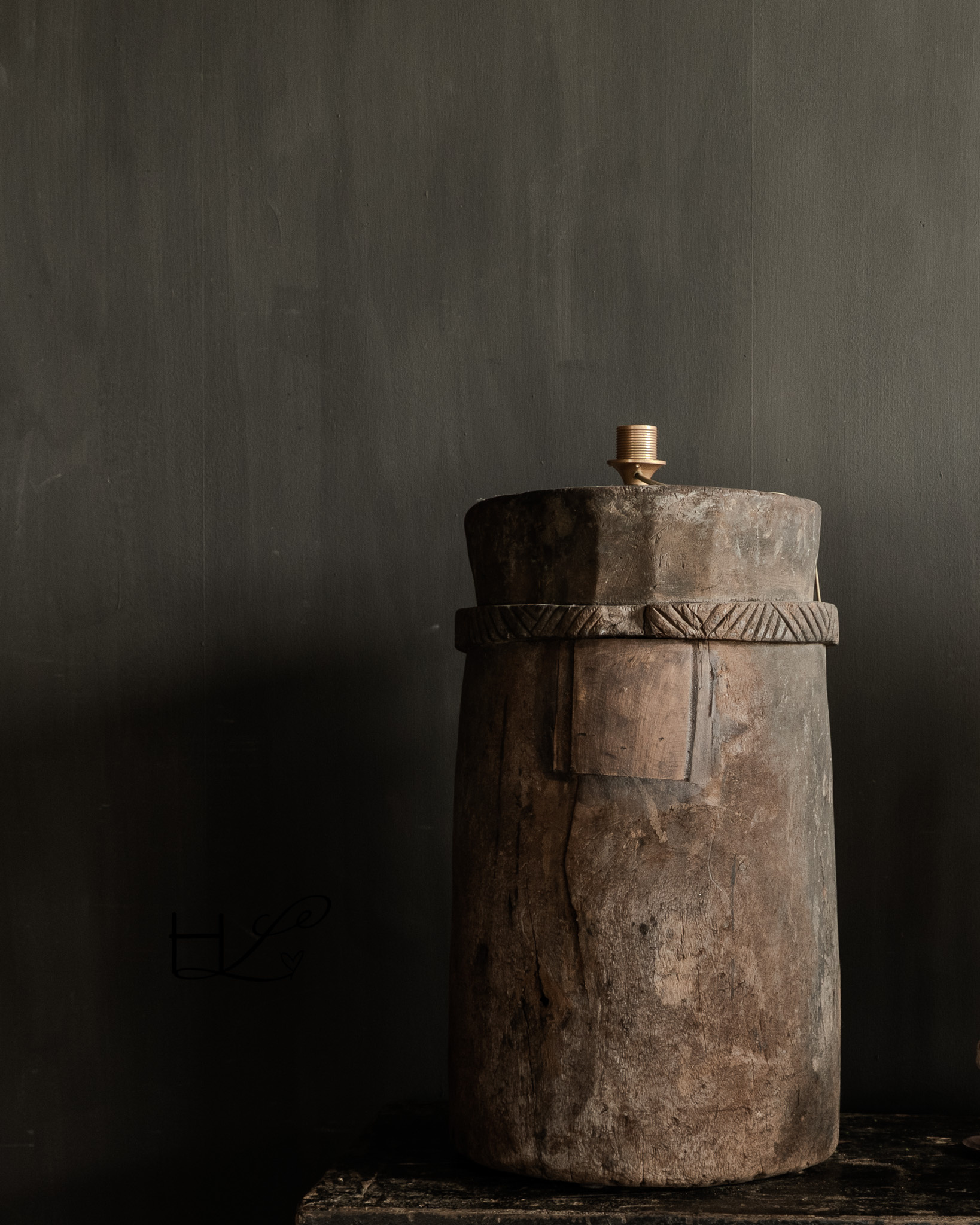 Signature Collectie Stoer Uniek Houten kruiklamp van Antieke kruik