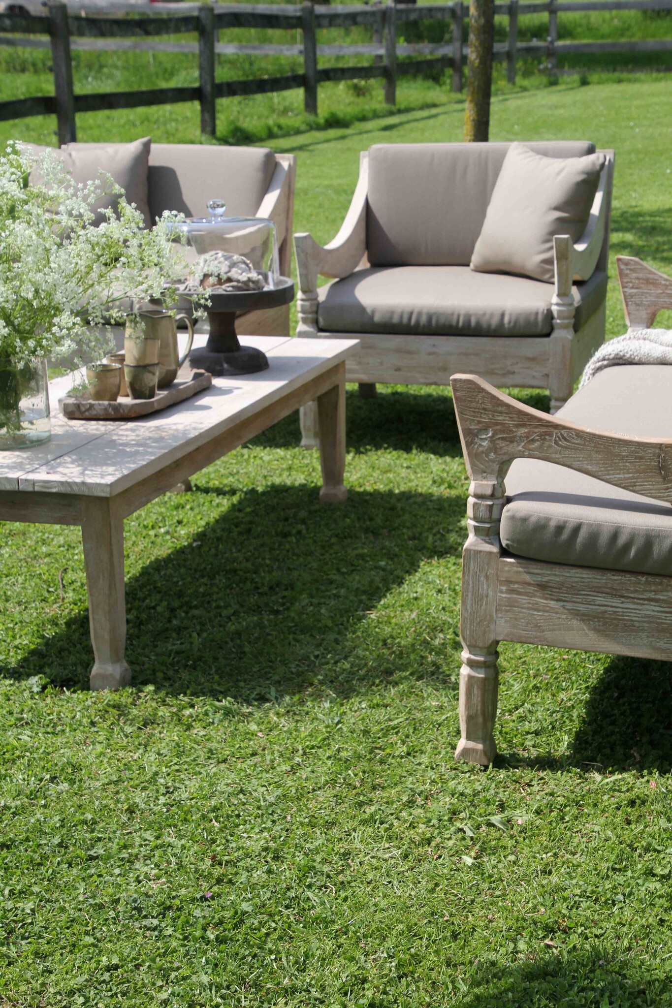 De meubels hebben een stoere, sobere uitstraling en zijn gemaakt van hout met een prachtige natuurlijke structuur. Hierdoor passen ze perfect in een landelijke, natuurlijke of wabi-sabi tuin.